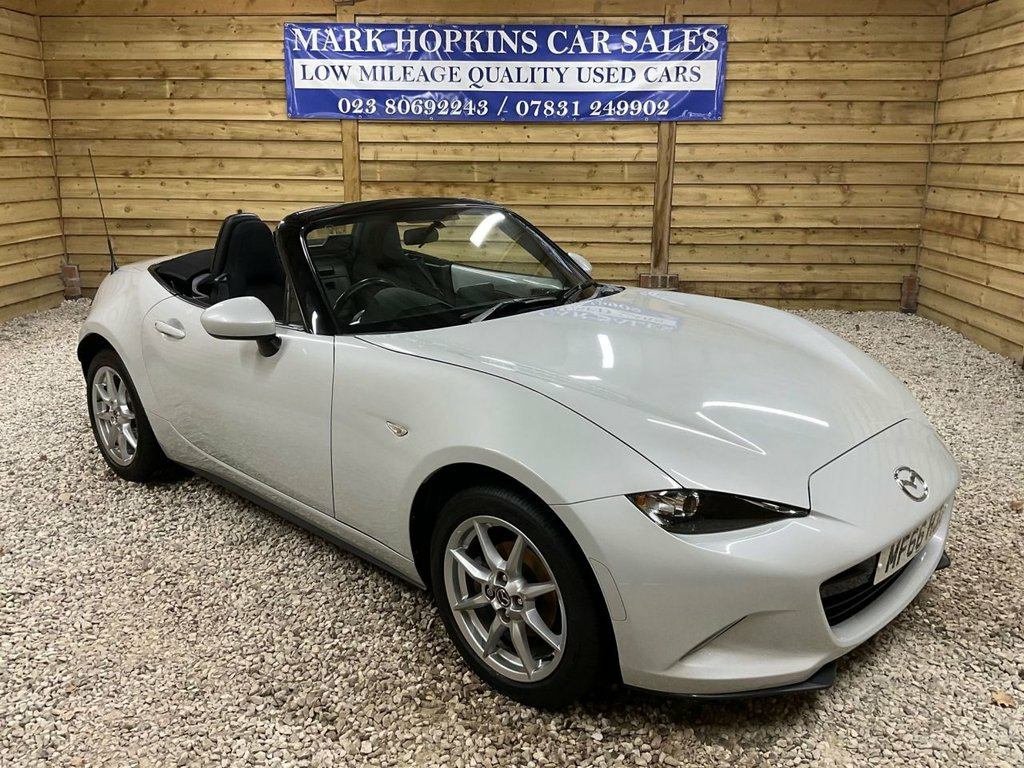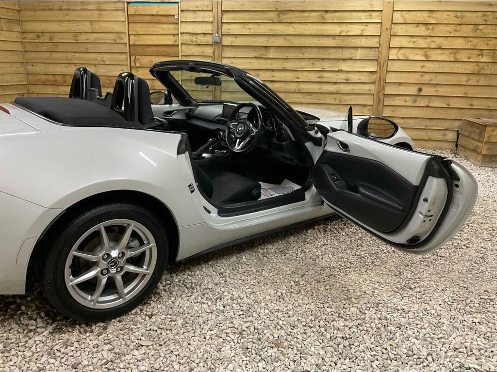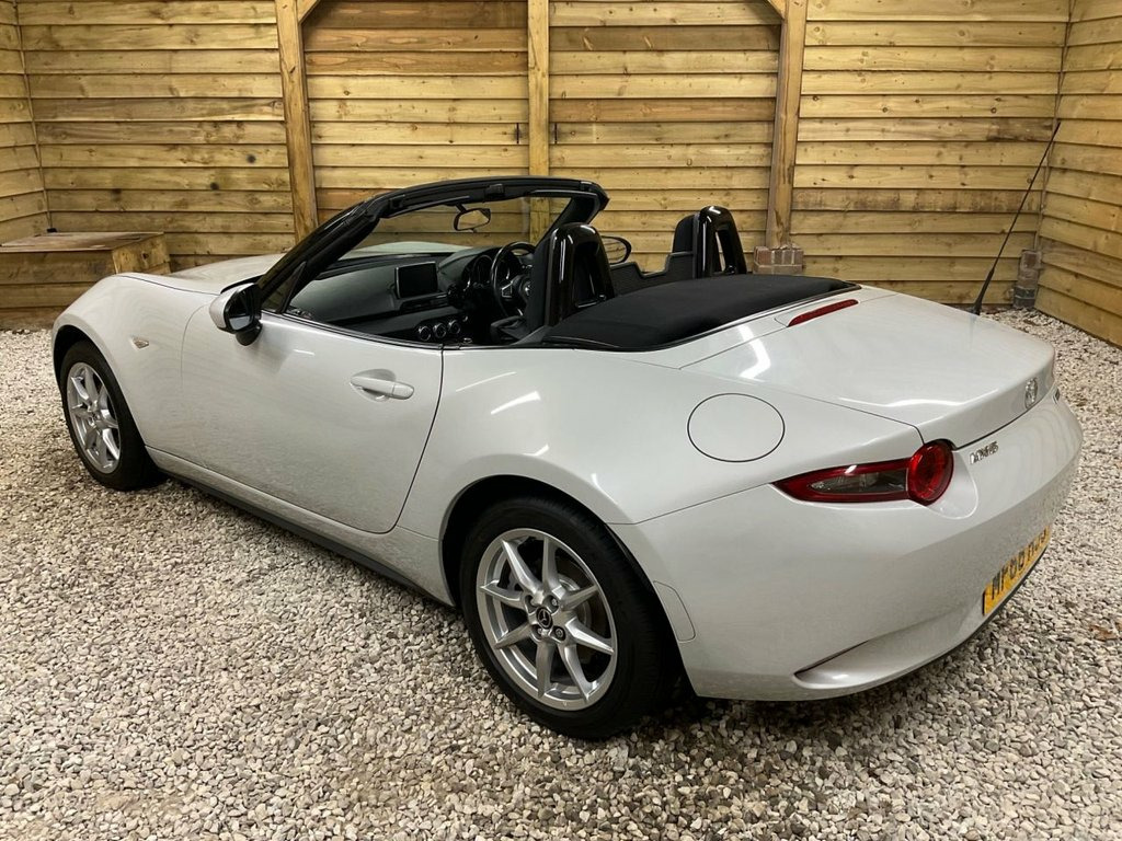 20,808 MILES ONLY…YES JUST 20,808 MILES FSH….DEMO + TWO LOCAL PRIVATE OWNERS FROM NEW…RARE OPPORTUNITY NOT TO BE MISSED…THIS ULTRA LOW MILEAGE MX5 IS FINISHED IN BEAUTIFUL SILVER METALLIC WITH DARK GREY PATTERN INTERIOR…SPEC INCLUDES…16'ALLOYS. 6 SPEED. AIR/CON. TRACTION. CRUISE. VOICE. S/S POWER BUTTON. MULTI FUNCTION STEERING WHEEL. MULTI MEDIA COLOUR TOUCH SCREEN DISPLAY. DAB RADIO. SAT/NAV. BLUETOOTH. 2 X USB PORTS. TINTED GLASS. MX5 OVER MATS. ETC…TRULY EXCELLENT EXTERIOR & INTERIOR CONDITION…DOES DRIVE EXTREMELY WELL…MUST BE SEEN TO BE APPRECIATED…FULL DEALER FACILITIES…FAMILY RUN BUSINESS… 16in Alloy Wheels - Silver, 7in Colour Touch Screen Display, Adjustable Speed Limiter, Aha App and Stitcher App Integration, Air Conditioning - Climate Control, Air Conditioning Dials - Chrome, Air Vent Surrounds - Black, Analogue Speedometer, Audio Transfer from Bluetooth Devices, Automatic Passenger Airbag Deactivation , Auxiliary - AUX - and Two USB Input, Body Coloured Door Mirrors, Chrome Meter Rings, Coinbox, Convertible Top - Premium Cloth Soft Top, Cruise Control with Manual Speed Adjustm, Cupholder - Front x2, DHS - Deployable Hood System, Double Pinion Electric Power Assisted St, Driver and Passenger Front Airbags, Dual Exhaust System, Dynamic Stability Control - DSC - with T, Elec