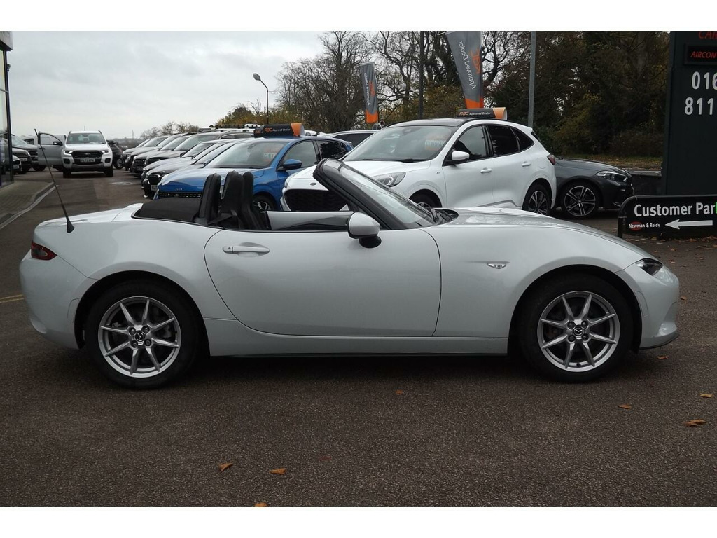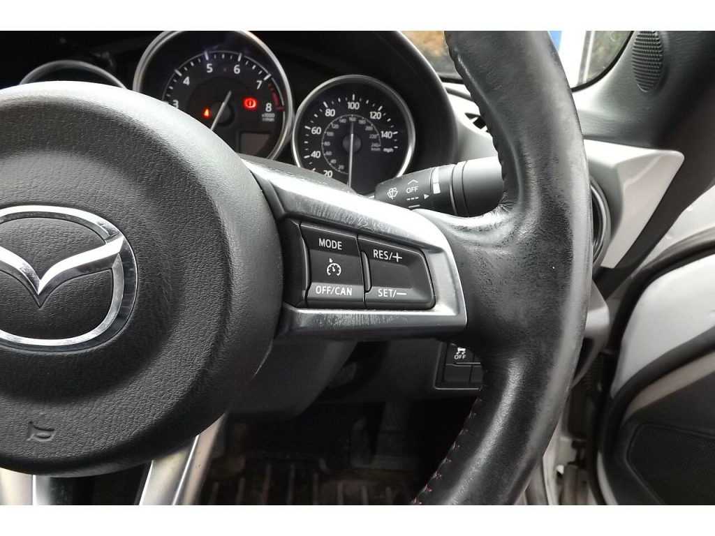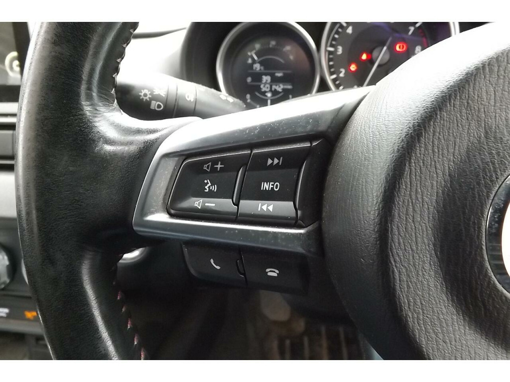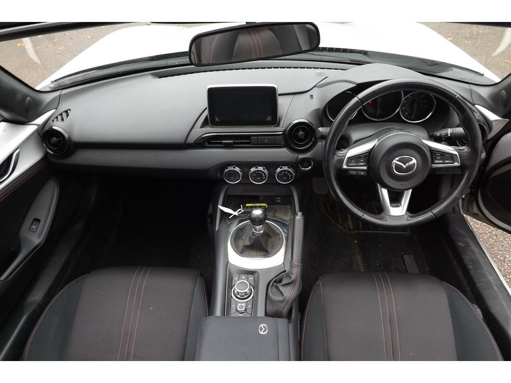 Here we have a very lovely looking Mazda MX-5 Skyactive -G SE-L Nav that has just arrived in part exchange. Just tow owners from new with fantastic service history. We will fully RAC check, service and MOT this car prior to delivery to its next discerning owner to ensure you the very best possible start. We will also post some better photos as soon as the car has been prepared & valeted, but please feel free to get in touch to arrange your viewing and test drive in the meantime. You can contact us via this website, or email us, or instant chat us anytime. You can also reserve this vehicle right now for just £99. You can fill out the finance application online anytime and get an immediate answer day or night. Part exchange's are always welcome and we guarantee to pay more the WBAC. UK wide, home delivery is always available, or you can ''click & collect'' if you prefer. Please do ring ahead if you are travelling to see this vehicle and we will take it off sale whilst you travel so you don't have a wasted journey. We have been selling quality New & Used vehicles for over 22 years with more than 13,0000 satisfied customers across the length and breadth of the UK. Please feel free to read our reviews and see what our lovely customers really think of us. If this is the car for you then we look forward to hearing from you and helping you achieve your Motoring goal. Should it not be quite what you are looking for then please get in touch and put us to the task of sourcing you your ideal vehicle, we have many contacts across the trade and can usually find a particular vehicle you require in a reasonable amount of time.. 7in Colour Touch Screen Display, Aha App and Stitcher App Integration, Audio Transfer from Bluetooth Devices, Auxiliary - AUX - and Two USB Input, Integrated Bluetooth, Multimedia System, Satellite Navigation System, USB - iPod Connectivity, Analogue Speedometer, Cruise Control with Manual Speed Adjustment, Gear Shift Indicator, Multimedia Commander, Trip Computer, Tyre Pressure Monitoring System, 16in Alloy Wheels - Silver, Body Coloured Door Mirrors, Convertible Top - Premium Cloth Soft Top with Heated Rear Window - Manually Operated, Dual Exhaust System, Electric Windows - One Touch Auto Down, Electrically Adjustable-Heated Door Mirrors, Emergency Tyre Repair Kit, Fashion Bar Cladding, Fuel Filler Lid - Body Colour, Windblocker, Headlights - Coming-Leaving Home, Headlights - LED with Auto Headlight Levelling, LED Daytime Running Lights, Rear Brake Light - High Mounted, Air Conditioning - Climate Control, Air Conditioning Dials - Chrome, Air Vent Surrounds - Black, Chrome Meter Rings, Coinbox, Cupholder - Front x2, Engine Start-Stop Button, Gear Knob - Leather with Chrome Surround, Handbrake - Leather Wrapped, Inner Door Handles - Chrome, Interior Courtesy Light, Interior Upper Door Trim - Body Coloured, Seats - Drivers Manual Slide-Recline and Tilt Adjustment, Seats - Front Passenger Manual Slide and Recline Adjustment, Side Door Trim - Black with Red Stitching, Steering Wheel - Leather with Chrome Bezel, Steering Wheel - Mounted Audio and Bluetooth Controls, Steering Wheel - Tilt Adjustment, Storage - Rear Centre Box with Lockable Lid, Sunvisors - Drivers and Passengers with Covered Vanity Mirror-Ticket Holder, Wipers - Front Adjustable Speed with Intermittent, Adjustable Speed Limiter, Double Pinion Electric Power Assisted Steering - DP-EPAS, Automatic Passenger Airbag Deactivation System, DHS - Deployable Hood System, Driver and Passenger Front Airbags, Dynamic Stability Control - DSC - with Traction Control System - TCS, Four-Wheel Anti-Lock Braking System - 4W-ABS with Electronic Brake-Force Distribution - EBD, Hill Hold Assist, ISOFIX Child Seat Anchorage - Passenger Seat, Remote Central Locking with Deadlocking and Remote Boot Release, Seatbelts - 3 Point - ELR - 2x with Pre-Tensioners, Seatbelts - Reminder Screen with Audible Warning, Side Airbags, SKYACTIV-Body Engineered Triple H Body Structure to Help Protect Occupants from Impact Forces, SRS - Supplementary Restraint System, Thatcham Category 1 Alarm and Immobiliser. Part service history