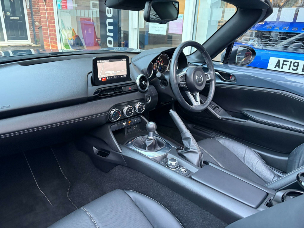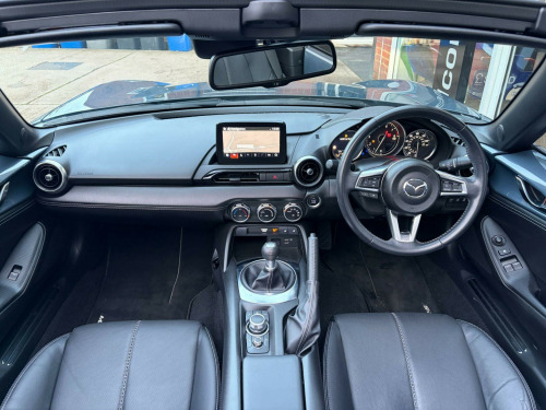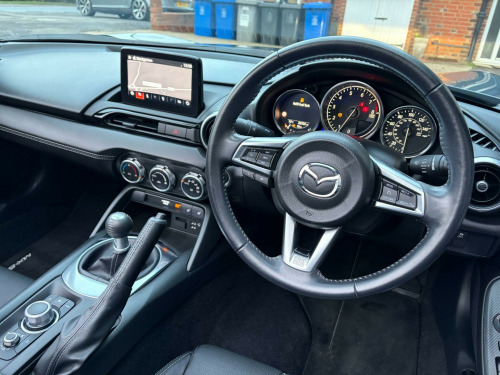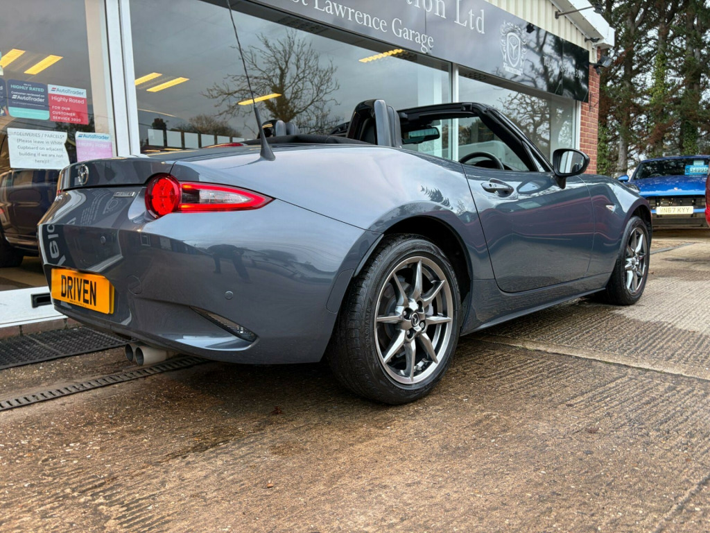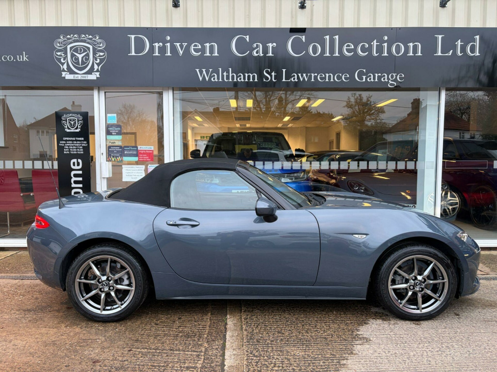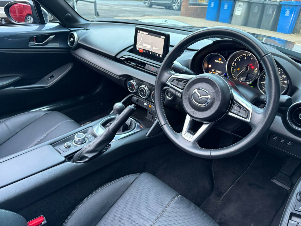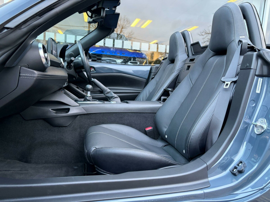 ** NATIONWIDE DELIVERY ** FULL LEATHER ** HEATED SEATS ** SAT NAV ** 17'' ALLOY WHEELS ** CRUISE CONTROL ** PARKING SENSORS ** KEYLESS ** Presented in premium / special edition Polymetal Grey metallic with contrasting Black perforated full leather interior trim. A lovely example benefitting from a full Mazda main dealer service history. Specification includes full colour touch screen infotainment system with satelitte navigation including traffic sign recognistion, DAB radio, Bluetooth audio, Apple Carplay + Android Auto, i-POD / USB interface, Bose hi-fi / speaker system, Bluetooth telephone, rear parking sensors, heated leather sports seats, dual cup holders, climate control / air conditioning, reach / rake adjustable multifunction steering wheel, cruise control, lane keep assistant, auto headlamps with LED daytime running lights, rain sensitive wipers, electric windows, electric / heated mirrors, auto dimming rear view mirror, retractable soft top with heated rear screen, keyless entry with keyless push button start, tailored carpet mats, remote central locking with alarm & immobiliser, front fog lamps, full ''Sport'' body styling, finished with 16'' alloy wheels (unmarked). Premium Yokohama tyres fitted all round. Supplied with original Mazda owners wallet, owners / operators manuals & 2 keys.No disappointments. Buy with confidence from a long established dealer with a fantastic reputation, feedback & reviews. At Driven Car Collection we strive to exceed your expectations for customer service and pride ourselves on supplying superb quality vehicles. in alloy wheels - bright silver, 3-stage seat heaters, 6 speakers, 7in colour touch screen display, am-fm-dab radio, air conditioning - climate control, air conditioning dials - chrome, air vent surrounds - satin chrome, auto dimming rear view mirror, automatic passenger airbag deactivation system, auxiliary - aux - and two usb input, black cloth soft-top, body coloured door mirrors, chrome meter rings, coinbox located on centre console, cruise control with adjustable speed limiter, cupholder - front x2, dhs - deployable hood system, dashboard panel - black vinyl leather, door mirrors - power operated and heated, double pinion electric power assisted steering - dp-epas, driver attention alert - daa, driver and passenger front airbags, dual exhaust system, dusk sensing automatic headlights, dynamic stability control - dsc - with traction control system - tcs, electric windows - one touch auto down, emergency stop signalling system - ess, emergency tyre repair kit, engine start-stop button, four-wheel anti-lock braking system - 4w-abs with electronic brake-force distribution - ebd, front head restraints, front and rear smart city brake support, fuel filler lid - body colour, gear knob - leather-wrapped with bright silver surround, gear shift - leather-wrapped, gear shift indicator, headlights - adaptive front lighting system, headlights - coming-leaving home, hill launch assist - hla, isofix child seat anchorage - passenger seat, integrated bluetooth, integrated navigation system with 3-years free european map updates, interior courtesy light, interior upper door trim - exterior body colour co-ordinated, led daytime running lights, led headlights with automatic headlight levelling, led indicator lights, lane departure warning system, multi-dot display tachometer and electric odometer, multimedia commander, piano black fashion bars, premium bose sound system, premium connected services, rain-sensing front wipers, rear brake light - high mounted, rear parking sensors, remote central locking with deadlocking and remote boot release, scuff plates - black plastic with stainless insert, seatbelt reminder - driver and passenger with audible warning, seatbelts - 3 point - elr - 2x with pre-tensioners, seats - drivers manual slide-recline and tilt adjustment, seats - front passenger manual slide and recline adjustment, service indicator, side airbags, side door trim - black vinyl with silver stitching, silver stitching on seat fabric - steering wheel - gear knob - hand brake and door trim, smart keyless entry, steering wheel - leather, steering wheel - mounted audio and bluetooth controls, steering wheel - tilt and telescopic adjustment, storage - rear centre box with lockable lid, sunvisors - drivers and front passengers with covered vanity mirror and drivers ticket holder, thatcham category 1 alarm and immobiliser, traffic sign recognition, trip computer, tyre pressure monitoring system, windblocker - standard, wireless apple carplay and wired android auto, leather - black with silver stitching