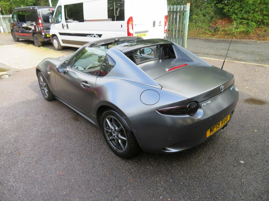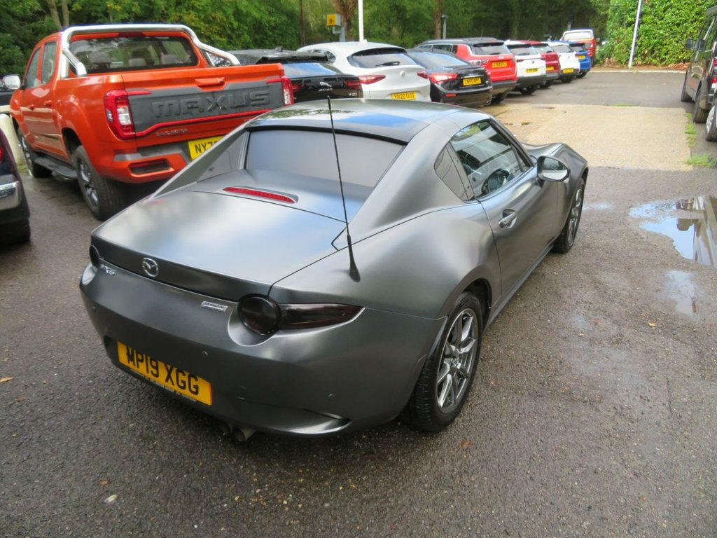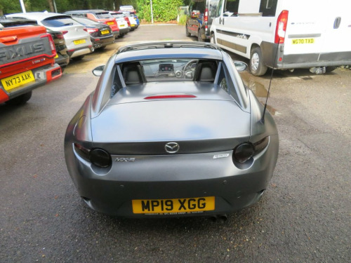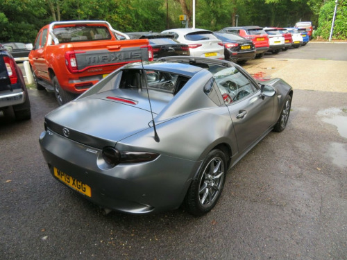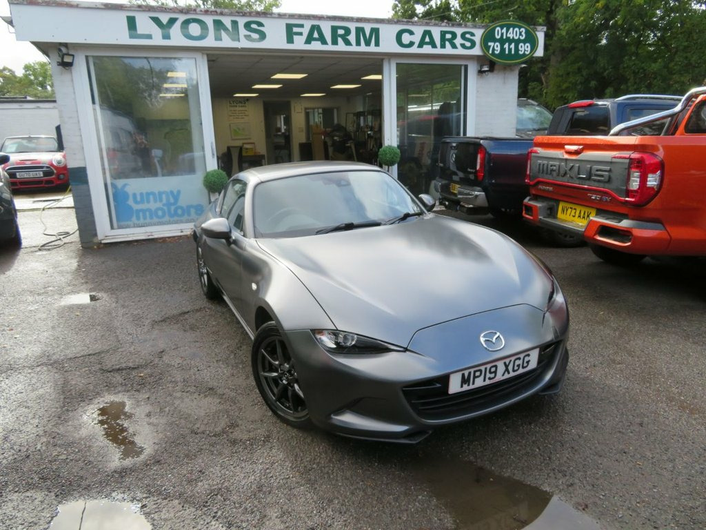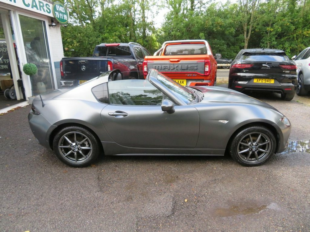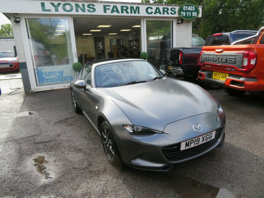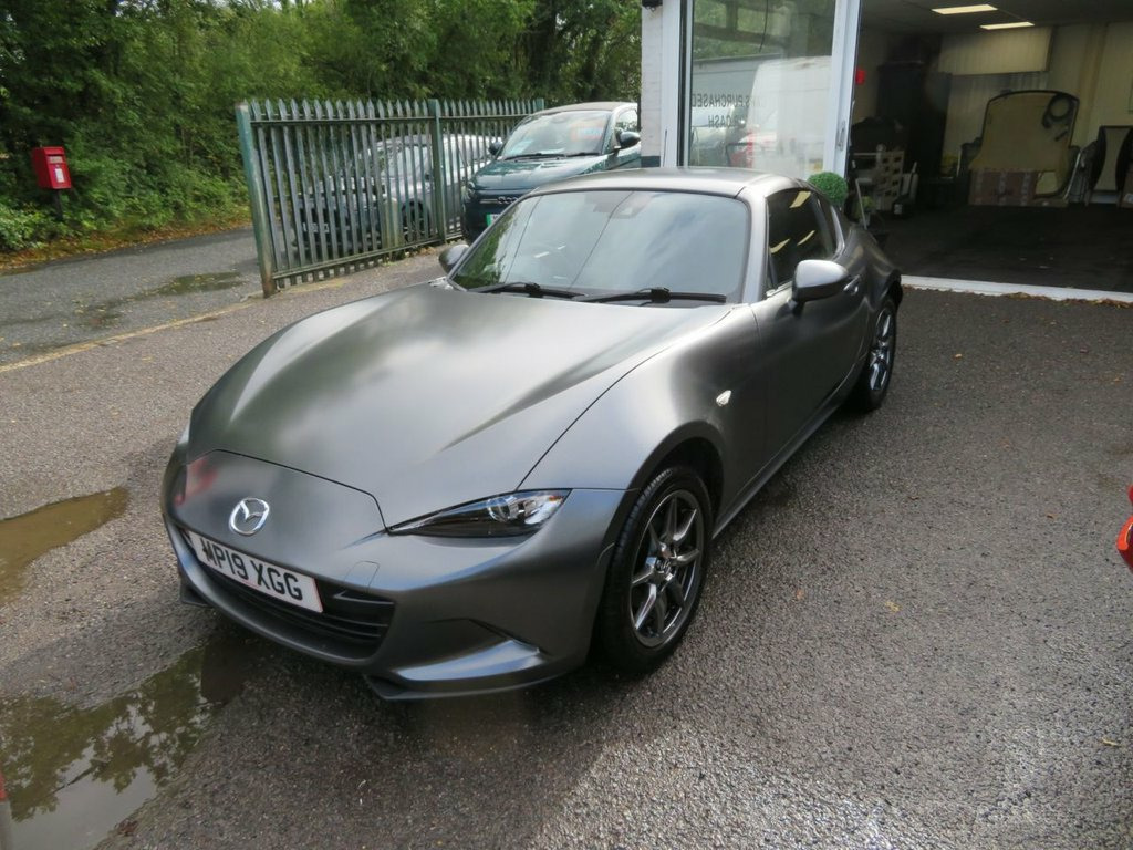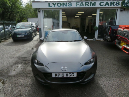 Mazda MX-5 RF's fastback styling seamlessly merges the comfort and security of a hardtop with the unmatched driving thrill of the iconic MX-5 open-top experience. The sculpted lines of it's Kodo design elegantly transform the hardtop, allowing it to convert into an open-topped roadster in just 13 seconds without sacrificing any additional boot space! This is a very rare (and possibly a one-off) 2019 1.5 RF Sport Nav+ manual convertible, which has been professionally wrapped in graphite! With less than 25,000 miles on the clock and with a full Mazda main dealer service history up until 2024 (5 x service records), this stunning example comes with our Lyons Farm Cars promise of a 100+ detailed inspection as well as fresh service and MOT until April 2026. The Sport Nav+ is an excellent trim level which boasts; Full Leather Heated Seats, 16" Alloy Wheels, Dual Exhaust System, 7in Colour Touch Screen Display with Satellite Navigation System & DAB Radio, Rear Parking Sensors with Optical Display, Smart Keyless Entry, Automatic Climate Control, Automatic Wipers, Dusk Sensing Automatic LED Headlights with Auto Levelling Adaptive Front Lighting System, LED Daytime Running Lights, Lane Departure Warning System, Dynamic Stability Control (DSC) with Traction Control System (TCS), Four-Wheel Anti-Lock Braking System (4W-ABS) with Electronic Brake-Force Distribution (EBD), Front and Rear Smart City Brake Support, Cruise Control & Bluetooth. ---------- 16in Alloy Wheels - Bright, 3-Stage Seat Heaters, 7in Colour Touch Screen Display, Adjustable Speed Limiter, Aha App and Stitcher App Integration, Air Conditioning - Climate Control, Air Conditioning Dials - Satin Chrome, Air Vent Surrounds - Satin Chrome, Analogue Speedometer, Audio Transfer from Bluetooth Devices, Auto Dimming Rear View Mirror, Automatic Passenger Airbag Deactivation , Auxiliary - AUX - and Two USB Input, Body Coloured Door Mirrors, Chrome Meter Rings, Coinbox, Cruise Control with Manual Speed Adjustm, Cupholder - Front x2, DHS - Deployable Hood System, Door Mirrors - Power Operated and Heated, Double Pinion Electric Power Assisted St, Driver and Passenger Front Airbags, D