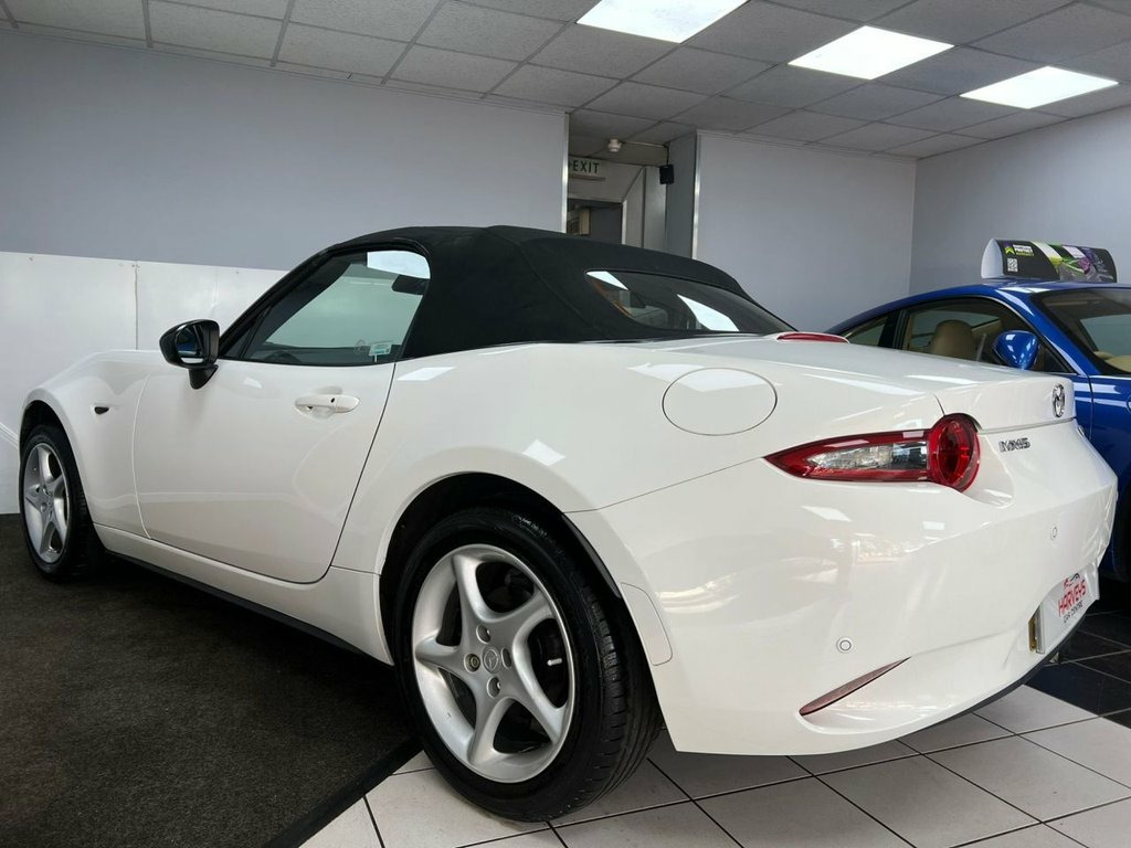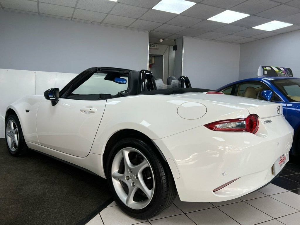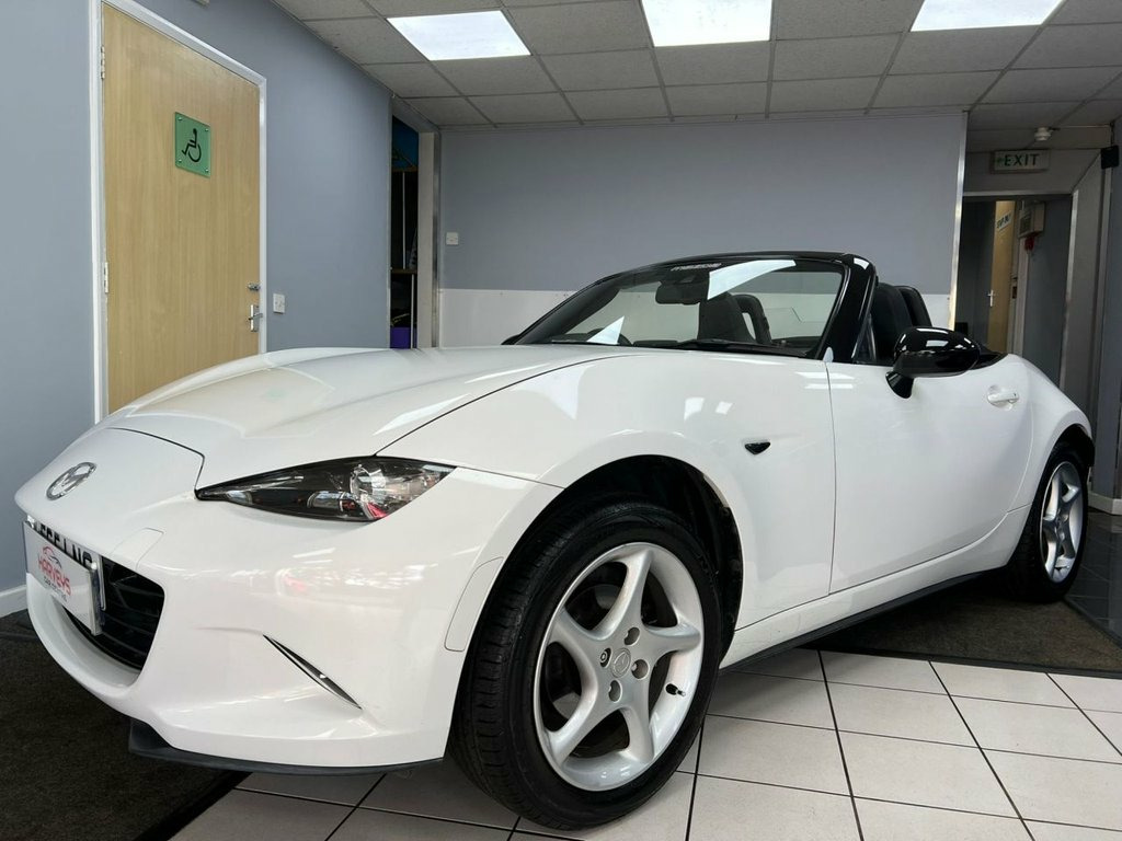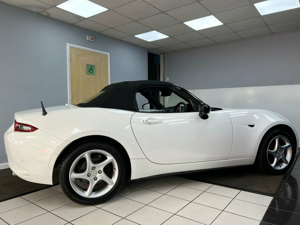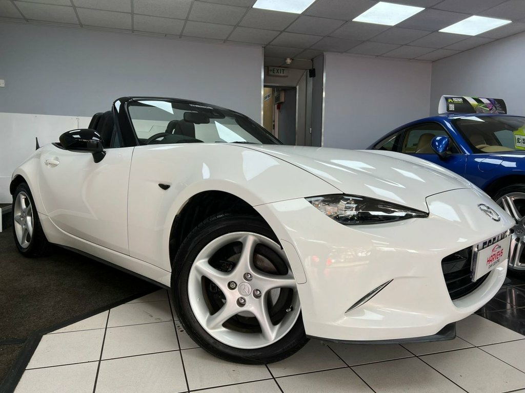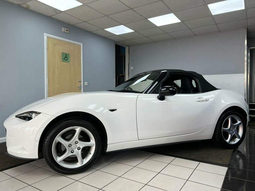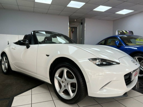 Service History 1 FORMER KEEPER MOT September 2026. This highly sought after model looks amazing in gleaming white with alloy wheels & full heated leather sports interior. WARRANTY included etc. Beautifully styled looks, powerful 130BHP in a lightweight chassis ensuring impressive 127mph performance combined with rapid acceleration ( 0-60 in 8.3 seconds! ) Razor sharp road-holding ability, huge specification, good 47mpg combined economy & 57mpg extra urban fuel economy. Japanese precision engineered to an exceptionally high standard. This is the SKYACTIV-G Sport Nav variant, further enhanced by the Sport Nav trim. It comes equipped with a suite of convenient features, including rear parking sensors for easier manouvering, dusk sensing automatic headlights that illuminate when needed, and LED headlights with auto levelling for optimal visibility. The multimedia system, complete with a premium branded sound system, ensures an enjoyable driving experience, while smart keyless entry adds a touch of modern convenience. Stay on track at all times with built in Sat Nav. The best selling sports car of all time with good reason. This car out performs and handles all of its competition. Highly rated & with the best reviews in its class, this sports car makes a wonderful choice. This well presented low mileage high spec 1 former keeper example is offered in the most desirable colour & looks amazing. Great value. Finance arranged, credit cards & part exchange acc 16in Alloy Wheels - Gunmetal, 7in Colour Touch Screen Display, Adjustable Speed Limiter, Aha App and Stitcher App Integration, Air Conditioning - Climate Control, Air Conditioning Dials - Chrome, Air Vent Surrounds - Chrome, Analogue Speedometer, Audio Transfer from Bluetooth Devices, Auto Dimming Rear View Mirror, Automatic Passenger Airbag Deactivation , Auxiliary - AUX - and Two USB Input, Chrome Meter Rings, Coinbox, Convertible Top - Premium Cloth Soft Top, Cruise Control with Manual Speed Adjustm, Crystal White, Cupholder - Front x2, DHS - Deployable Hood System, Double Pinion Electric Power Assisted St, Driver and Passenger Front Airbags, Dual Exhaust System, Dusk Sensing Automatic He