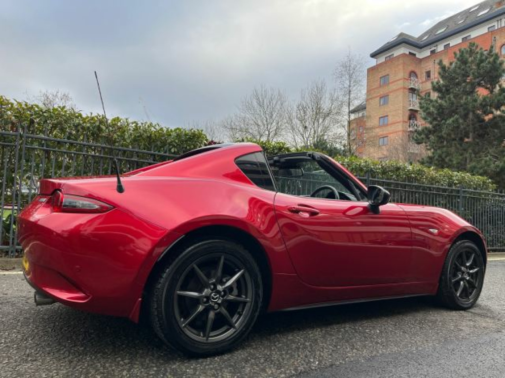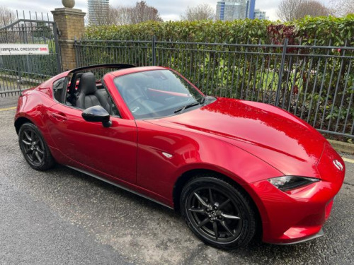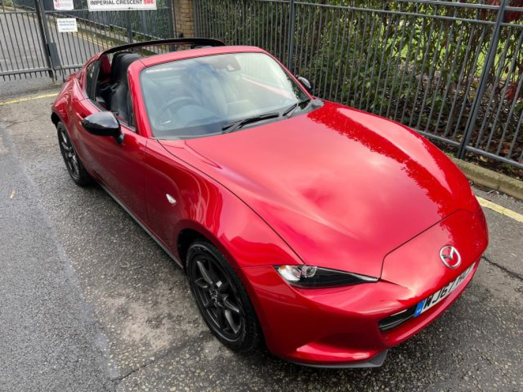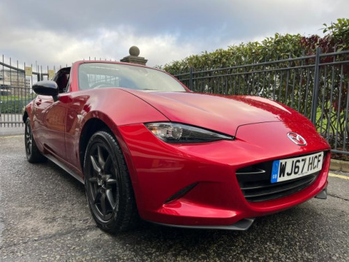 IMMACULATE 2017 ONE OWNER EXAMPLE WITH LOW MILES AND JUST SERVICED - The Sport Nav trim level ensures a premium experience, enhanced by features such as Smart KEYLESS ENTRY, a comprehensive Multimedia System complete with the Premium Branded BOSE Sound System, and LED Headlights with Auto Headlight Levelling. The convenience of Dusk Sensing Automatic Headlights and Rear Parking Sensors further complements the driving experience PLUS FULL BLACK LEATHER HEATED SEATS. The fuel economy of this Mazda MX-5 RF is a significant highlight, achieving an impressive 46 miles per gallon, which is notably better than many comparable vehicles. We LOVE MX5s and only sell the best examples - they are beautifully balanced with just the right amount of technology to be practical but not overly intrusive. Direct from retired owner it was purchased new from Eden Mazda Taunton and looked after by them from new with 6 Services Completed by them and large service just completed by us using Mazda genuine parts. Complete with 2 Keys, All Books and Documents, Original Bill of Sale, Tools and HPI Checked and clear - please call for early appointment or to reserve....