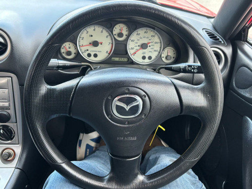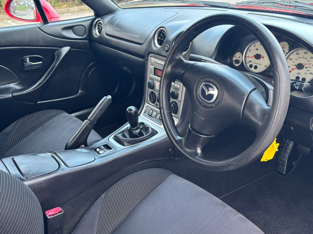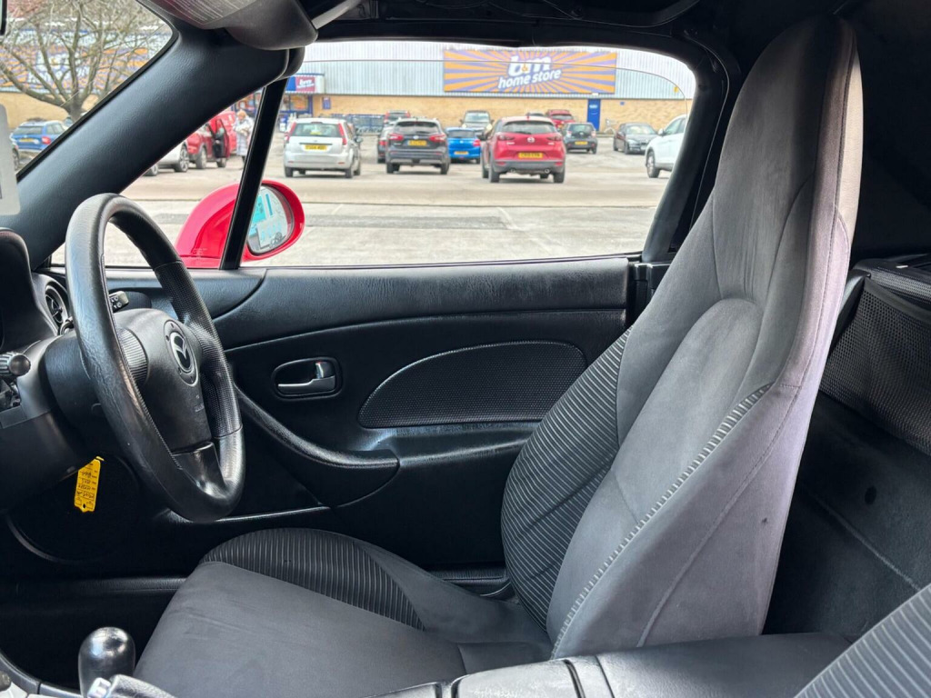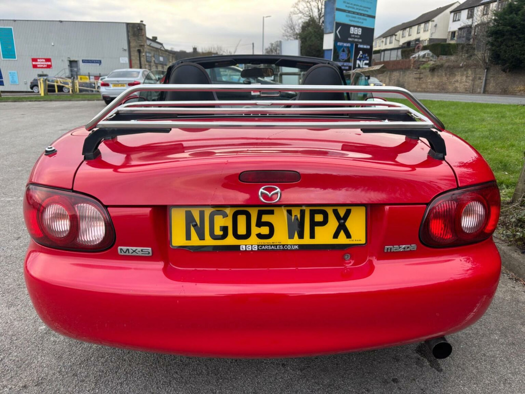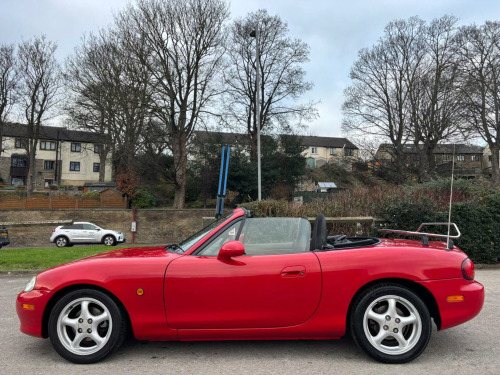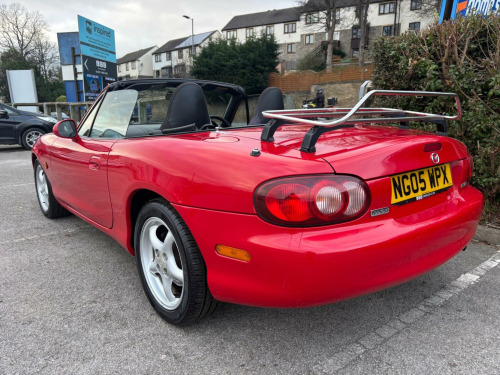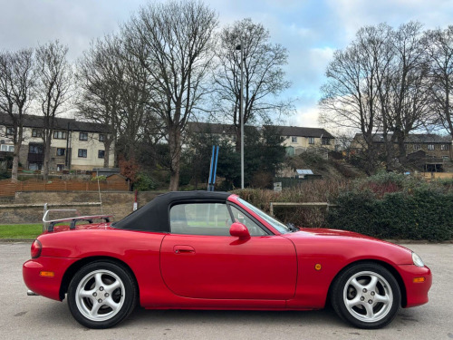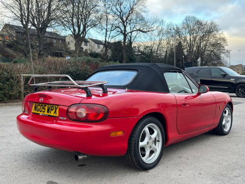 WE ARE PLEASED TO OFFER THIS HIGHLY DESIRABLE HIGHLY MAINTAINED RARE LOW MILEAGE OWNERSHIP MODERN DAY FUTURE CLASSIC MAZDA MX-5 1.6 SOFT TOP + FINISHED IN THE BEST COLOUR OF CLASSIC RED PAINTWORK WITH A CONTRASTING BLACK SOFT TOP AND IS COMPLEMENTED WITH A CHARCOAL CLOTH UPHOLSTERY + ONLY 89,293 MILES HAS BEEN COVERED BY FOUR OWNERS IN TOTAL + LAST ENTHUSIAST OWNER SINCE JULY 2021 AND IS BACKED WITH AN OUTSTANDING SERVICE HISTORY WHICH IS COMPRISED OF EIGHTEEN SERVICES + THE TIMING BELT KIT AND WATER PUMP WAS CHANGED AT 76,134 MILES ON THE 7TH OF JUNE 2022 + LAST SERVICED AT 88,373 MILES ON THE 16TH OF JUNE 2025 + THE MOT IS TILL THE 28TH OF DECEMBER 2026 + EXCELLENT CONDITION THROUGHOUT AND DRIVES SUPERB + MAZDA BUILD QUALITY + FULL SPECIFICATION WHICH INCLUDES A CHROME BOOT LUGGAGE CARRIER / FIVE SPOKE ALLOY WHEELS / RADIO AND CD PLAYER / SPORT SEATS / COLOUR CODED BUMPERS / FULL ELECTRIC PACK WITH ELECTRIC WINDOWS AND DOOR MIRRORS / CENTRAL LOCKING AND MUCH MORE + HANDBOOK PACK + STAMPED SERVICE BOOK WITH INVOICES AND RECEIPTS + 2 X KEYS + ANY TRIAL OR INSPECTION IS WELCOMED + HPI CLEAR WITH CERTIFICATE + SIX MONTHS NATIONWIDE WARRANTY IS INCLUDED + THIS TRULY CHERISHED EXAMPLE MUST BE VIEWED TO BE APPRECIATED AND MUST NOT BE CONFUSED WITH LESSER EXAMPLES AVAILABLE. We have been established in Baildon for over 20 years. All our vehicles are fully inspected, prepared and valeted. We are finance specialists. Part exchange is welcome. All major credit and debits accepted. Open 7 days. Our postcode is BD177EX.