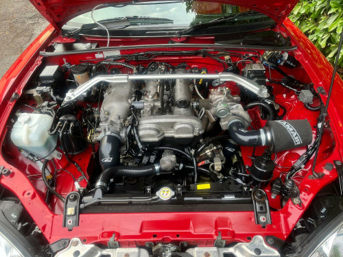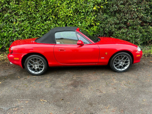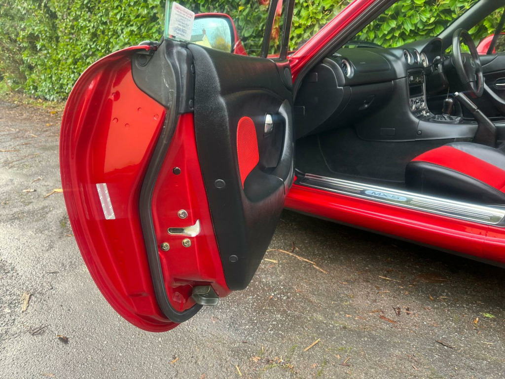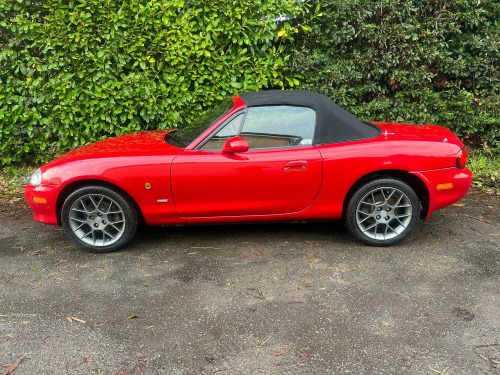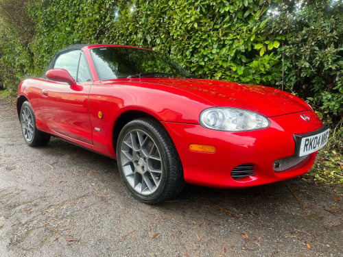 MAZDA MX-5 EUPHONIC 2004 With only 29,000 Miles from New, Last owner for the past 16 years, Finished in Velocity Red Metallic, with black and red leather seats with matching trim. complimented with leather steering wheel, handbrake sleeve and gear knob. This car is in stunning condition throught, 16 Grafite Alloy wheels with 4 good tyres,New Front & Rear C Hook Brake Discs & Pads Chrome front grill, Central locking, Electric Windows, 3 keys, Hand Books & bills, In 2018 @ 27920 miles this car had a M-Tech Turbo Conversion at a cost of £4854.00, New injectors, stage 2 clutch, sports cat, full exhaust etc.