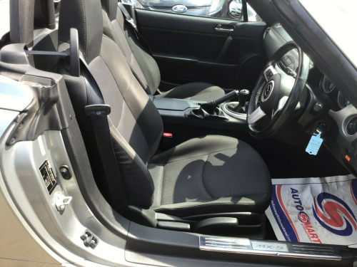 ** AA INSPECTED AND PASSED!! ** This 2012 British-spec Mazda MX-5 1.8i SE Roadster 2dr with 67822 miles on the clock is a top-notch Convertible that runs on Petrol and comes with an MOT valid until 14/06/2026. With 2 seats and 2 doors, this vehicle is ULEZ compliant and boasts a Euro 5 (126 ps) engine. The car is equipped with 16in Alloy Wheels, Body Coloured Bumpers and Door Handles, as well as Electric Windows and Electrically Adjustable-Heated Door Mirrors. If you're in the market for an agile and reliable ride, this Mazda MX-5 is definitely worth considering. in alloy wheels, bumpers - body coloured, door handles - body coloured, electric windows - front, electrically adjustable-heated door mirrors, exhaust tailpipes - twin, abs - anti lock braking system, airbags - driver, airbags - front passenger, airbags - front passenger deactivation system, central locking - remote with deadlocking, dsc - dynamic stability control, eba - emergency brake assist, ebd - electronic brakeforce distribution, esp - electronic stability control, tcs - traction control system, thatcham category 1 alarm and immobiliser, air conditioning - climate control, gear knob - leather, handbrake - leather wrapped, remote boot release, scuff plates - stainless steel, seats - drivers manual height adjustment, steering wheel - leather, steering wheel - mounted remote audio controls, auxillary jack for connecting mp3 players, mp3-cd player with speakers x6, power steering