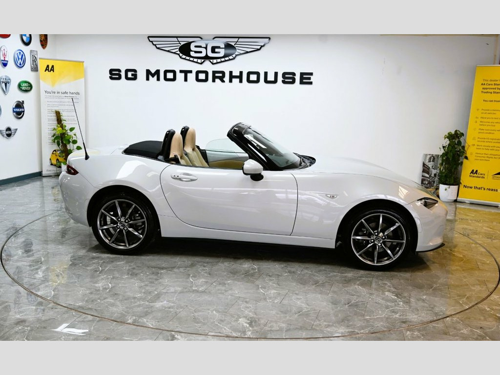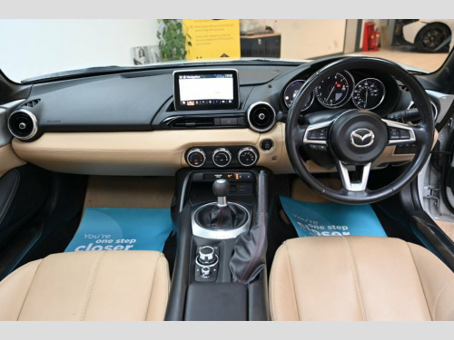 HUGE SPEC - MX-5 2.0 SKYACTIV-G GT SPORT NAV / ULEZ # FULL SERVICE HISTORY + 2 CAREFUL OWNERS FROM NEW + SATELLITE NAVIGATION + REVERSING CAMERA + HEATED SEATS + FULL LEATHER INTERIOR + LANE ASSISR + REAR PARKING AID + PUSH START + MAZDA MULTIMEDIA SCREEN / BLUETOOTH / BT AUDIO / USB / AUX + 6 SPEED MANUAL GEARBOX + STEERING CONTROLS + CRUISE CONTROL + ALL ELECTRIC WINDOWS + ALLOYS WHEELS + AUTO LIGHTS + ELECTRIC DOOR MIRRORS + REAR HEATED SCREEN ##### FRESH SERVICE + 12 MONTHS MOT ### CHECKED & INSPECTED ##### FREE 6 MONTHS NATIONWIDE WARRANTY (MECHANICAL & ELECTRICAL - PARTS AND LABOUR INCLUDED) +++ FREE 12 MONTHS AA BREAKDOWN ##### 0% DEPOSIT FINANCE AVAILABLE ##### ALL HPI CLEAR +++ ANY P/X WELCOME. Road Tax Opt, We accept all major CREDIT & DEBIT Cards, 5 Days Drive Away Insurance, Located 5 Mins from Hoddesdon OR Broxbourne train station, 21 High Street, EN11 8SX 17in Alloy Wheels - Bright, 3-Stage Seat Heaters, 7in Colour Touch Screen Display, Adjustable Speed Limiter, Aha App and Stitcher App Integration, Air Conditioning - Climate Control, Air Conditioning Dials - Satin Chrome, Air Vent Surrounds - Satin Chrome, Analogue Speedometer, Audio Transfer from Bluetooth Devices, Auto Dimming Rear View Mirror, Automatic Passenger Airbag Deactivation , Auxiliary - AUX - and Two USB Input, Body Coloured Door Mirrors, Chrome Meter Rings, Coinbox, Convertible Top - Premium Cloth Soft Top, Cruise Control with Manual Speed Adjustm, Cupholder - Front x2, DHS - Deployable Hood System, Door Mirrors - Power Operated and Heated, Double Pinion Electric Power Assisted