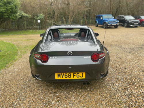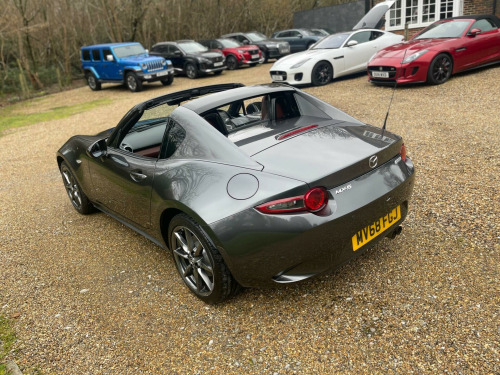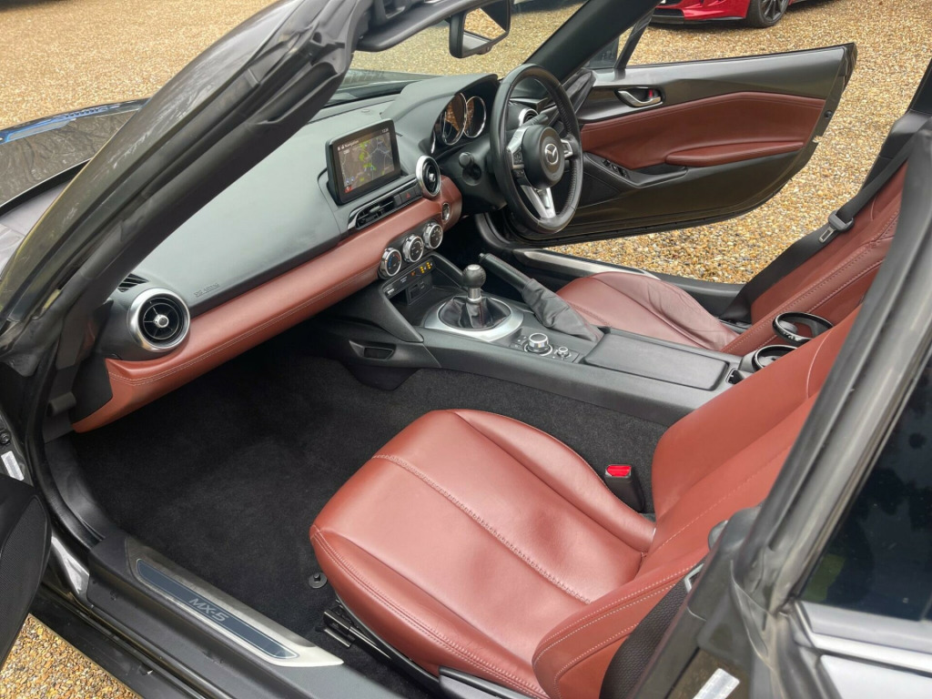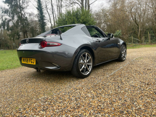 A Very smart example in Metallic Grey with dark tan hide heated seats. SAT NAV, Reverse camera, DAB Radio, Bluetooth, Lane Keep Assist, 6 Speed gearbox, Dark Satin Chrome alloy wheels. Service, New Brakes all round and MOT just carried out. GREAT VALUE CONVERTIBLE WITH SPRING AROUND THE CORNER !!!This 2019 Mazda MX-5 RF SKYACTIV-G GT Sport Nav+ presents a superb ownership proposition, having had only two owners from new and boasting a clear vehicle history check. This particular model, the GT Sport Nav+, is equipped with a responsive 2.0 litre petrol engine and meets Euro 6 emissions standards. Convenience is key with features like dusk sensing automatic headlights, smart keyless entry, and climate control air conditioning. For ease of parking, it includes rear parking sensors, and staying connected on the go is simple with integrated Bluetooth.Experience exhilarating performance with this MX-5 RF, capable of accelerating from 0 to 62mph in just 6.8 seconds. This impressive acceleration demonstrates its sporting prowess, setting it apart from many other vehicles in its class. The combination of its engaging driving dynamics, refined GT Sport Nav+ trim, and thoughtful features makes this Mazda MX-5 RF a truly desirable sports car. ppa leather - tan, 17in alloy wheels - bright, 3-stage seat heaters, 7in colour touch screen display, adjustable speed limiter, aha app and stitcher app integration, air conditioning - climate control, air conditioning dials - satin chrome, air vent surrounds - satin chrome, analogue speedometer, audio transfer from bluetooth devices, auto dimming rear view mirror, automatic passenger airbag deactivation system, auxiliary - aux - and two usb input, body coloured door mirrors, chrome meter rings, coinbox, cruise control with manual speed adjustment, cupholder - front x2, dhs - deployable hood system, door mirrors - power operated and heated, double pinion electric power assisted steering - dp-epas, driver attention alert - daa, driver and passenger front airbags, dual exhaust system, dusk sensing automatic headlights, dynamic stability control - dsc - with traction control system - tcs, electric windows - one touch auto down, emergency tyre repair kit, engine start-stop button, fashion bar cladding, four-wheel anti-lock braking system - 4w-abs with electronic brake-force distribution - ebd, front and rear smart city brake support, fuel filler lid - body colour, gear knob - leather with chrome surround, gear shift indicator, handbrake - leather wrapped, hardtop - power retractable, headlights - adaptive front lighting system, headlights - coming-leaving home, headlights - led with auto headlight levelling, hill hold assist, isofix child seat anchorage - passenger seat, inner door handles - satin chrome, integrated bluetooth, interior courtesy light, interior upper door trim - exterior body colour co-ordinated, led daytime running lights, lsd - limited slip differential, lane departure warning system, multimedia commander, multimedia system, piano black fashion bars, rain-sensing front wipers, rear brake light - high mounted, rear parking sensors, remote central locking with deadlocking and remote boot release, srs - supplementary restraint system, safety pack, satellite navigation system, scuff plates, seatbelt reminder - driver and passenger with audible warning, seatbelts - 3 point - elr - 2x with pre-tensioners, seats - drivers manual slide-recline and tilt adjustment, seats - front passenger manual slide and recline adjustment, side airbags, smart keyless entry, sports suspension, steering wheel - leather, steering wheel - mounted audio and bluetooth controls, steering wheel - tilt and telescopic adjustment, storage - rear centre box with lockable lid, sunvisors - drivers and passengers with covered vanity mirror-ticket holder, thatcham category 1 alarm and immobiliser, traffic sign recognition, trip computer, tyre pressure monitoring system, usb - ipod connectivity, windblocker