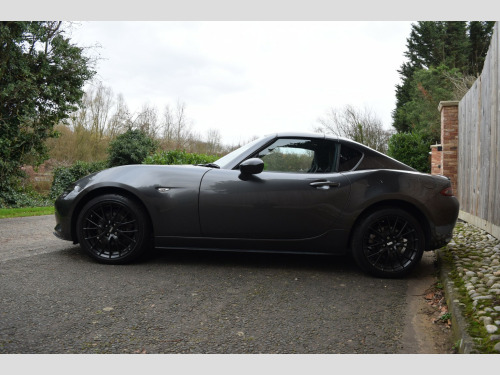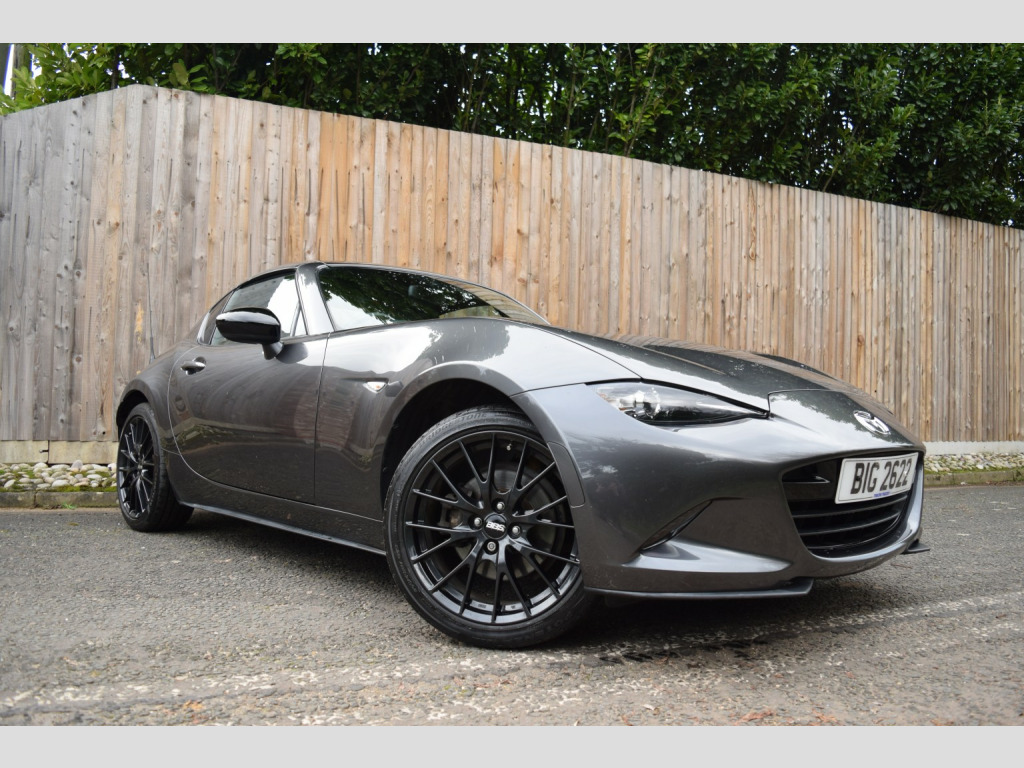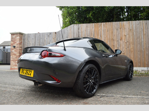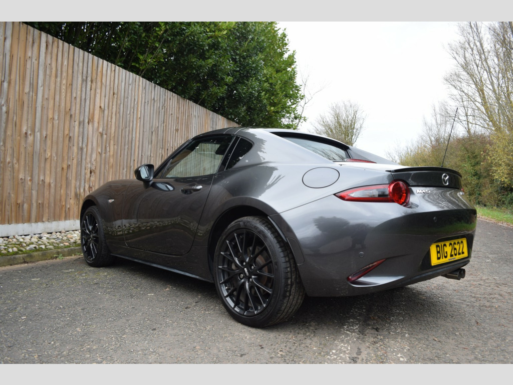 Absolutely stunning very clean example of the MX-5 RF Launch Edition. Presented in Machine Grey metallic paint, with only 2 owners and a full service history, this is not one to miss!, , We privately sourced this vehicle from the second owner who purchased from a Mazda main dealer and had owned it since March 2020 when it was on only 6k miles! Since then it has been garage-stored and very lovingly cared for both cosmetically and mechanically. , Its initial 3 years of service history are at a Mazda main dealer, then during the second owners ownership it was serviced at their local garage with all of the invoices present. , The private plate is included in the sale, and the cars original 17 plates are present if the new owner wished to remove the private plate. , Service history:, 21/03/2018 @ 2,835, 22/05/2019 @ 5,052, 11/03/2020 @ 6,250, 06/05/2021 @ 11,316, 31/08/2022 @ 20,590 (including spark plugs), 18/10/2023 @ 27,855, 06/11/2024 @ 34,456, 27/10/2025 @ 40,457, , As part of our pre-sale preparation, we are having a health check completed by an independent garage along with a gearbox oil change, differential oil change, brake fluid change and new MOT. , Be sure to check out our in-depth walkaround video to get a thorough idea of this wonderful cars condition, it really is stunning! It drives as good as it looks too, we specialise in MX-5s and genuinely love these cars, from the moment you start driving one you can tell how well engineered they are to simply feel connected and be amazing good fun to drive. , 2 keys, all HPI clear. Coles Auto Collective is a small and friendly family run business, we are genuine car enthusiasts and only supply cars that we would love to drive ourselves! All cars are sourced privately or via PX (none from auctions). , Highly rated on Google with over 50 5* reviews!, , 3 month warranty included with option to extend anything up to 3 years!