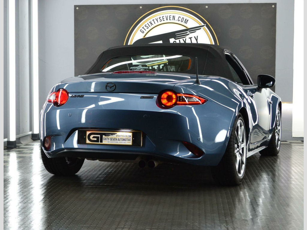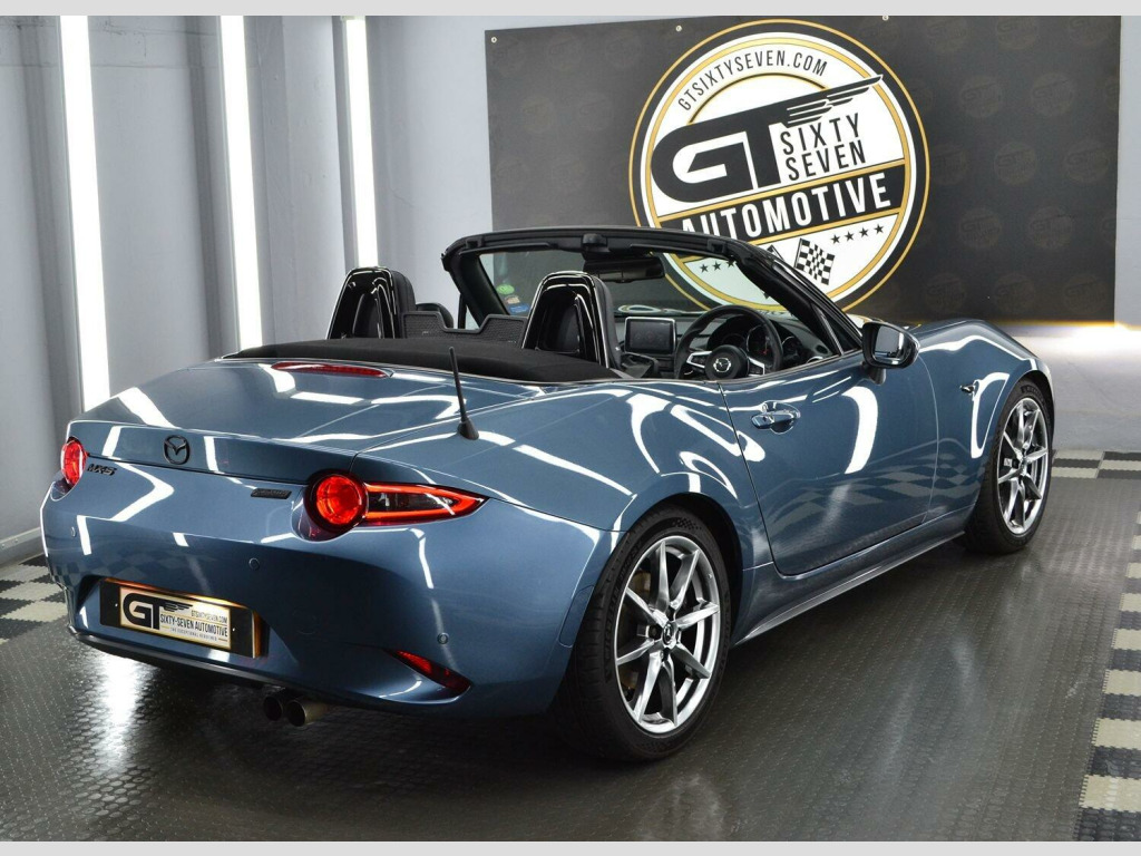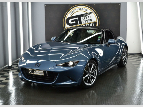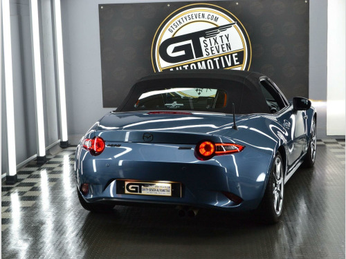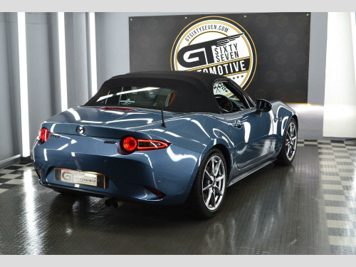 We are thrilled to bring another sensational Mazda MX-5 to the market from within our collection. Our 2 litre Skyactiv- G Sport Nav Roadster looks simply incredible in the option of Blue Mica Reflex paintwork against the immaculate shadow chrome 17 alloy wheels & Black roof & trim accents. This example has clearly been the pride & joy of its last MX5 Club member custodian, its exceptional condition tells that story. It enjoyed oil changes every 5000 miles & also benfits from a recent brake system overhaul. , The manually folding fabric roof is very simplistic & helps keep weight down, especially in comparison to its hardtop RF sibling. The roof can be deployed in seconds to take advantage of the sunshine opportunities all year round & has recently been re-water proofed, and is in fantastic condition. , Inside the cabin youll find a generous spec, surpassing even its German rivals. Its a refined space packed with modern comfort & infotainment from Bose & safety features not seen in previous models including blind spot monitoring & lane departure warning . The joy of the MX-5 is it can be enjoyed all year round even on cold days, the heated seats & powerful heating system make it perfect for bright winter drives out with the roof down. , This is a true drivers car at heart, the basics perfected thanks to the 2 litre 160BHP Skyactiv-G engine coupled to an engaging six-speed manual gearbox. Drive is sent to the rear wheels via a Limited Slip Diff with handling prowess taken care of by sports suspension from Bilstein & front tower strut bracing, Michelin Pilot Sport 5 is the choice tyre for the 17 alloys to give exceptional grip in all conditions. , When youre considering purchasing a vehicle from the GT Sixty-Seven Automotive collection, do it safe in the knowledge that its an example which has been personally selected by us for its exceptional pedigree. , All of our vehicles are supplied with a minimum 6-month comprehensive warranty & 12 months MOT as standard; we are also able offer continuing peace of mind past this point with our superb extended warranty packages. For our clients wanting to maintain those ultimate showroom looks then we can offer exclusive pricing for the highest quality ceramic coating packages available, alongside underbody rust protection to help future proof your investment. The viewing of this vehicle is by an appointment basis only, this is to ensure we can give you our undivided attention in a very relaxed setting. , The new custodian of this stunning Japanese sports car will also have the opportunity to enjoy it to its full potential, thanks to a membership with our drivers club - Club GT350, we host members only driving events across the UK & Europe. Live the ride, drive the life in 2025!