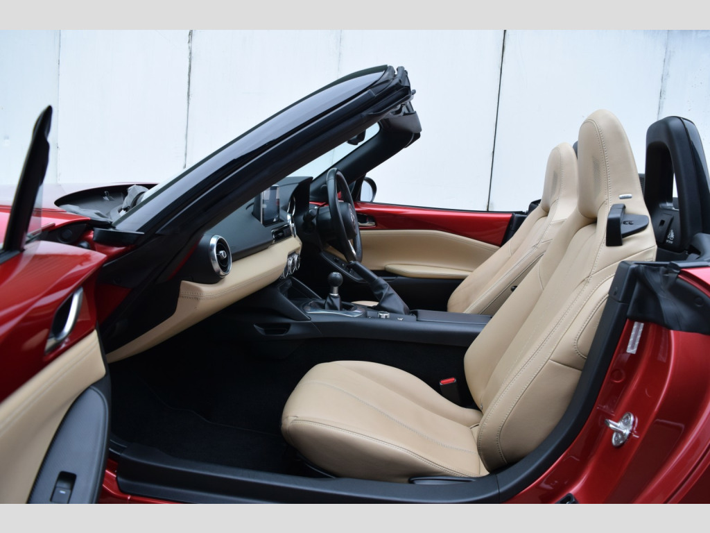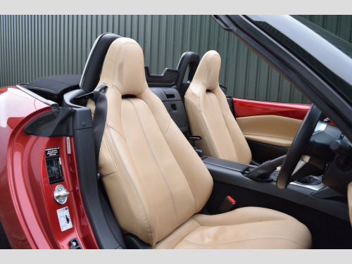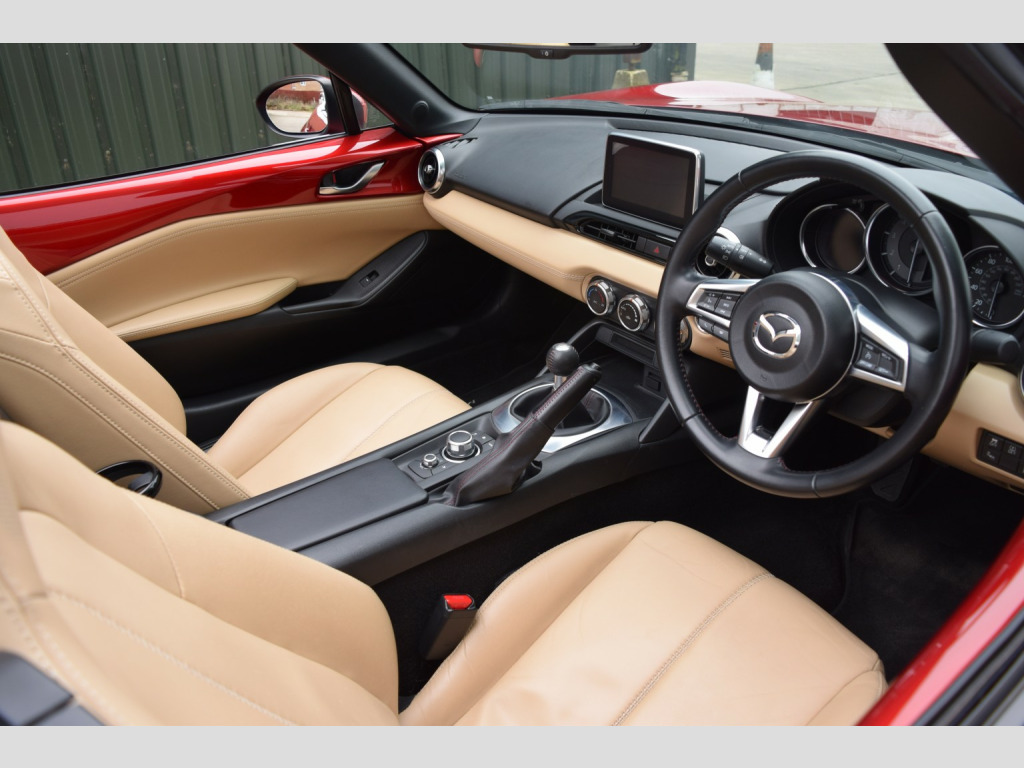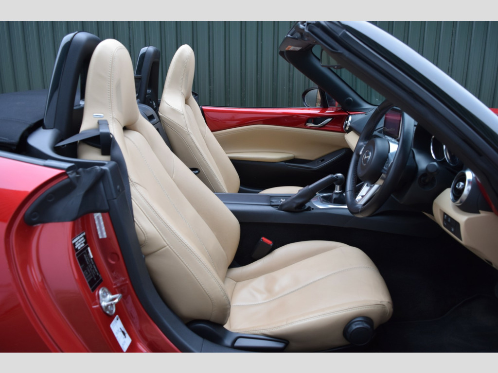 Another fantastic example of the Mazda MX-5! This one is presented in the very desirable spec combination of Soul Red metallic paint and Sand Leather interior, with the additional bonus of the optional Safety Pack too, which is quite a rare option and includes blind spot monitoring, automatic high beam and rear cross traffic alert. , The Sport Nav specification level is also a very desirable trim level, as it comes with all the luxuries to make this a comfortable and usable everyday driver as well as a weekend toy! These include: BOSE Premium Sound System, Rear Parking Sensors, Cruise Control, Leather Seats, Auto Lights & Wipers + more!, , Being the 2.0 engine, this car not only comes with a very capable amount of power, but also Bilstein suspension and a limited slip differential, making it a simply brilliant package for a drivers car. The gearbox is simply an absolute joy to use too! Incredibly well weighted, smooth and with a short sporty feel. , Fantastic service history, low mileage and only 3 owners from new. , Service history:, 14/03/2017 @ 4,573 (Mazda), 23/03/2018 @ 7,921 (Mazda), 15/04/2019 @ 11,017 (Mazda), 09/09/2020 @ 14,059 (Mazda), 18/05/2022 @ 16,950 (Mazda), 15/09/2023 @ 20,015 (Independent), 27/02/2025 @ 26,655 (Independent), 08/01/2026 @ 31,233 (Independent), , All of our vehicles are health checked by an independent garage and any recommended work is completed. , 2 keys, all HPI clear. Coles Auto Collective is a small and friendly family run business, we are genuine car enthusiasts and only supply cars that we would love to drive ourselves! All cars are carefully hand picked by ourselves and we travel all over the country to ensure we have the best stock we can find, no cars are purchased via auctions. , Highly rated on Google with over 60 5* reviews!, , 3 month warranty included with option to extend anything up to 3 years!