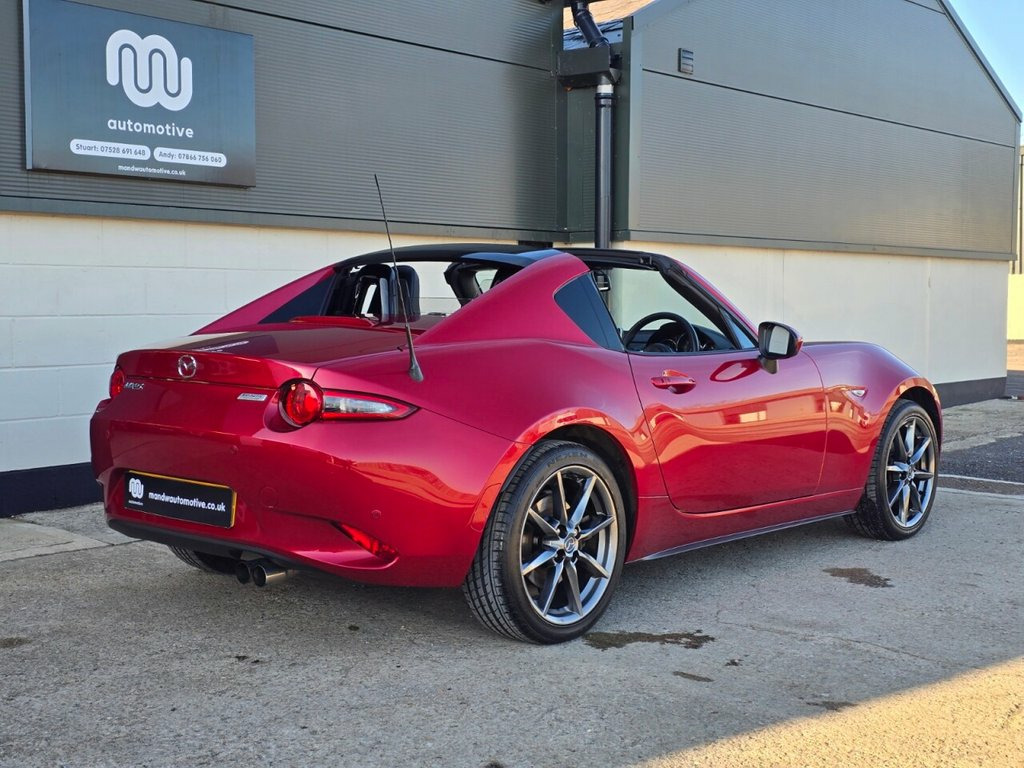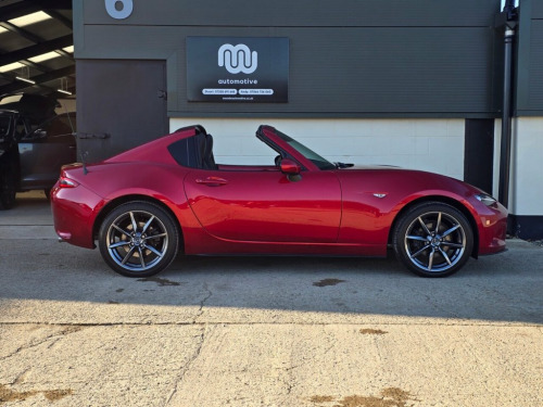 M&W Automotive are thrilled to offer for sale this amazing Mazda MX-5 RF 2.0 SKYACTIV-G Sport Nav 2 door Petrol Manual. The vehicle has a GREAT SERVICE HISTORY, and was last serviced on the 22/08/2025 @ 27756 miles. The car has a New MOT valid until November 2026. This super used car is superb to drive and looks fantastic in the metallic Soul Red, it is everything you expect and hope for in an MX-5 and this latest model fully maintains the cars iconic two seater sport car status! The 2.0 L engine is the best in the range, it provides the perfect amount of power for a car of it's size and allows you to have loads of fun out on the roads, it's light and agile, but still very comfortable, economical to run and ULEZ compliant which makes it the perfect car for anywhere in the UK! The vehicle is packed with great tech too, this includes, DAB, Bluetooth with Music Streaming, AUX / USB Media Integration, Heated Front Seats, Full Black Leather Trim with, Multi Function Steering Wheel with Cruise Control, Auto Lights, Auto Rain Sensing Wipers, Electric Windows, Electric Mirrors and much more.... At M&W Automotive, we're committed to delivering quality and confidence with every vehicle we sell. That's why your car will come with: • A brand new MOT, valid until Nov 2026 • A thorough independent multi-point inspection to ensure the vehicle meets our high standards • A 3-month warranty for added peace of mind, with the option to extend o 17in Alloy Wheels - Bright Finish, 7in Colour Touch Screen Display, Adjustable Speed Limiter, Aha App and Stitcher App Integration, Air Conditioning - Climate Control, Air Conditioning Dials - Chrome, Air Vent Surrounds - Chrome, Analogue Speedometer, Audio Transfer from Bluetooth Devices, Auto Dimming Rear View Mirror, Automatic Passenger Airbag Deactivation , Auxiliary - AUX - and Two USB Input, Body Coloured Door Mirrors, Chrome Meter Rings, Coinbox, Cruise Control with Manual Speed Adjustm, Cupholder - Front x2, DHS - Deployable Hood System, Double Pinion Electric Power Assisted St, Driver and Passenger Front Airbags, Dual Exhaust System, Dusk Sensing Automatic Headlights, Dynamic Stabil