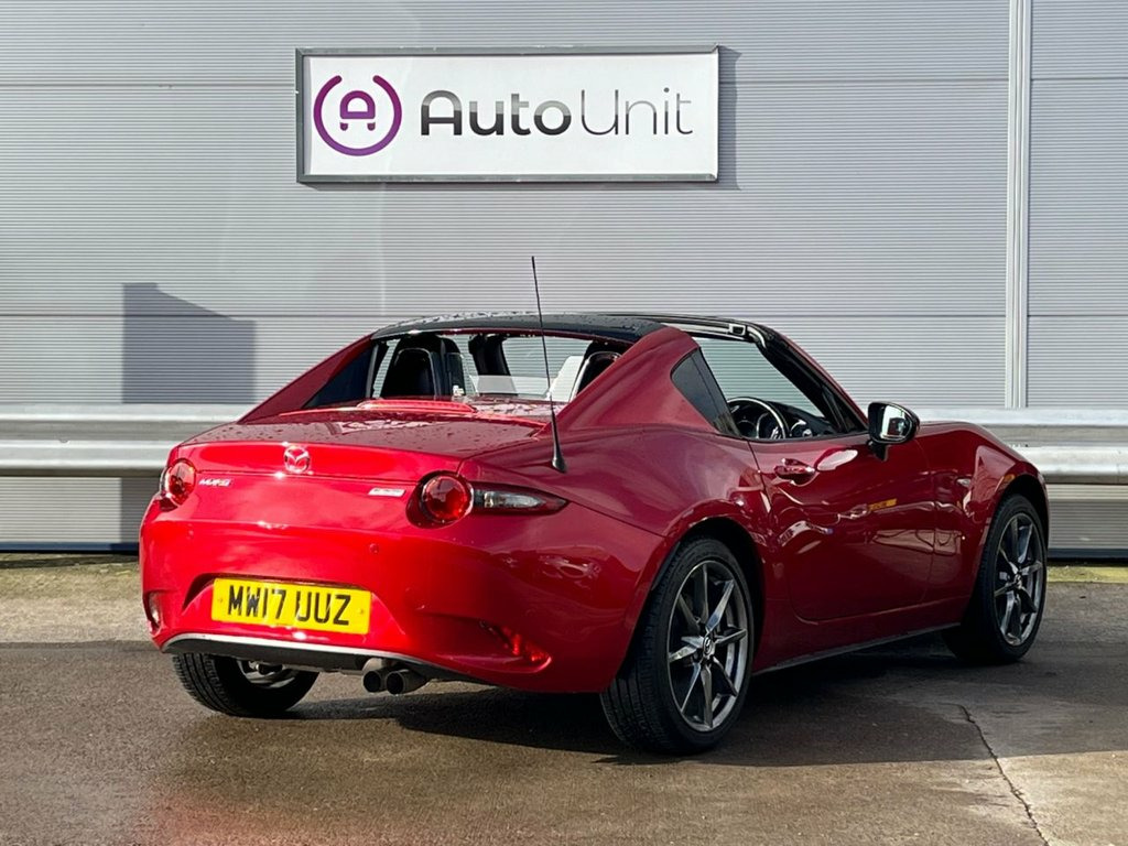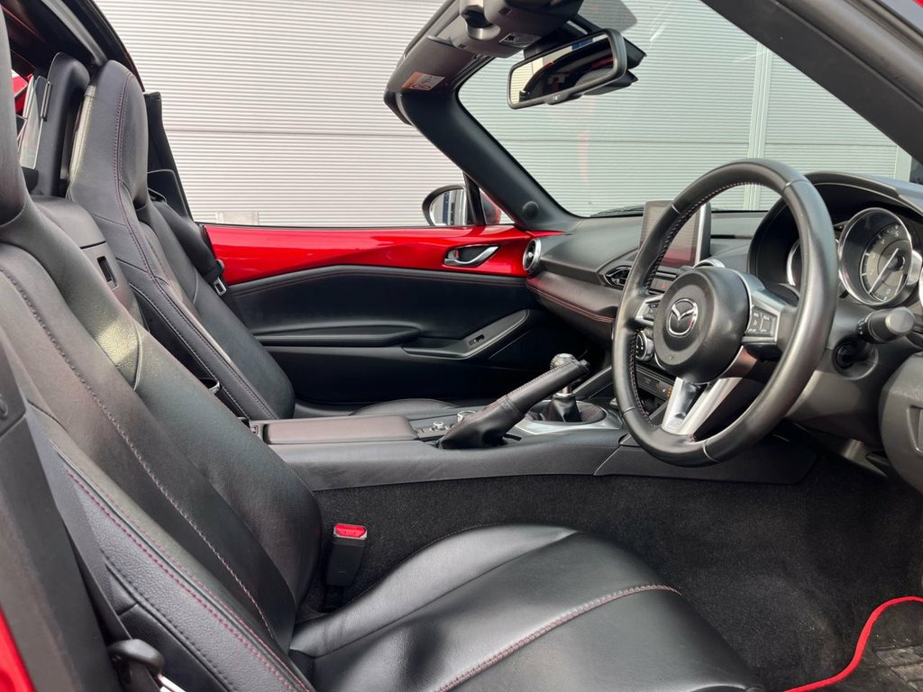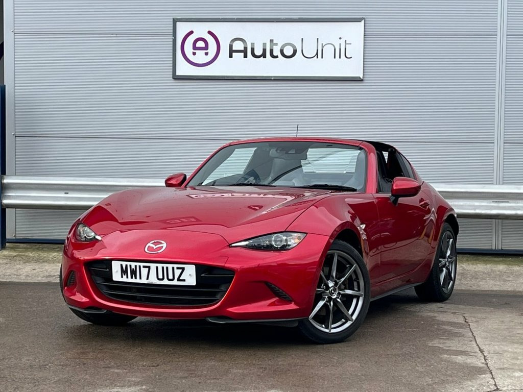 Discover this 2017 Mazda MX-5 RF SKYACTIV-G Sport Nav with exceptionally low mileage for its age, having covered just 26169 miles. The Sport Nav trim includes a comprehensive Safety Pack, featuring Blind Spot Assistance (BLIS), enhancing your awareness on the road. This particular MX-5 RF stands out with its low insurance group, making it an attractive proposition for many drivers. The combination of its sporty performance, advanced safety features, and economical running costs, as indicated by its low mileage and insurance rating, positions it as a compelling choice compared to other vehicles in its class. 17in Alloy Wheels - Bright Finish, 7in Colour Touch Screen Display, Adjustable Speed Limiter, Aha App and Stitcher App Integration, Air Conditioning - Climate Control, Air Conditioning Dials - Chrome, Air Vent Surrounds - Chrome, Analogue Speedometer, Audio Transfer from Bluetooth Devices, Auto Dimming Rear View Mirror, Automatic Passenger Airbag Deactivation , Auxiliary - AUX - and Two USB Input, Body Coloured Door Mirrors, Chrome Meter Rings, Coinbox, Cruise Control with Manual Speed Adjustm, Cupholder - Front x2, DHS - Deployable Hood System, Double Pinion Electric Power Assisted St, Driver and Passenger Front Airbags, Dual Exhaust System, Dusk Sensing Automatic Headlights, Dynamic Stabil