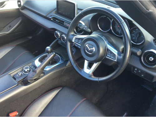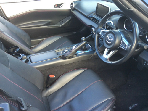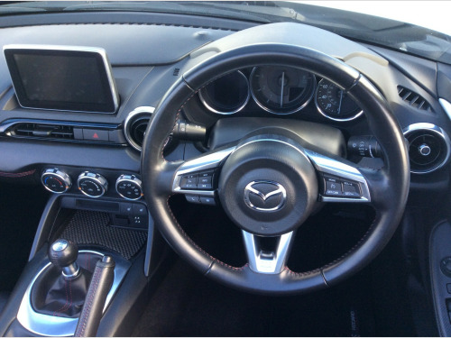 This 2016 Mazda MX-5 2.0 SKYACTIV-G Sport Nav Convertible 2dr is powered by a petrol engine and equipped with a manual gearbox, this convertible is a pleasure to drive, and with a new MOT it's ready to hit the road with confidence. With 2 doors and 2 seats, it's the perfect car for enjoying the open air, and being ULEZ compliant means it's also environmentally friendly. This model comes with satellite navigation, climate control, heated leather seats, rear parking sensors and bluetooth. If this particular vehicle doesn't align with your preferences, we encourage you to explore our extensive website, which features over 25 MX-5 models in stock. For our comprehensive stock list, please visit our website at www.maidstoneautocentre.co.uk. Please note that some of our cars are stored off-site, so it's advisable to give us a call before your visit to confirm their availability. All our cars come with a comprehensive 12-month AA breakdown cover, and we also offer various finance and extended warranty packages to suit your needs. in alloy wheels - bright finish, body coloured door mirrors, convertible top - premium cloth soft top with heated rear window - manually operated, dual exhaust system, electric windows - one touch auto down, electrically adjustable-heated door mirrors, emergency tyre repair kit, fashion bar cladding, fuel filler lid - body colour, windblocker, 7in colour touch screen display, aha app and stitcher app integration, audio transfer from bluetooth devices, auxiliary - aux - and two usb input, integrated bluetooth, multimedia system, satellite navigation system, usb - ipod connectivity, adjustable speed limiter, analogue speedometer, cruise control with manual speed adjustment, double pinion electric power assisted steering - dp-epas, gear shift indicator, lane departure warning system, multimedia commander, rear parking sensors, sports suspension, trip computer, tyre pressure monitoring system, air conditioning - climate control, air conditioning dials - chrome, air vent surrounds - chrome, auto dimming rear view mirror, chrome meter rings, coinbox, cupholder - front x2, engine start-stop button, gear knob - leather with chrome surround, handbrake - leather wrapped, heated seats, inner door handles - chrome, interior courtesy light, interior upper door trim - body coloured, rain-sensing front wipers, seats - drivers manual slide-recline and tilt adjustment, seats - front passenger manual slide and recline adjustment, side door trim - black with red stitching, steering wheel - leather with chrome bezel, steering wheel - mounted audio and bluetooth controls, steering wheel - tilt adjustment, storage - rear centre box with lockable lid, sunvisors - drivers and passengers with covered vanity mirror-ticket holder, automatic passenger airbag deactivation system, dhs - deployable hood system, driver and passenger front airbags, dynamic stability control - dsc - with traction control system - tcs, four-wheel anti-lock braking system - 4w-abs with electronic brake-force distribution - ebd, hill hold assist, isofix child seat anchorage - passenger seat, lsd - limited slip differential, remote central locking with deadlocking and remote boot release, skyactiv-body engineered triple h body structure to help protect occupants from impact forces, srs - supplementary restraint system, seatbelts - 3 point - elr - 2x with pre-tensioners, seatbelts - reminder screen with audible warning, side airbags, smart keyless entry, thatcham category 1 alarm and immobiliser, dusk sensing automatic headlights, headlights - adaptive front lighting system, headlights - coming-leaving home, headlights - led with auto headlight levelling, led daytime running lights, rear brake light - high mounted