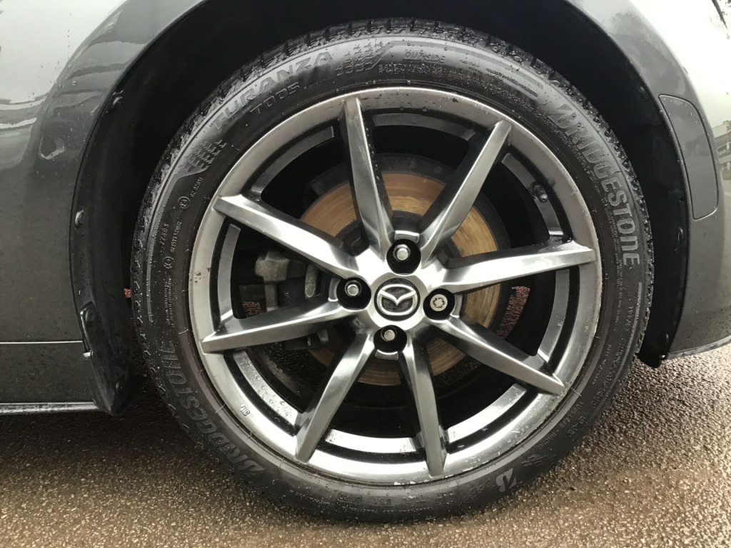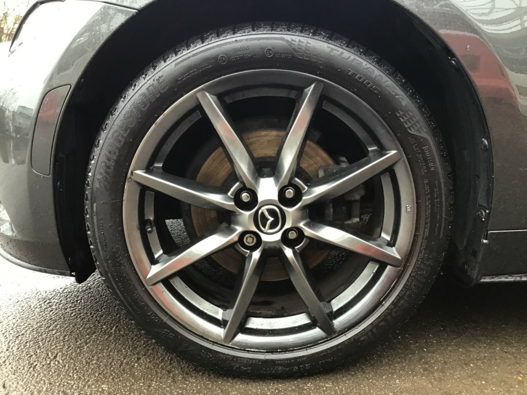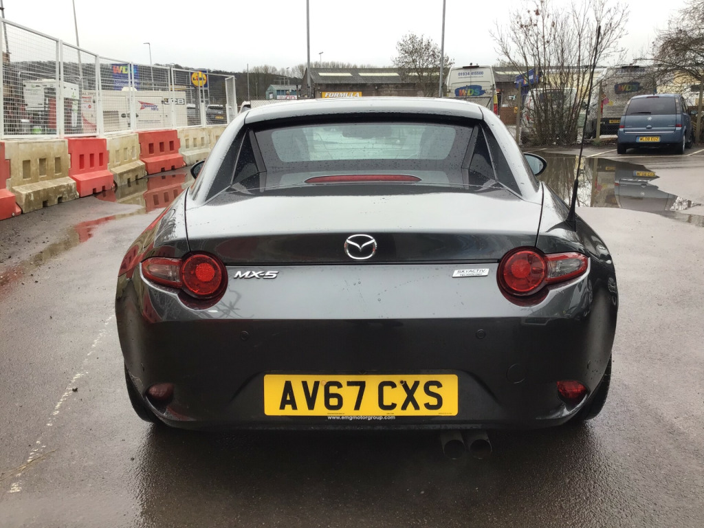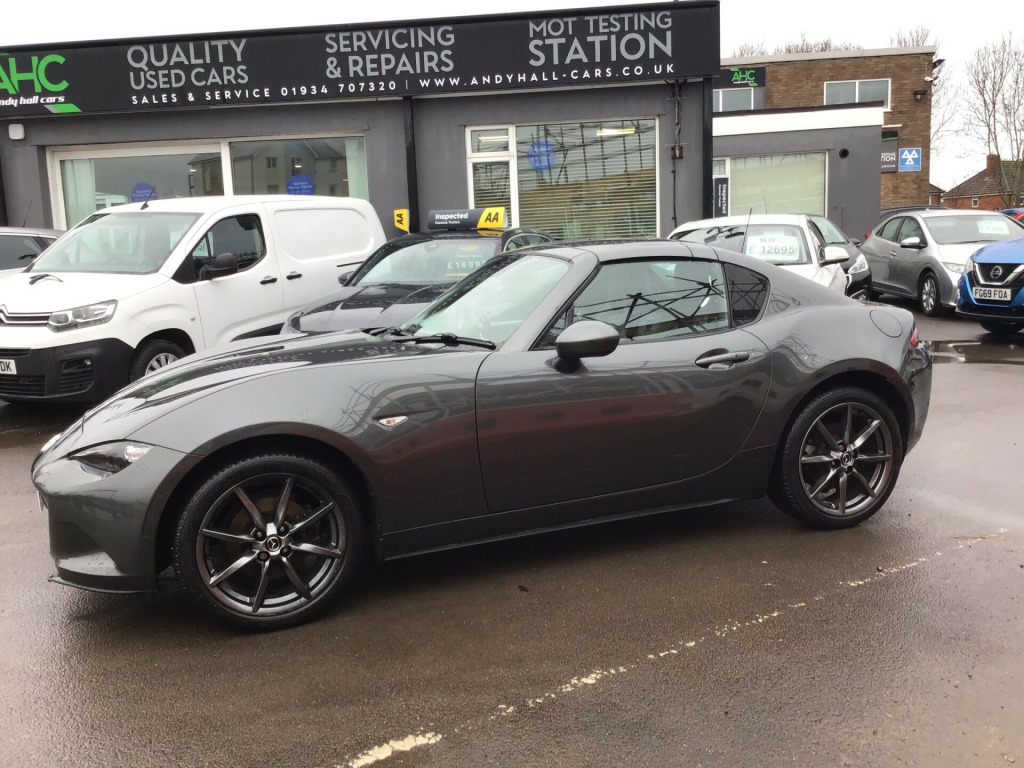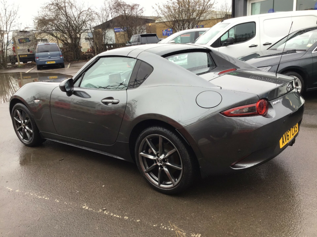 ** NEARLY FULL SERVICE HISTORY ** This 2017 Mazda MX-5 RF is a fantastic 2.0 SKYACTIV-G Sport Nav Convertible with just 48500 miles on the clock. The convertible top is perfect for enjoying the British summer, and with seating for two, it's ideal for a solo driver or a couple. Powered by petrol and boasting 160 horsepower, this Euro 6 compliant vehicle is ULEZ compliant and ready for city driving. The 2-door design and 17-inch alloy wheels give it a sporty look, while features like body-colored door mirrors, a dual exhaust system, and electrically adjustable-heated door mirrors add to its appeal. The electric windows with one-touch auto-down functionality make it easy to enjoy the open road, and the manual transmission puts the driver in full control. Whether it's a weekend getaway or a daily commute, this Mazda MX-5 RF is a stylish and dynamic choice for any driver. in alloy wheels - bright finish, body coloured door mirrors, dual exhaust system, electric windows - one touch auto down, electrically adjustable-heated door mirrors, emergency tyre repair kit, fashion bar cladding, fuel filler lid - body colour, hardtop - power retractable, windblocker, 7in colour touch screen display, aha app and stitcher app integration, audio transfer from bluetooth devices, auxiliary - aux - and two usb input, integrated bluetooth, multimedia system, satellite navigation system, usb - ipod connectivity, adjustable speed limiter, analogue speedometer, cruise control with manual speed adjustment, double pinion electric power assisted steering - dp-epas, lane departure warning system, multimedia commander, rear parking sensors, sports suspension, trip computer, tyre pressure monitoring system, air conditioning - climate control, air conditioning dials - chrome, air vent surrounds - chrome, auto dimming rear view mirror, chrome meter rings, coinbox, cupholder - front x2, engine start-stop button, gear knob - leather with chrome surround, handbrake - leather wrapped, heated seats, inner door handles - chrome, interior upper door trim - body coloured, rain-sensing front wipers, seats - drivers manual slide-recline and tilt adjustment, seats - front passenger manual slide and recline adjustment, side door trim - black with red stitching, steering wheel - leather, steering wheel - mounted audio and bluetooth controls, steering wheel - tilt adjustment, storage - rear centre box with lockable lid, sunvisors - drivers and passengers with covered vanity mirror-ticket holder, automatic passenger airbag deactivation system, dhs - deployable hood system, driver and passenger front airbags, dynamic stability control - dsc - with traction control system - tcs, four-wheel anti-lock braking system - 4w-abs with electronic brake-force distribution - ebd, hill hold assist, isofix child seat anchorage - passenger seat, lsd - limited slip differential, remote central locking with deadlocking and remote boot release, skyactiv-body engineered triple h body structure to help protect occupants from impact forces, srs - supplementary restraint system, seatbelts - 3 point - elr - 2x with pre-tensioners, seatbelts - reminder screen with audible warning, side airbags, smart keyless entry, thatcham category 1 alarm and immobiliser, dusk sensing automatic headlights, headlights - adaptive front lighting system, headlights - coming-leaving home, headlights - led with auto headlight levelling, led daytime running lights, rear brake light - high mounted