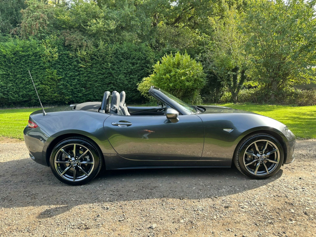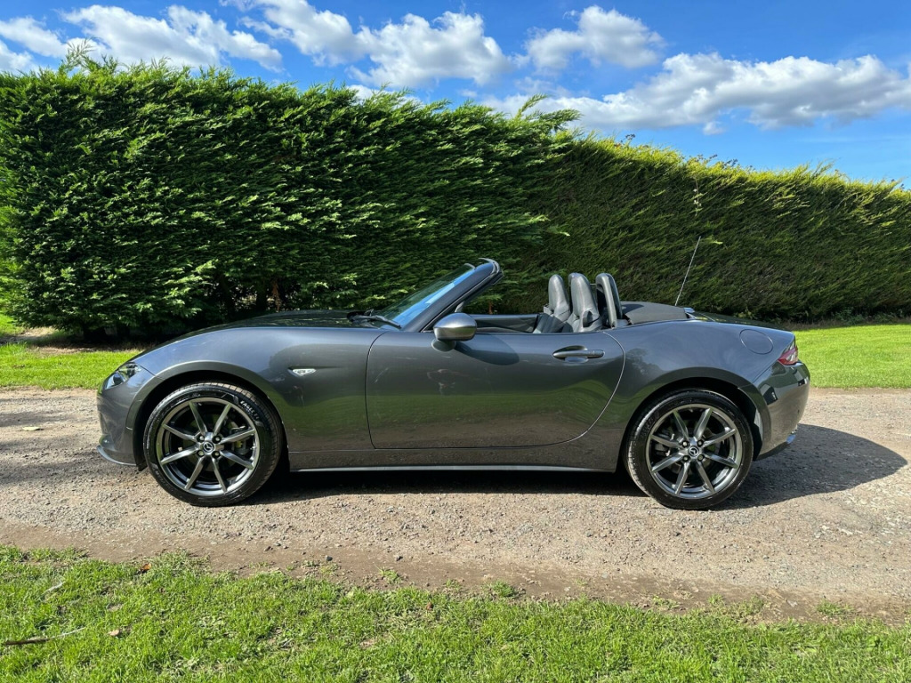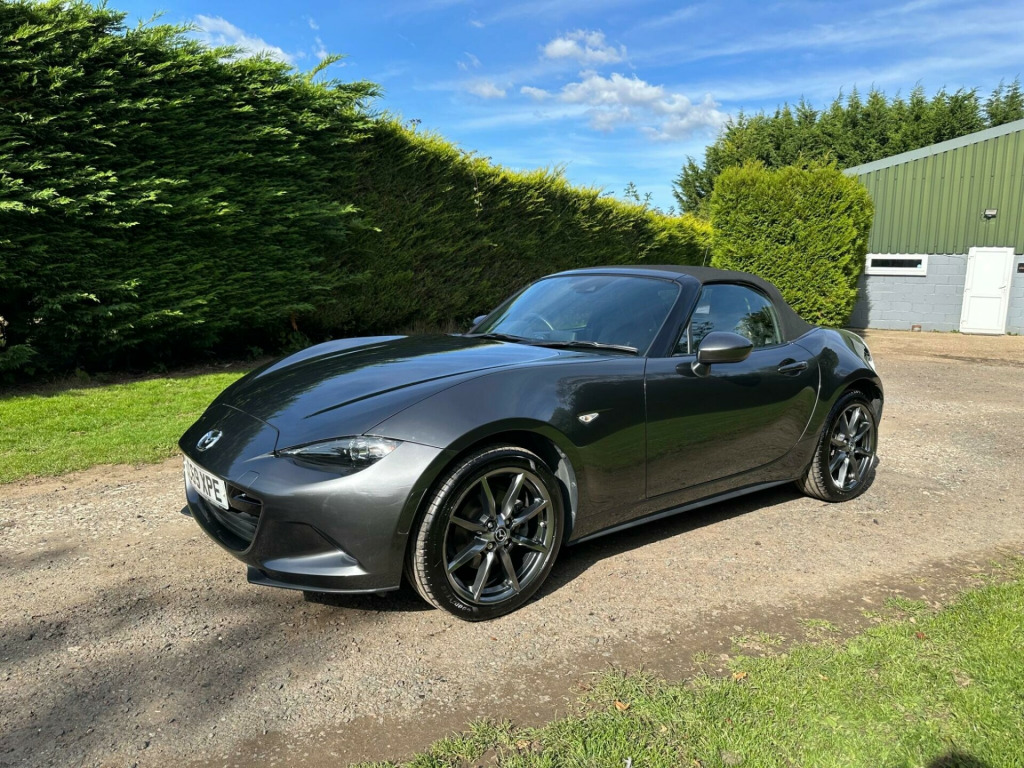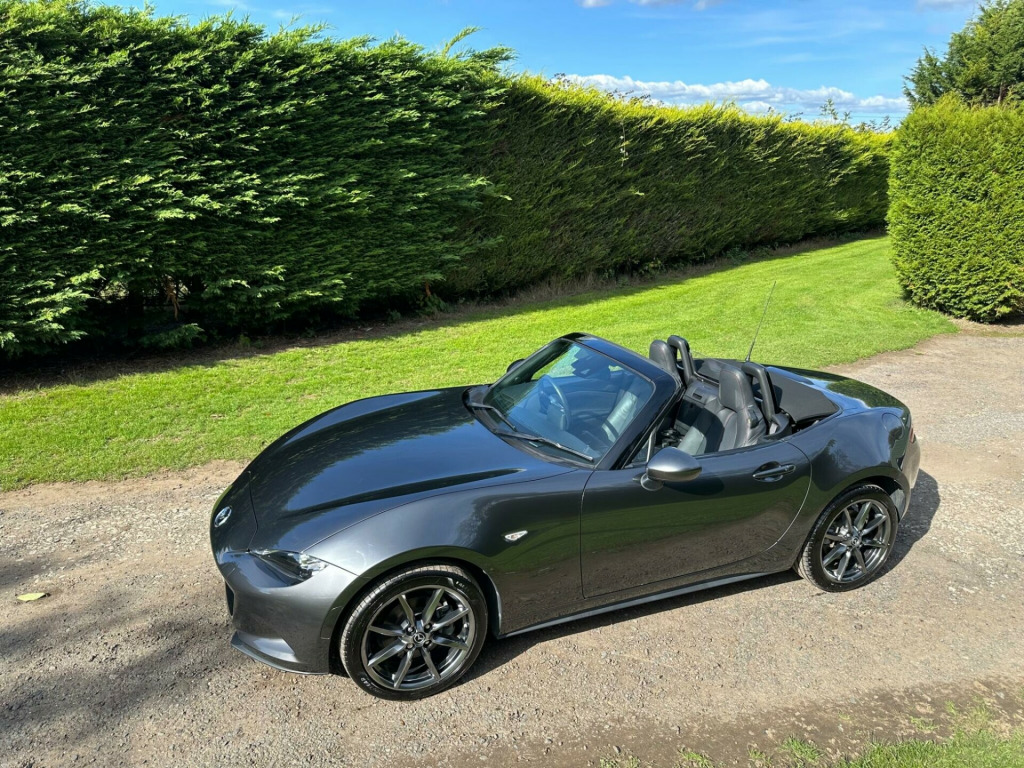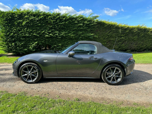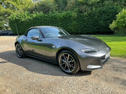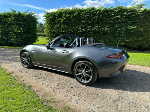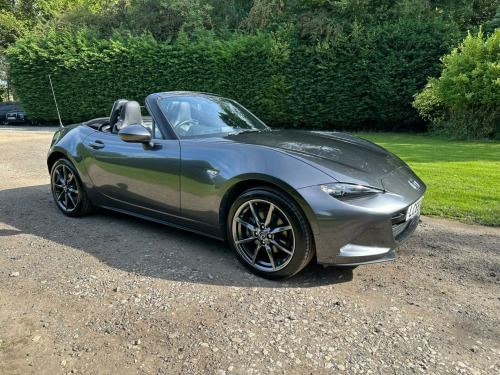 This STUNNING 1 OWNER Mazda MX-5 2.0 SKYACTIV-G Sport Nav+ Euro 6 2dr in Machine Grey metallic. The car has been meticulously cared for and is in fantastic condition. It has a Full Service History with Mazda totalling x5 Services, we have just had it Serviced and a New MOT which has NO Advisories. It has a great specification that includes Black Leather Seats, 17in Alloys, Safety Pack, Satellite Navigation, 7in Colour Touch Display, Climate Control, Cruise Control, Bluetooth, Rear Parking Sensors to name just a few. It is supplied with 2 keys, 6 Months RAC Platinum Warranty and 12 Months Breakdown Cover.NO ULEZ charge.Competitive finance packages arranged with rates starting from 9.9% APR (Subject to status).Part exchange welcome. HPI Clear. Call now to arrange a viewing. ather - black with red stitching, safety pack, 17in alloy wheels - bright, 3-stage seat heaters, 7in colour touch screen display, adjustable speed limiter, aha app and stitcher app integration, air conditioning - climate control, air conditioning dials - satin chrome, air vent surrounds - satin chrome, analogue speedometer, audio transfer from bluetooth devices, auto dimming rear view mirror, automatic passenger airbag deactivation system, auxiliary - aux - and two usb input, body coloured door mirrors, chrome meter rings, coinbox, convertible top - premium cloth soft top with heated rear window - manually operated, cruise control with manual speed adjustment, cupholder - front x2, dhs - deployable hood system, door mirrors - power operated and heated, double pinion electric power assisted steering - dp-epas, driver attention alert - daa, driver and passenger front airbags, dual exhaust system, dusk sensing automatic headlights, dynamic stability control - dsc - with traction control system - tcs, electric windows - one touch auto down, emergency tyre repair kit, engine start-stop button, fashion bar cladding, four-wheel anti-lock braking system - 4w-abs with electronic brake-force distribution - ebd, front and rear smart city brake support, fuel filler lid - body colour, gear knob - leather with chrome surround, gear shift indicator, handbrake - leather wrapped, headlights - adaptive front lighting system, headlights - coming-leaving home, headlights - led with auto headlight levelling, hill hold assist, isofix child seat anchorage - passenger seat, inner door handles - satin chrome, integrated bluetooth, interior courtesy light, interior upper door trim - exterior body colour co-ordinated, led daytime running lights, lsd - limited slip differential, lane departure warning system, multimedia commander, multimedia system, piano black fashion bars, rain-sensing front wipers, rear brake light - high mounted, rear parking sensors, remote central locking with deadlocking and remote boot release, srs - supplementary restraint system, satellite navigation system, seatbelt reminder - driver and passenger with audible warning, seatbelts - 3 point - elr - 2x with pre-tensioners, seats - drivers manual slide-recline and tilt adjustment, seats - front passenger manual slide and recline adjustment, side airbags, smart keyless entry, sports suspension, steering wheel - leather, steering wheel - mounted audio and bluetooth controls, steering wheel - tilt and telescopic adjustment, storage - rear centre box with lockable lid, sunvisors - drivers and passengers with covered vanity mirror-ticket holder, thatcham category 1 alarm and immobiliser, traffic sign recognition, trip computer, tyre pressure monitoring system, usb - ipod connectivity, windblocker