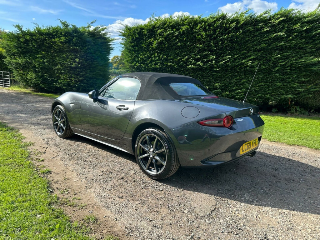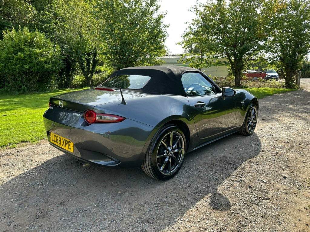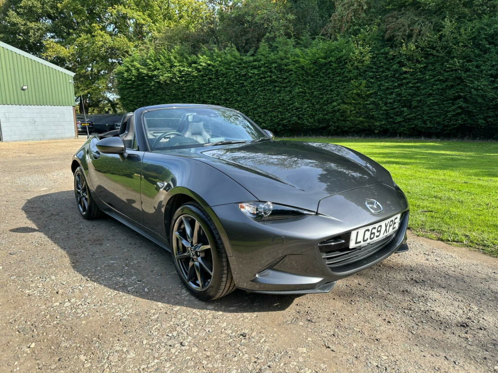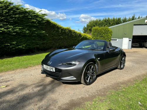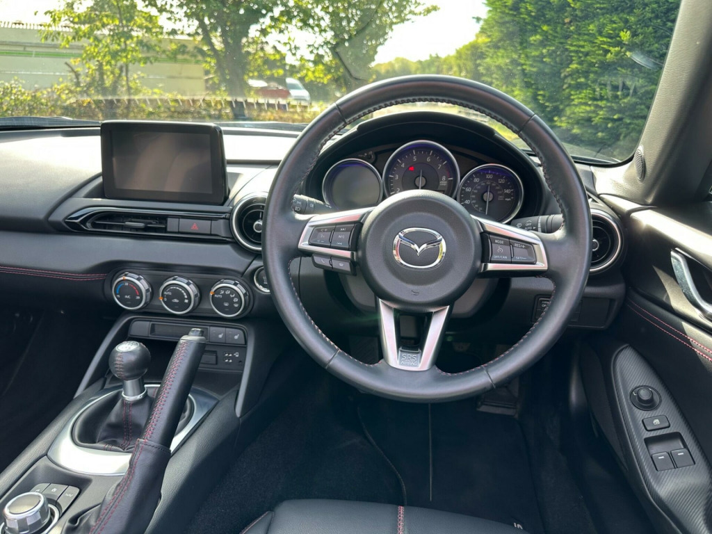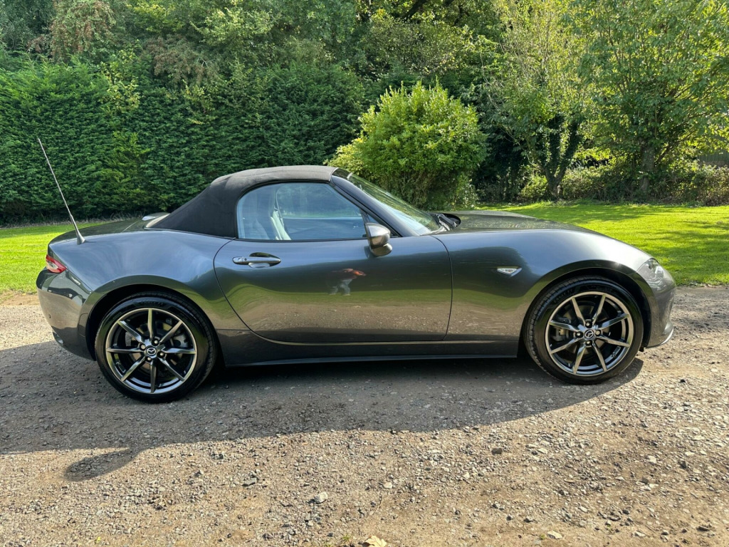 This STUNNING 1 OWNER Mazda MX-5 2.0 SKYACTIV-G Sport Nav+ Euro 6 2dr in Machine Grey metallic. The car has been meticulously cared for and is in fantastic condition. It has a Full Service History with Mazda totalling x5 Services, we have just had it Serviced and a New MOT which has NO Advisories. It has a great specification that includes Black Leather Seats, 17in Alloys, Safety Pack, Satellite Navigation, 7in Colour Touch Display, Climate Control, Cruise Control, Bluetooth, Rear Parking Sensors to name just a few. It is supplied with 2 keys, 6 Months RAC Platinum Warranty and 12 Months Breakdown Cover.NO ULEZ charge.Competitive finance packages arranged with rates starting from 9.9% APR (Subject to status).Part exchange welcome. HPI Clear. Call now to arrange a viewing. ather - black with red stitching, safety pack, 17in alloy wheels - bright, 3-stage seat heaters, 7in colour touch screen display, adjustable speed limiter, aha app and stitcher app integration, air conditioning - climate control, air conditioning dials - satin chrome, air vent surrounds - satin chrome, analogue speedometer, audio transfer from bluetooth devices, auto dimming rear view mirror, automatic passenger airbag deactivation system, auxiliary - aux - and two usb input, body coloured door mirrors, chrome meter rings, coinbox, convertible top - premium cloth soft top with heated rear window - manually operated, cruise control with manual speed adjustment, cupholder - front x2, dhs - deployable hood system, door mirrors - power operated and heated, double pinion electric power assisted steering - dp-epas, driver attention alert - daa, driver and passenger front airbags, dual exhaust system, dusk sensing automatic headlights, dynamic stability control - dsc - with traction control system - tcs, electric windows - one touch auto down, emergency tyre repair kit, engine start-stop button, fashion bar cladding, four-wheel anti-lock braking system - 4w-abs with electronic brake-force distribution - ebd, front and rear smart city brake support, fuel filler lid - body colour, gear knob - leather with chrome surround, gear shift indicator, handbrake - leather wrapped, headlights - adaptive front lighting system, headlights - coming-leaving home, headlights - led with auto headlight levelling, hill hold assist, isofix child seat anchorage - passenger seat, inner door handles - satin chrome, integrated bluetooth, interior courtesy light, interior upper door trim - exterior body colour co-ordinated, led daytime running lights, lsd - limited slip differential, lane departure warning system, multimedia commander, multimedia system, piano black fashion bars, rain-sensing front wipers, rear brake light - high mounted, rear parking sensors, remote central locking with deadlocking and remote boot release, srs - supplementary restraint system, satellite navigation system, seatbelt reminder - driver and passenger with audible warning, seatbelts - 3 point - elr - 2x with pre-tensioners, seats - drivers manual slide-recline and tilt adjustment, seats - front passenger manual slide and recline adjustment, side airbags, smart keyless entry, sports suspension, steering wheel - leather, steering wheel - mounted audio and bluetooth controls, steering wheel - tilt and telescopic adjustment, storage - rear centre box with lockable lid, sunvisors - drivers and passengers with covered vanity mirror-ticket holder, thatcham category 1 alarm and immobiliser, traffic sign recognition, trip computer, tyre pressure monitoring system, usb - ipod connectivity, windblocker