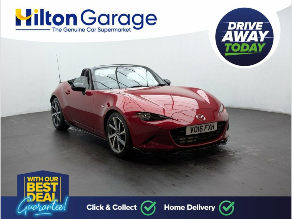 Great looking Mazda MX-5 in Red with Rear Parking Sensors - SAT NAV - Bluetooth - Heated Seats - Electrically Adjustable-Heated Door Mirrors - Cruise Control Service History: 24/04/2017 at 743, 19/04/2018 at 1k, 29/08/2020 t 7k, 23/08/2021 at 9k, 31/08/2022 at 10k, 01/09/2023 at 11k, 06/02/2025 at 13k Pure driving pleasure, this Mazda MX-5 2.0 SKYACTIV-G Sport Recaro delivers 160 PS with a slick manual gearbox. Euro 6 compliant, it features sporty Recaro seats, agile handling, and classic convertible styling—perfect for enthusiasts seeking open-top thrills, sharp performance, and head-turning design in a true driver's car. 17in Alloy Wheels - Diamond Cut, ABS - Anti Lock Braking System, Adjustable Speed Limiter, Air Conditioning - Automatic Climate Con, Air Conditioning Dials - Chrome, Analogue Speedometer, Auto Dimming Rear View Mirror, Brilliant Black Fashion Bars, Brilliant Black Rear Spoiler, Brilliant Black Sports Aero Kit, Chrome Meter Rings, Coinbox, Convertible Top - Premium Cloth Soft Top, Cruise Control with Manual Speed Adjustm, Cupholder - Front x2, Dashboard Panel - Alcantara, DHS - Deployable Hood System, Driver and Passenger Front Airbags, DSC - Dynamic Stability Control, Dusk Sensing Automatic Headlights, Electric Windows - Front, Electrically Adjustable-Heated Door Mirr, Electronic Power Assis