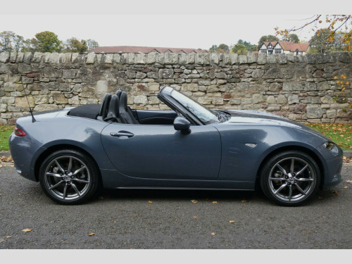 We Ae Delighted To Offer This Stunning Low Mileage Example Mazda MX5 Sport Tech Edition With A Full Service History & The Following Impressive Factory Specification. Finished In Poly Grey Metallic With Black Leather . For Further Information Or To Arrange A Viewing please Contact Andrew Or Ross You Will Not Be Disappointed. Supplied With Original Book Pack & 2 sets Of Keys. This 2021 Mazda MX-5 SKYACTIV-G Sport Tech is a truly exceptional example, boasting an incredibly low mileage of just 12,000 miles for its age. This particular model, the Sport Tech trim, is powered by a responsive 2.0 litre petrol engine and meets Euro 6 emission standards. Inside, you'll find modern convenience with Apple CarPlay and Android Auto integration, allowing seamless connection to your smartphone. Comfort is assured with climate control air conditioning, while the dusk sensing automatic headlights provide added convenience. Safety is enhanced by Blind Spot Monitoring with Rear Cross Traffic Alert and rear parking sensors, making every journey more secure.Experience the thrill of driving with this MX-5's impressive performance figures. It achieves 0-62mph in a swift 6.5 seconds, demonstrating its sporty nature. Furthermore, this vehicle offers excellent fuel economy, returning up to 41 miles per gallon, which is a strong indicator of its efficiency compared to other vehicles in its class. Its low CO2 emissions also contribute to its appeal, making it a more environmentally conscious choice.. 17in Alloy Wheels - Bright Silver, 3-Stage Seat Heaters, 7in Colour Touch Screen Display, AM-FM-DAB Radio, Air Conditioning - Climate Control, Air Vent Surrounds - Satin Chrome, Apple CarPlay and Android Auto, Auto Dimming Rear View Mirror, Automated High-Beam Assist, Automatic Passenger Airbag Deactivation System, Auxiliary - AUX - and Two USB Input, Black Cloth Soft-Top, Blind Spot Monitoring with Rear Cross Traffic Alert, Body Coloured Door Mirrors, Bumpers - Body Coloured, Cruise Control with Adjustable Speed Limiter, Cupholder - Front x2, Door Mirrors - Power Operated and Heated, Double Pinion Electric Power Assisted Steering - DP-EPAS, Driver Attention Alert - DAA, Driver and Passenger Front Airbags, Dual Exhaust System, Dusk Sensing Automatic Headlights, Dynamic Stability Control - DSC - with Traction Control System - TCS, Electric Windows - One Touch Auto Down, Emergency Tyre Repair Kit, Engine Start-Stop Button, Four-Wheel Anti-Lock Braking System - 4W-ABS with Electronic Brake-Force Distribution - EBD, Front Head Restraints, Front and Rear Smart City Brake Support, Fuel Filler Lid - Body Colour, Gear Shift - Leather-Wrapped, Gear Shift Indicator, Headlights - Adaptive Front Lighting System, Headlights - Adaptive LED, Headlights - Coming-Leaving Home, Hill Hold Assist, ISOFIX Child Seat Anchorage - Passenger Seat, Integrated Bluetooth, Integrated Navigation System with 3-Years Free European Map Updates, Interior Upper Door Trim - Exterior Body Colour Co-Ordinated, LED Daytime Running Lights, LED Indicator Lights, LSD - Limited Slip Differential, Lane Departure Warning System, Leather Effect Lower Dash Panel with Silver Stitching, Piano Black Fashion Bars, Premium BOSE Sound System, Rain-Sensing Front Wipers, Rear Brake Light - High Mounted, Rear Parking Sensors, Remote Central Locking with Deadlocking and Remote Boot Release, Reversing Camera, Scuff Plates - Black with Stainless Steel Insert, Seatbelts - 3 Point - ELR - 2x with Pre-Tensioners, Seats - Drivers Manual Slide-Recline and Tilt Adjustment, Seats - Front Passenger Manual Slide and Recline Adjustment, Seats - Sports, Service Indicator, Side Airbags, Silver Stitching on Seat Fabric - Steering Wheel - Gear Knob - Hand Brake and Door Trim, Single CD Player with 6 Speakers, Smart Keyless Entry, Sports Suspension, Steering Wheel - Leather, Steering Wheel - Mounted Audio and Bluetooth Controls, Steering Wheel - Tilt and Telescopic Adjustment, Thatcham Category 1 Alarm and Immobiliser, Traffic Sign Recognition, Trip Computer, Tyre Pressure Monitoring System, Finished In Poly Grey Metallic With Black Leather, Leather - Black with Silver Stitching.
