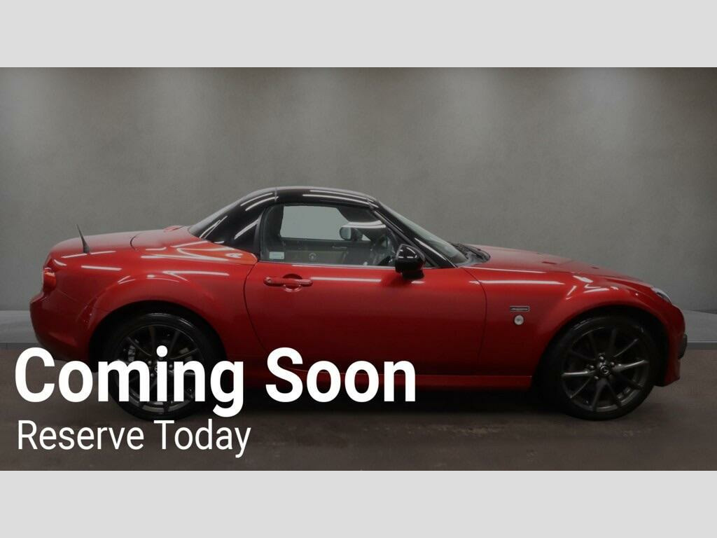 Manor Cars are proud to offer this rare and 1 owner example of the Mazda MX5. Finished In Red with a Cream Leather Interior. Complete with 2 keys, Comprehensive Service History (11 Services), as well as being in a fantastic condition inside and out. Buy with confidence from our friendly, family run business with flexible viewing times 7 days a week, please call for a viewing. All our vehicles are thoroughly checked HPi clear, complete with a certificate. Comprehensive warranty included. We offer a wide range of finance options with low rates including HP, PCP and can also cater for poor credit circumstances. All major credit/debit cards accepted, All part exchanges are welcome ather - light stone, 17in alloy wheels - dark gun metal, abs - anti lock braking system, aux socket, air conditioning - climate control, airbags - driver, airbags - front passenger, airbags - front passenger deactivation system, auto dimming rear view mirror, brilliant black fashion bars, bumpers - body coloured, cruise control, cupholders - console, dsc - dynamic stability control, deadlocking, deco panel - dark red, diffuser-style rear bumper sports trim, door handles - body coloured with brushed and polished aluminium finished covers, door mirrors - brilliant black, door pockets - front, drivers footrest, ebd - electronic brakeforce distribution, electric windows - front, electrically adjustable-heated door mirrors, emergency puncture repair kit, exterior temperature gauge, floor mats - unique 25th anniversary, front fog lights, fuel flap - remote opening, gear knob - leather with red stitching, gear shift indicator, glovebox lockable, handbrake - leather with red stitching, hardtop - brilliant black, hardtop - power retractable, head restraints - 25th anniversary logo, headlights - halogen, headlights - manual levelling, illumininated scuff plate set, integrated bluetooth system, lsd - limited slip differential, mazda advanced impact distribution and absorption system - maidas, pedals - alloy, pollen filter, power assisted steering, rds tmc traffic information, radio-cd-dvd player, rear brake light - high mounted, remote boot release, remote central locking, satellite navigation - 29 different languages, satellite navigation - 46 european country maps, satellite navigation - 50-50 split screen, satellite navigation - 6.1in high resolution touch screen, satellite navigation - detachable anti-theft panel, satellite navigation system, seat stitching - red, seatback pocket - passenger side, seatbelt reminder, seats - drivers dial reclining and height adjustment, seats - front heated - five-stage, seats - front sports, side airbags, speakers x6, sport suspension - bilstein damper, stainless steel 25th anniversary scuff plates, steering wheel - leather, steering wheel - mounted remote audio controls, steering wheel stitching - red, storage - rear centre box with lockable lid, tcs - traction control system, tailpipes - dual chrome, thatcham category 1 alarm and immobiliser, trip computer, usb and aux connection, unique exterior 25th anniversary badging with unique numbering, windblocker - standard