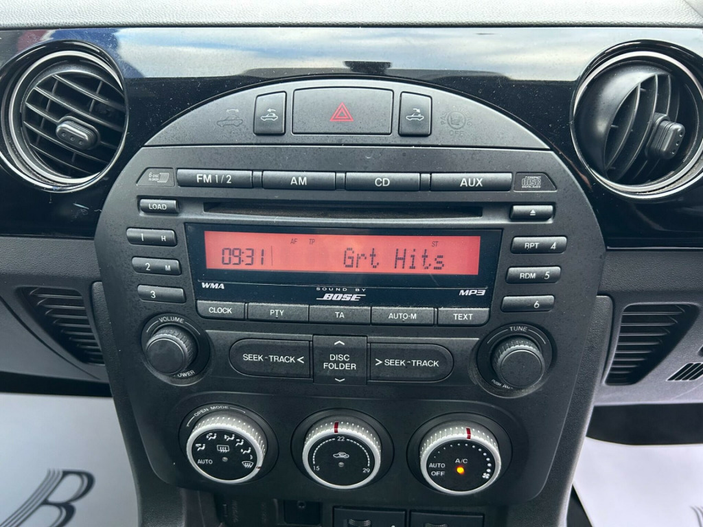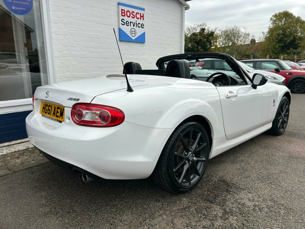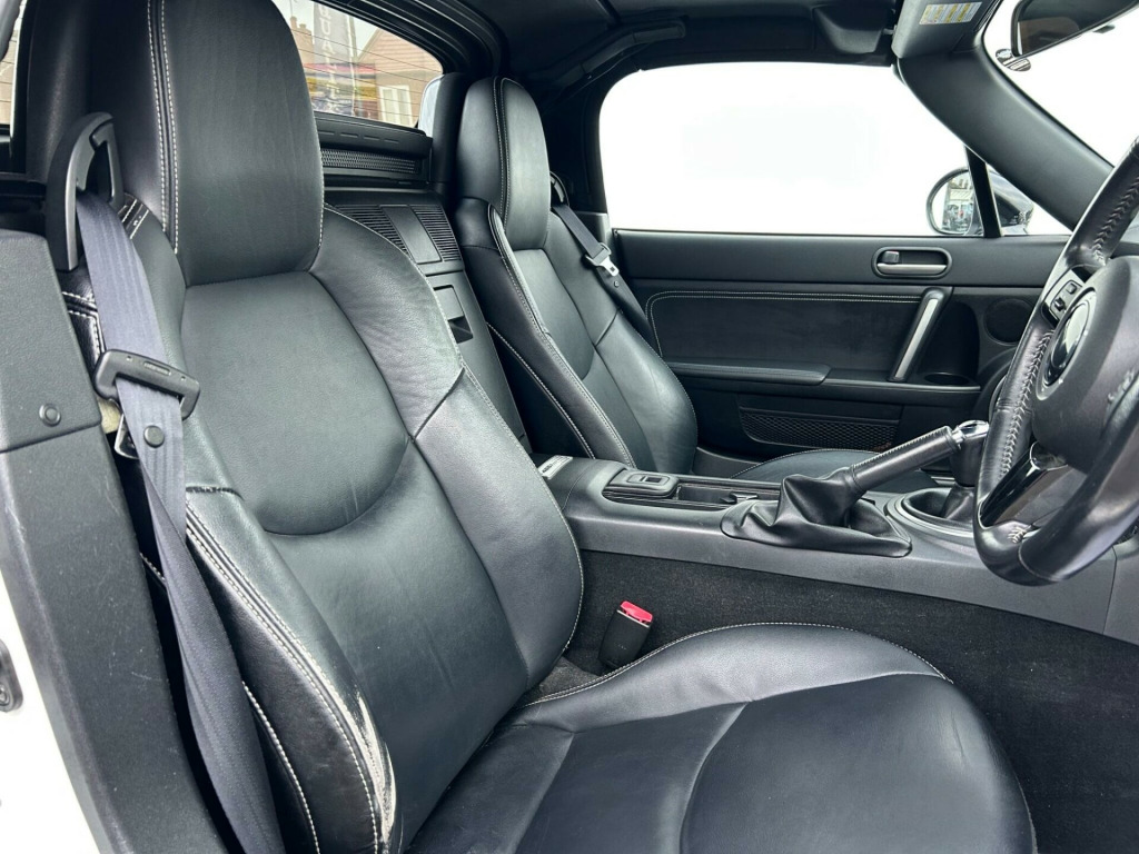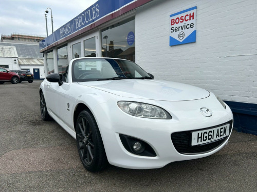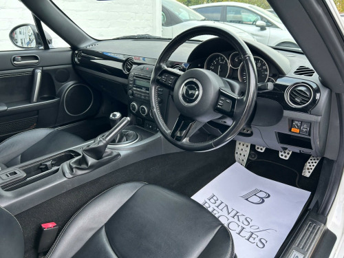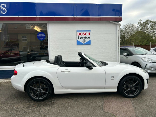 This 2011 Mazda MX-5 i Sport Black is a rare find, boasting a single owner from new and a full service history. Under the bonnet, you'll find a responsive 2.0L petrol engine, paired with a clear vehicle history check and an MOT valid until September 2026. The last service was completed at 72,000 miles, and it comes with a 6 month warranty for your peace of mind. Inside, enjoy the comfort of front heated seats and climate control air conditioning, all while listening to your favourite music through the BOSE premium branded sound system with 6CD changer and additional speaker. The integrated Bluetooth system allows for seamless connectivity on the go.This particular Sport Black trim level offers a compelling package, highlighted by its low insurance group, making it an economical choice. The combination of a single owner, comprehensive service history, and a clear vehicle check demonstrates exceptional provenance, setting it apart from other vehicles on the market. This Mazda MX-5 is ready to provide an enjoyable driving experience for its next owner.RESERVE ONLINE TODAY + ULEZ COMPLIANT +0% DEPOSIT FINANCE AVAILABLE + PLEASE MAKE YOUR APPOINTMENT TO VIEW TODAY + Our family owned business was founded in 1992 and our aim is to offer a friendly and efficient service and to make our customer's buying experience as easy and enjoyable as possible. Our experienced staff will offer advice, if required, to help ensure our customers find the most suitable car to match their motoring needs. Part Exchange welcome. Although every effort is made to ensure the accuracy of these details please contact the dealer to verify any particular details prior to making a purchase. + All our cars are HPi checked to offer our customers peace of mind and therefore ensuring there is no outstanding finance or insurance write offs listed against them+ *Finance subject to status+ Third party finance agreements attract a £300 Administration fee+. 17in Alloy Wheels, ABS - Anti Lock Braking System, Air Conditioning - Climate Control, Airbags - Driver, Airbags - Front Passenger, Airbags - Front Passenger Deactivation System, Auxillary Jack for Connecting MP3 Players, BOSE - 6CD and Additional Speaker, Bumpers - Body Coloured, Central Locking - Remote with Deadlocking, Cruise Control, DSC - Dynamic Stability Control, Door Handles - Body Coloured, EBA - Emergency Brake Assist, EBD - Electronic Brakeforce Distribution, ESP - Electronic Stability Control, Electric Windows - Front, Electrically Adjustable-Heated Door Mirrors, Front Fog Lights, Gear Knob - Leather, Handbrake - Leather Wrapped, Integrated Bluetooth System, LSD - Limited Slip Differential, Power Steering, Radio-CD, Remote Boot Release, Roof - Black, Scuff Plates - Stainless Steel, Seats - Drivers Manual Height Adjustment, Seats - Front Heated, Side Airbags, Sport Suspension - Bilstein Damper, Steering Wheel - Leather, Steering Wheel - Mounted Remote Audio Controls, TCS - Traction Control System, Thatcham Category 1 Alarm and Immobiliser, Crystal White, Leather - Black. Full service history