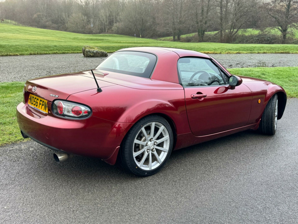 We are pleased to be presenting this 2006 Mazda MX-5 2.0i Sport Euro 4 2dr, finished in red and having covered 70,000 miles. This example has had 7 owners and benefits from consistent service and maintenance history throughout its life. It is ULEZ compliant.This is the 2.0 Sport, the top specification for this generation, and comes equipped with heated seats, air conditioning, Bose audio system, xenon headlights, limited slip differential and an electric folding hard top.The car has been tastefully modified, featuring Bilstein front and rear dampers with springs and a Cobra rear backbox, enhancing the driving experience without detracting from usability.A really clean example throughout.As with all our vehicles, this Mazda has been treated to a multi-stage valet using the best products Auto Glym have to offer. Every car we handle receives, at minimum, a service as part of our pre-sale preparation. Supplied with 12 months MOT without advisory, our complimentary 3-month warranty, 12 months free AA breakdown cover, and 2 keys.Please do not hesitate to get in touch via Text, Call or Email at any time to arrange a viewing and test drive. Viewing available by appointment only. To find out more about us, head to WWW.QWERTY-AUTOMOTIVE.CO.UK. Whilst every effort has been made to ensure the accuracy of the above information, sometimes errors may occur please check with a salesperson. in alloy wheels, 6 speakers, abs - anti lock braking system, airbags - driver, airbags - front passenger, central locking - remote with deadlocking, cupholders - console, dsc - dynamic stability control, ebd - electronic brakeforce distribution, electric windows - front, front fog lights, lsd - limited slip differential, power assisted steering, seats - front heated, single play cd & radio, steering wheel - leather, steering wheel - mounted remote audio controls, tcs - traction control system, ipod connectivity