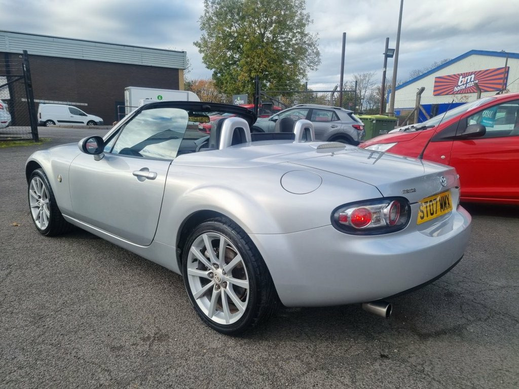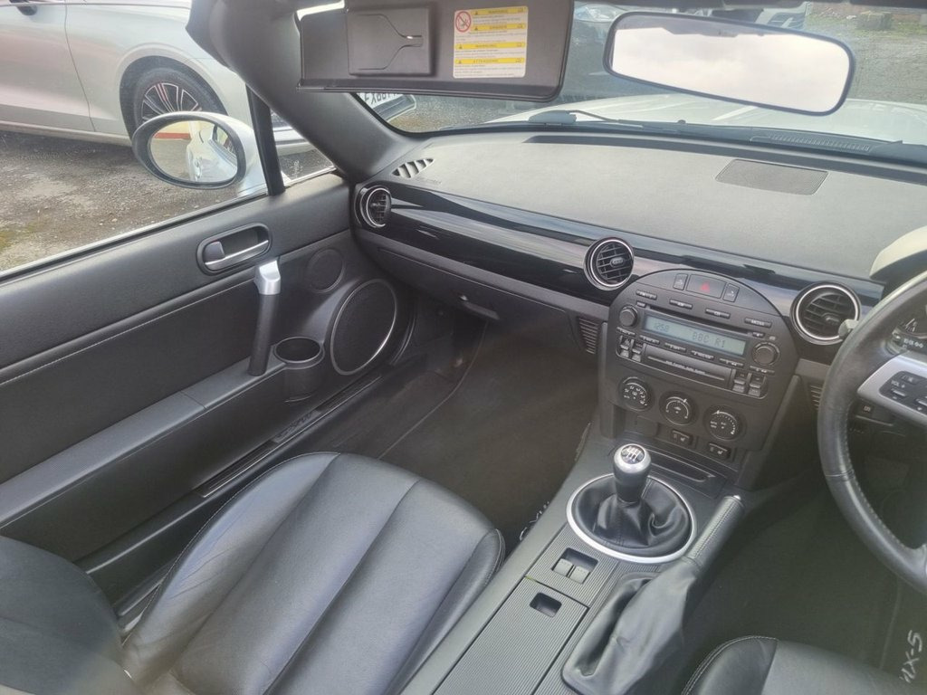 Discover this 2007 Mazda MX-5 i Sport, a truly engaging driving experience. This particular model boasts a responsive 2.0L petrol engine, paired with a smooth manual transmission, offering a pure connection to the road. Inside, you'll find comfort and convenience with its climate control air conditioning and front heated seats, ensuring an enjoyable drive whatever the weather. This Mazda MX-5 i Sport is designed to be economical and accessible. With an impressive fuel economy of 35 mpg, it offers a cost effective way to enjoy your journeys. Furthermore, its low CO2 emissions and placement in a low insurance group highlight its advantages over similar vehicles, making it a sensible choice for many drivers. All our cars come with a Pre-delivery service,a full 12 months mot and a Comprehensive 3 month/3000 mile mechanical breakdown warranty 17in Alloy Wheels, 6 Speakers, ABS - Anti Lock Braking System, Air Conditioning - Climate Control, Airbags - Driver, Airbags - Front Passenger, Central Locking - Remote with Deadlockin, Cupholders - Console, DSC - Dynamic Stability Control, EBD - Electronic Brakeforce Distribution, Electric Windows - Front, Front Fog Lights, iPod Connectivity, LSD - Limited Slip Differential, Power Assisted Steering, Seats - Front Heated, Single play CD & Radio, Steering Wheel - Leather, Steering Wheel - Mounted Remote Audio Co, SunLight Silver, TCS - Traction Control System