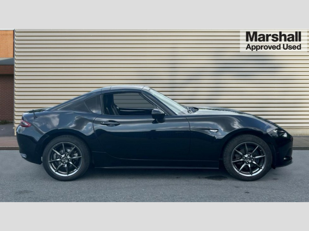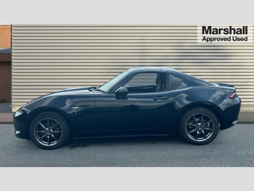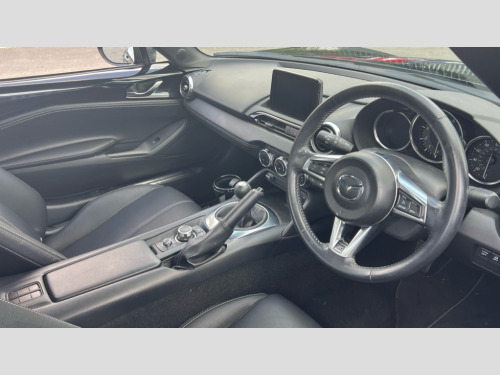 Mazda MX-5 1.5 [132] Sport 2dr 7" colour touch screen with Mazda connect infotainment, Aha and stitcher app, Analogue speedometer, Apple car play/Android Auto, Cruise control + speed limiter, Driver alert system, Electronic odometer, Engine start/stop button, Hands free phone preparation, Integrated bluetooth including internet app integration, Integrated navigation system, Lane departure warning system, PAS, Rear parking sensor, Remote boot release, Service indicator, Tachometer, Traffic sign recognition, Trip computer, Water temperature gauge, I-ELOOP, i-stop, 2 USB/aux input socket, Premium Bose sound system with 9 speakers with 2 in each front headrest, AM/FM/DAB radio and single CD/MP3, Steering wheel mounted audio controls, Adaptive front lighting system, Auto dimming rear view mirror, Automatic headlamp levelling, Black scuff plates with stainless steel insert, Body colour bumpers, Body colour co ordinated interior upper door trim, Body coloured electric/heated door mirrors, Coming/leaving home lighting function, Dual exhaust pipes, Dusk sensitive headlamps, Electric front windows/one touch facility, Electrically operated body colour retractable hard top with heated rear glass window, High mounted rear brake light with Black coloured cover, LED 3rd brake light, LED daytime running lights, LED Headlights, LED indicator lights, LED rear lights, Piano Black fashion bars, Rain sensing front wipers, 12V socket, Centre console storage box, Chrome Air conditioning dials, Climate control air conditioning, Coin Box, Driver/ passenger seat manual slide, recline and tilt adjustment, Driver/passenger sunvisors with ticket holders + vanity mirrors, Front centre armrest, Front head restraints, Gear shift indicator, Heated front seats, in 3 heat levels, ISOFIX front passenger seat child seat compliance, Leather gear knob, Leather handbrake lever, Leather steering wheel, Lockable rear storage box, Perforated leather upholstery, Side door in Black leatherette with Red stitching, Silver stitching on fabric seat, steering wheel, gear knob, hand brake and door trim, Sports seats, Tilt/telescopic steering column, Two cupholders, Windblocker, 3 point ELR front seatbelts with pretensioners, ABS+Electronic Brake force Distribution, Deployable Hood System (DHS), Driver and front passenger airbags, DSTC-Dynamic Stability and Traction Control, Fasten seatbelt reminder, Hill hold assist, Passenger airbag deactivate switch, Passenger airbag deactivation system, Rear smart city brake support, Side airbags, Smart City Brake Support - SCBS, Tyre pressure monitor, Remote central door locking, Smart keyless entry, Superlocking, Thatcham category 1 alarm + immobiliser, Chrome air vent surrounds, Chrome meter rings, Leather effect lower dash panel with silver stitching, 16" Bright finish alloy wheels, Tyre puncture repair kit