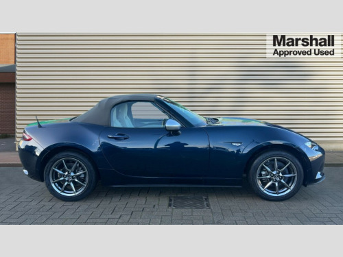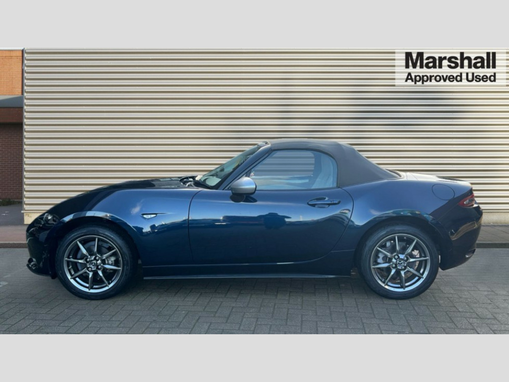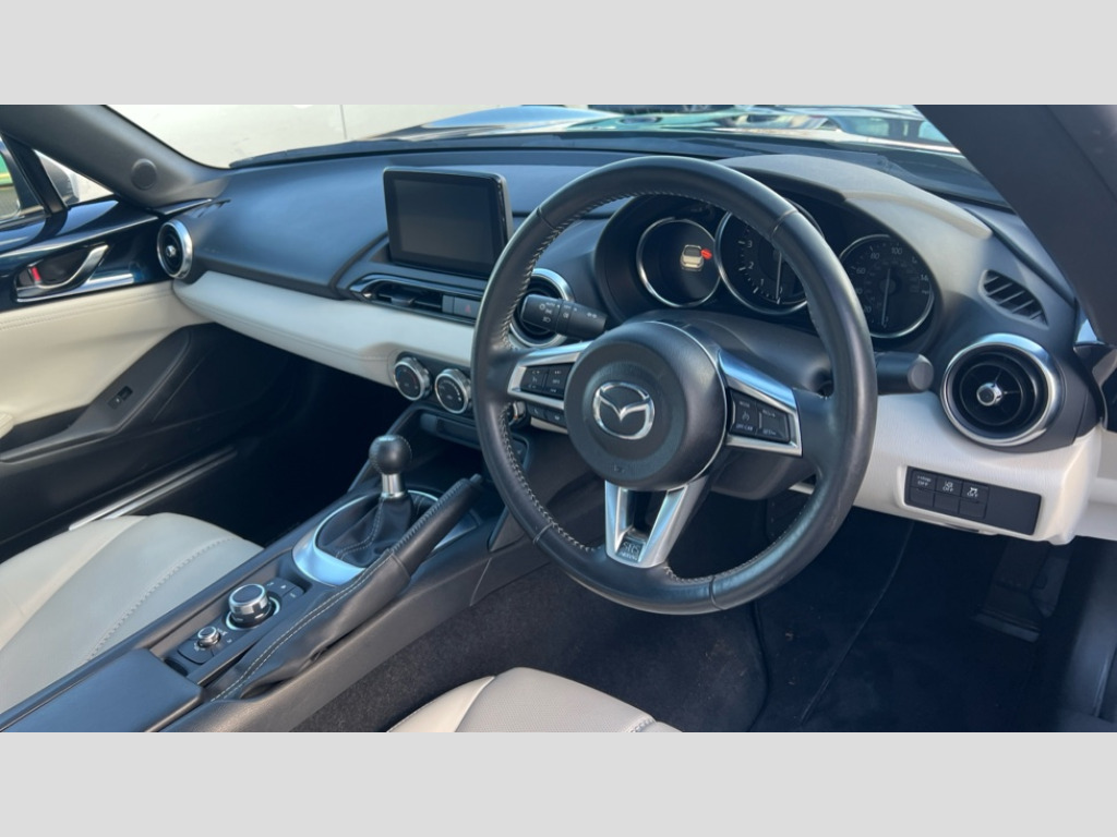 Mazda MX-5 1.5 [132] Sport Venture 2dr 7" colour touch screen with Mazda connect infotainment, Aha and stitcher app, Analogue speedometer, Apple car play/Android Auto, Cruise control with manual speed adjustment and adjustable speed limiter, Driver alert system, Electronic odometer, Emergency stop signalling system, Engine start/stop button, Hands free phone preparation, Integrated bluetooth with audio transfer from Bluetooth devices, Integrated navigation system, Lane departure warning system, Multi dot display tachometer and electric odometer, PAS, Rear parking sensor, Remote boot release, Service indicator, Traffic sign recognition, Trip computer, Water temperature gauge, I-ELOOP, i-stop, 2 USB/aux input socket, Integrated Mazda navigation system with 3 years free European map updates, Multimedia Commander including separate volume dial, Premium Bose sound system with 9 speakers with 2 in each front headrest, AM/FM/DAB radio and single CD/MP3, Steering wheel mounted audio/bluetooth controls, Adaptive front lighting system, Auto dimming rear view mirror, Automatic headlamp levelling, Black scuff plates with stainless steel insert, Body colour bumpers, Body colour co ordinated interior upper door trim, Coming/leaving home lighting function, Dual exhaust pipes, Dusk sensitive headlamps, Electric Front windows with one touch up/down facility, Heated glass window and soft top cover, High intensity silver electric/heated door mirrors, High Intensity Silver fashion bars, High mounted rear brake light with Black coloured cover, LED 3rd brake light, LED daytime running lights, LED Headlights, LED indicator lights, LED rear lights, Mica paint, Premium grey soft roof top, Rain sensing front wipers, Rear combination lamp, Rear fog lights, 12V socket, Black interior carpeting, Black plastic wind blocker, Centre console coin box, Centre console storage box, Chrome Air conditioning dials, Climate control air conditioning, Driver and front passenger sunvisors with covered vanity mirror and driver ticket holder, Driver/ passenger seat manual slide, recline and tilt adjustment, Front centre armrest, Front head restraints, Gear shift indicator, Heated front seats, in 3 heat levels, Interior courtesy light, Interior storage located behind seats, ISOFIX front passenger seat child seat compliance, Leather gear knob, Leather handbrake lever, Leather steering wheel, Lockable rear centre box with lid, Luggage compartment light, Perforated nappa leather upholstery, Sports seats, Tilt/height adjustable steering wheel, Two cupholders, 3 point ELR front seatbelts with pretensioners, ABS+Electronic Brake force Distribution, Deployable Hood System (DHS), Driver and front passenger airbags, Driver and passenger seatbelt reminder audible warning, DSTC-Dynamic Stability and Traction Control, Front side airbags, Hill hold assist, Manual passenger airbag deactivation function, Passenger airbag deactivate switch, Rear smart city brake support, Smart City Brake Support - SCBS, Tyre pressure monitor, Remote central door locking, Smart keyless entry, Superlocking, Thatcham category 1 alarm + immobiliser, Chrome air vent surrounds, Chrome meter rings, Dashboard panel - vinyl leather Light Stone, Exterior body colour co-ordinated upper door panel trim with Light Stone vinyl, 16" Bright Silver alloy wheels, Tyre puncture repair kit