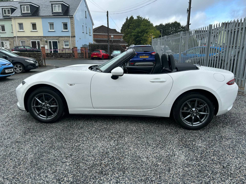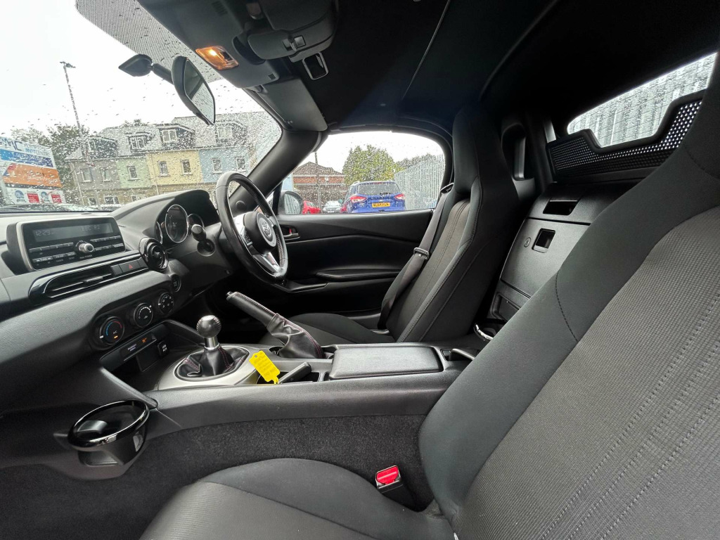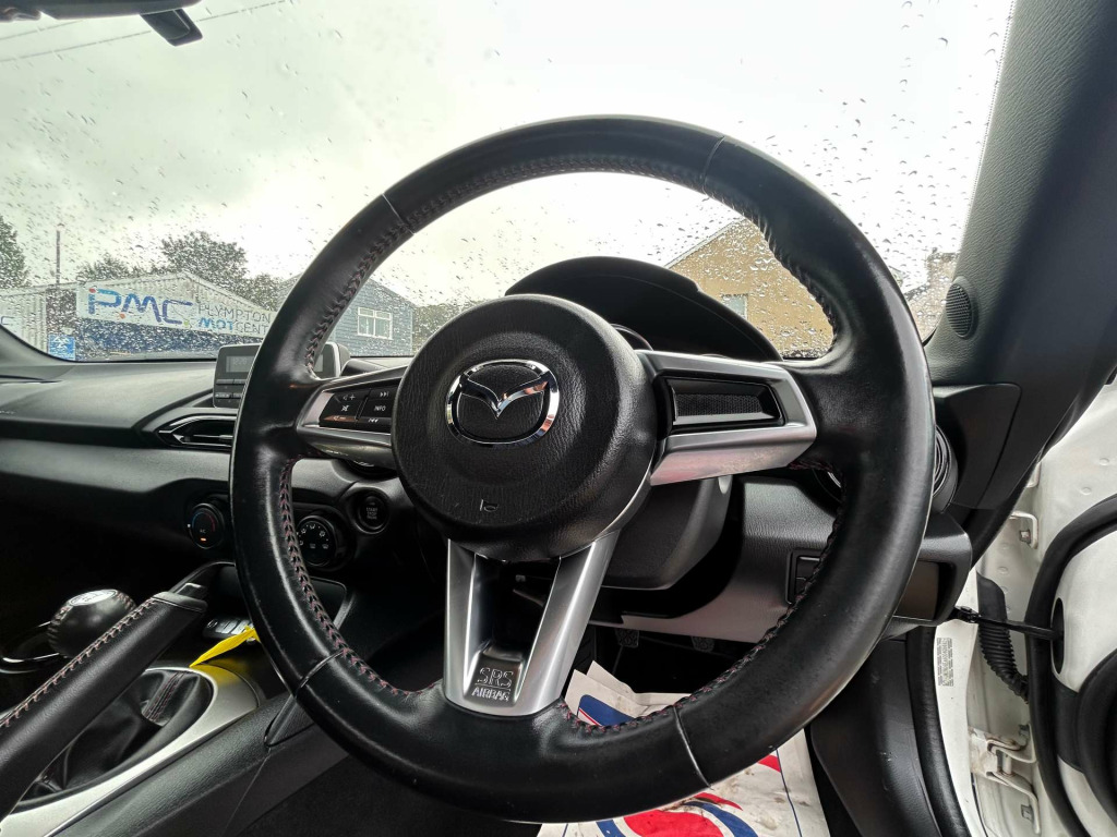 Introducing the Mazda Mx-5 1.5 MX-5 SE+ 2dr - the epitome of driving pleasure and timeless style. With just 19,000 miles on the clock and only two previous owners, this stunning roadster is ready to deliver exhilarating performance and unmatched driving dynamics.Finished in a pristine Arctic White, the Mazda Mx-5 is a head-turner wherever it goes. Its sleek lines and sporty silhouette are complemented by a host of premium extras, ensuring you enjoy every journey in comfort and style.Slide into the driver's seat and experience the perfect blend of precision engineering and innovative technology. The Mazda Mx-5 is renowned for its agile handling and responsive steering, making it the ideal companion for both city streets and winding country roads.Don't miss your chance to own this iconic sports car. The Mazda Mx-5 1.5 MX-5 SE+ 2dr is more than just a vehicle; it's a statement of passion and performance. Visit us today and take the first step towards owning a piece of motoring excellence. Your dream drive awaits! We are car finance specialists and a multi award winning used car dealer, we have our own on site dedicated finance expert whatever your credit history, to apply online please go to http://www.plymptoncarcentre.co.uk/finance.php. Over 100 cars and vans available. To arrange a viewing please call us, WhatsApp or Messenger. We also buy cars phone for cash, please call for an instant price todayawardwinningdealerPlymouthautotraderhighlyrated ? pers - front adjustable speed with intermittent, windblocker, upper door trim - black, usb - ipod connectivity, tyre pressure monitoring system, trip computer, thatcham category 1 alarm and immobiliser, sunvisors - drivers and passengers with covered vanity mirror-ticket holder, storage - rear centre box with lockable lid, steering wheel - tilt and telescopic adjustment, steering wheel - mounted audio controls, steering wheel - leather, convertible top - premium cloth soft top with heated rear window - manually operated, engine start-stop button, emergency tyre repair kit, electric windows - one touch auto down, dynamic stability control - dsc - with traction control system - tcs, dual exhaust system, driver and passenger front airbags, double pinion electric power assisted steering - dp-epas, door mirrors - power operated and heated, dhs - deployable hood system, cupholder - front x1, fashion bar cladding, coinbox, chrome meter rings, body coloured door mirrors, black fashion bars, auxiliary - aux - and usb input, automatic passenger airbag deactivation system, analogue speedometer, air vent surrounds - black, air conditioning dials - black, air conditioning - manual, inner door handles - satin silver, side airbags, seats - front passenger manual slide and recline adjustment, seats - drivers manual slide-recline and tilt adjustment, seatbelts - 3 point - elr - 2x with pre-tensioners, seatbelt reminder - driver and passenger with audible warning, srs - supplementary restraint system, remote central locking with deadlocking and remote boot release, rear brake light - high mounted, multimedia system, interior courtesy light, 16in alloy wheels - silver, isofix child seat anchorage - passenger seat, hill hold assist, headlights - led with auto headlight levelling, headlights - coming-leaving home, handbrake - leather wrapped, halogen daytime running lights, gear shift indicator, gear knob - leather with chrome surround, fuel filler lid - body colour, four-wheel anti-lock braking system - 4w-abs with electronic brake-force distribution - ebd