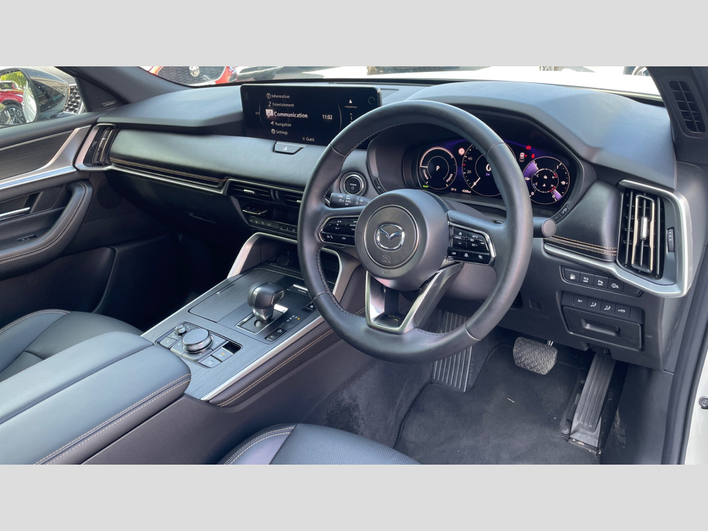 Mazda CX-60 2.5 PHEV Homura Plus 5dr Auto, 5 Doors, Automatic, Estate, Hybrid registered in 2025 ,White ,11200 miles. can be purchased from your local dealer regardless of their physical stock location. Free UK Mainland Delivery on ALL New and Used