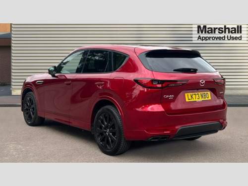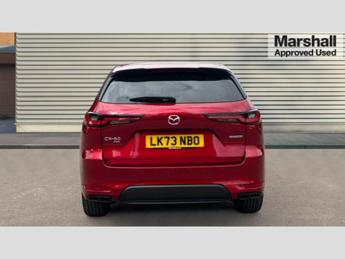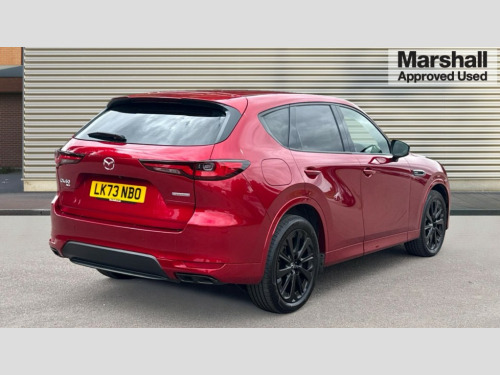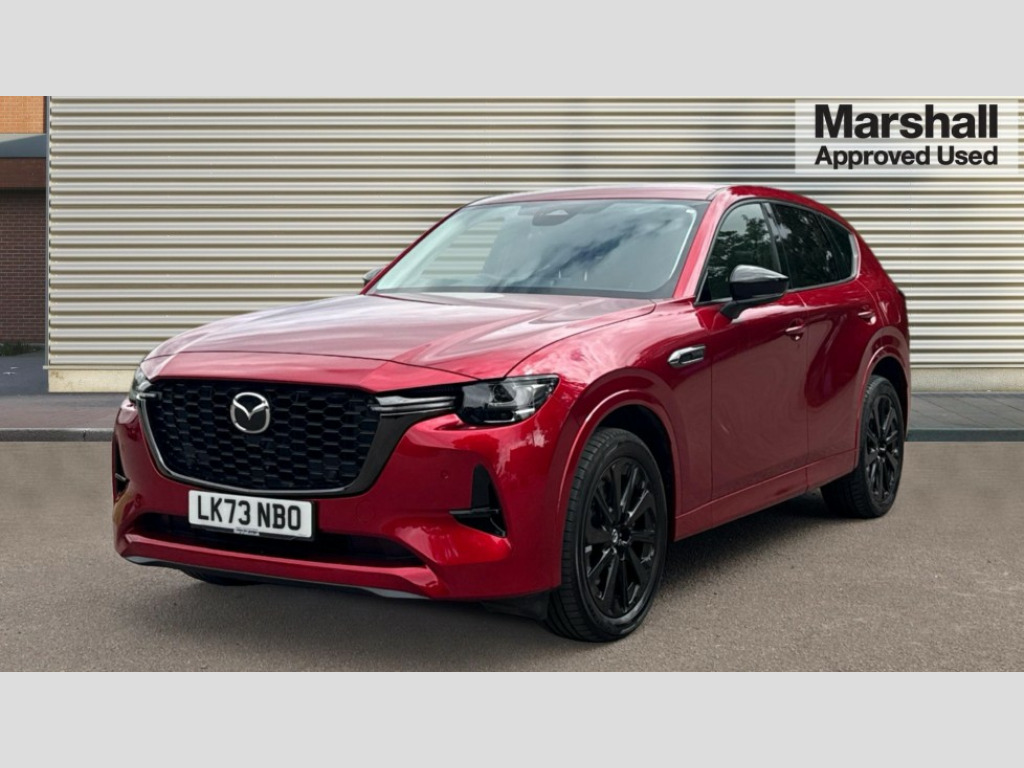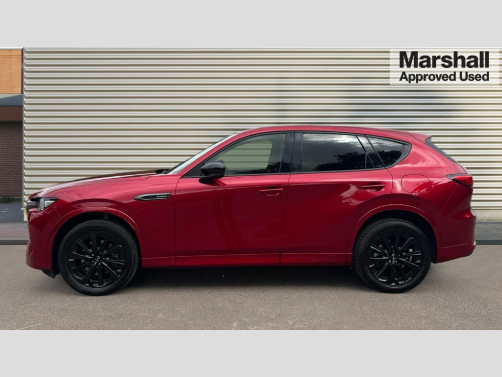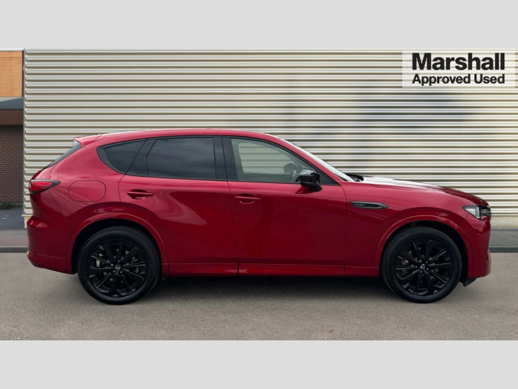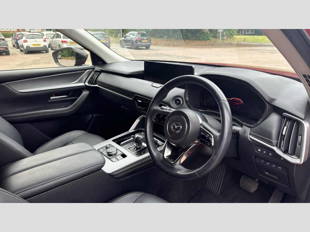 Mazda Cx-60 2.5 PHEV Homura 5dr Auto Emergency lane keeping with blind spot assist, Low washer fluid warning light, 12.3" Colour entertainment centre display with mazda connect infotainment, 12.3" TFT Colour display, Adjustable speed limiter, Black faux leather vinyl dashboard with titanium piping, Blind spot assist, Blind spot monitoring with rear cross traffic alert, Distance alert system, Driver attention alert system, Driver Monitoring with personal identification, E-call with GPS, Emergency stop signalling system, Exit warning function, Front and rear parking sensors, Ingress / Egress support and automatic driver position guide, Integrated bluetooth, Intelligent speed assist, Kinematic posture control, Lane keep assist system (LAS) with Lane departure warning system (LDWS), Mazda Driver Personalisation System, Mazda Navigation System with european mapping, Multimedia Commander, PAS, Power lift gate with handsfree function, Power start/stop button, Reversing camera with static guide lines, Speed alert, Traffic sign recognition, Trip computer, Windscreen projected colour active driving display, Wireless apple car play/android Auto, Type 2 Mode 2 cable for AC charging via UK 3-pin plug, 7.2 kw On board Charger, Mi-Drive (Normal, Sport, Off-road, Towing and EV mode), Paddle shift, Type 2 Mode 3 cable for AC charging via home or public charge points, AM/FM and DAB radio, Bose surround sound system with 12 Speaker, Bose center point, Bass match and audio pilot technology, Steering wheel mounted audio/bluetooth controls, USB-C inputs (x2 front and x2 rear), Auto dimming driver's door mirror, Automatic headlight levelling, B-pillar and C-pillar garnishes in gloss black finish, Body colour roof spoiler, Body coloured bumpers, Body coloured wheel arch and side mouldings, Coming/leaving home lighting function, Dark plated headlight lense, Dark plating finish signature wing in front grille, Dark plating front side garnish, Differentiated front bumper design to accentuate the intake, Dusk sensing headlights, Electric front/rear windows with one touch auto up/down, Electrically adjustable, heated auto power folding door mirrors with memory, Frameless auto dimming interior rear view mirror, Front kodo turn signal, Front wiper de-icer, Gloss black door mirrors, Headlight washers, High beam control, Honeycomb radiator grille in gloss black, LED 3rd brake light, LED rear signature combination lamps, Rain sensing front wipers with adjustable sensitivity and speed, Rear side wing doors, Rear wiper, Roof pillars and roof lining finished in lighter colour to soften the overall look, Signature LED daytime running lights, Silver decoration panel, 12v power outlet - front, 12V socket in boot, 3 height adjustable rear headrests, 3 seat bench in 2nd row, 40/20/40 split folding rear seats with quick levers in the boot, Ambient lighting, Cargo net, Chrome interior trim accents with steering wheel centre bezel, surround of engine start / stop button and glove box handle, Door panel trim vinyl leather with armrest, Driver and front passenger two rear grab handles with rear coat hooks, Driver and front passenger visors with covered vanity mirror and driver ticket holder, Driver seat electric tilt, slide, recline, height and lumbar adjustment, Driver, front passenger and two rear door pockets, Driver/passenger front seatback pockets, Dual zone climate control air conditioning with rear air vents, Electric telescopic and tilt adjustment steering wheel, Folding rear centre armrest with two cup holders, Front centre storage with two cupholders, Front down lamp with front and rear foot lamps, Front headrests, Front passengers seat electric slide, recline, height and lumbar adjustment, Front seat ventilation with 3-stage setting, Glovebox illumination, Heated front seats with 3 stage setting, Heated leather wrapped steering wheel, Heated outer rear seats with 3-stage setting, ISOFIX child seat anchorage points attached on outer rear seats, Karakuri tonneau cover, Leather upholstery, Leather wrapped gear shift knob, LED illumination luggage compartment, Practical and spacious front centre armrest storage, Rear seat recline function for rear passenger comfort, Remote fold down rear seats, Roof mounted sunglasses holder, Single front passenger seat, 3 point ELR front seat belts x2 with pretensioners, 3 point ELR rear seat belts, Active bonnet, Anti-lock braking system (ABS), Drivers knee airbag, DSC - Dynamic Stability Control, Electronic parking brake with auto disengage function and auto hold function, Front and rear curtain airbags, Front dual stage driver and single stage front passenger airbags, Front passenger airbag cut-off switch, Front side airbags, Front smart city brake support, Hill decent control, Hill launch assist, Manual rear child locks, Seatbelt reminder for driver/front passenger and rear seats, Traction control, Tyre pressure monitoring system (TPMS), Remote central locking with deadlocking and automatic door lock when driving, Smart keyless entry, Thatcham accredited alarm and immobiliser, Black centre console panel, Dashboard panel - Black Vinyl, 20" Black metallic alloy wheels, Emergency tyre repair kit