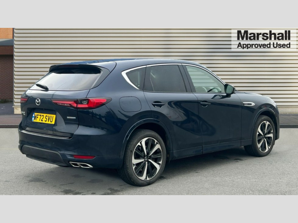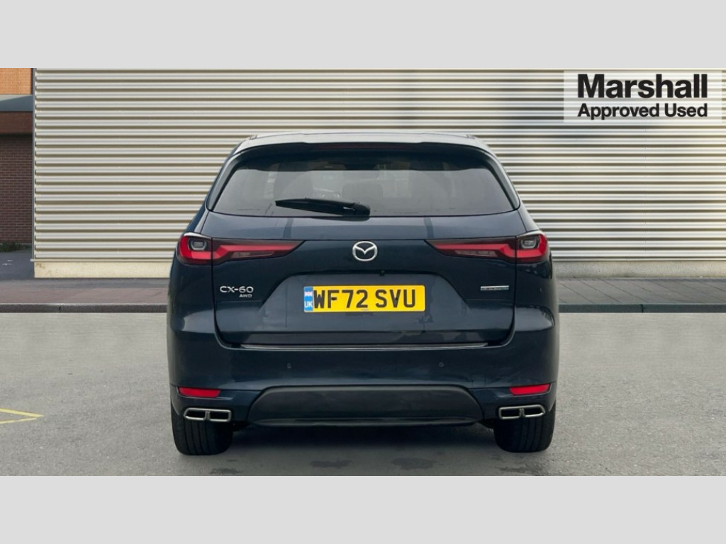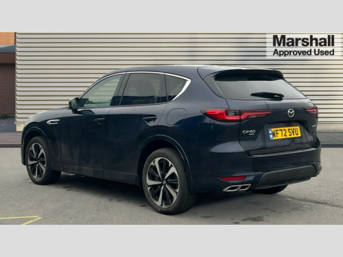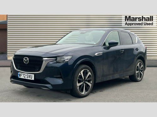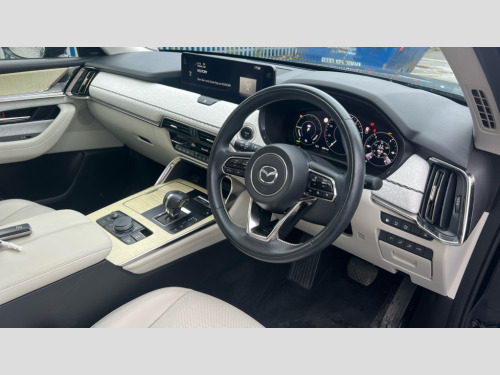 Mazda Cx-60 2.5 PHEV Takumi 5dr Auto Emergency lane keeping with blind spot assist, Low washer fluid warning light, 12.3" TFT Colour display, Apple car play/Android Auto, Blind spot monitoring with rear cross traffic alert, Dashboard leather with feature stitching, Driver attention alert system, Driver Monitoring with personal identification, E-call with GPS, Emergency stop signalling system, Exit warning function, Front and rear parking sensors, Ingress / Egress support and automatic driver position guide, Integrated bluetooth, Intelligent speed assist, Lane keep assist system (LAS) with Lane departure warning system (LDWS), Mazda Driver Personalisation System, Mazda Navigation System with european mapping, Multimedia Commander, PAS, Power lift gate with handsfree function, Power start/stop button, Traffic sign recognition, Trip computer, Windscreen projected colour active driving display, Type 2 Mode 2 cable for AC charging via UK 3-pin plug, 7.2 kw On board Charger, Mi-Drive (Normal, Sport, Off-road, Towing and EV mode), Paddle shift, Type 2 Mode 3 cable for AC charging via home or public charge points, Bose surround sound system with 12 Speaker, Bose center point, Bass match and audio pilot technology, Steering wheel mounted audio/bluetooth controls, USB-C inputs (x2 front and x2 rear), Auto dimming driver's door mirror, B-pillar and C-pillar garnishes in gloss black finish, Body colour roof spoiler, Body coloured bumpers, Body coloured door mirrors, Body coloured wheel arch and side mouldings, Bright decoration panel, Chrome finish signature wing in front grille, Chrome headlight lense, Chrome plated signature wing grille treatment and side window surround, Chrome plating front side garnish, Chrome side window surrounds, Coming/leaving home lighting function, Dusk sensing headlights, Electric front/rear windows with one touch auto up/down, Electric panoramic sunroof, Electrically adjustable, heated auto power folding door mirrors with memory, Frameless auto dimming interior rear view mirror, Front wiper de-icer, Gloss black bar type front grille, Gloss black bar type radiator grille design, Headlight washers, High beam control, LED 3rd brake light, LED auto headlight levelling, LED daytime running lights, LED rear signature combination lamps, Rain sensing front wipers with adjustable sensitivity and speed, Rear side wing doors, Rear wiper, 12v electrical power outlet, 12v Electrical power outlet located in center console, 3 height adjustable rear headrests, 3 seat bench in 2nd row, 40/20/40 split folding rear seats with quick levers in the boot, Adjustable headrests, Ambient lighting, Cargo net, Chrome interior trim accents with steering wheel centre bezel, surround of engine start / stop button and glove box handle, Driver and front passenger two rear grab handles with rear coat hooks, Driver and front passenger visors with covered vanity mirror and driver ticket holder, Driver seat electric tilt, slide, recline, height and lumbar adjustment, Driver, front passenger and two rear door pockets, Driver/passenger front seatback pockets, Dual zone climate control air conditioning with rear air vents, Electric telescopic and tilt adjustment steering wheel, Folding rear centre armrest with two cup holders, Front down lamp with front and rear foot lamps, Front passengers seat electric slide, recline, height and lumbar adjustment, Front seat ventilation with 3-stage setting, Glovebox illumination, Heated front seats with 3 stage setting, Heated leather wrapped steering wheel, Heated outer rear seats with 3-stage setting, ISOFIX child seat anchorage points attached on outer rear seats, Karakuri tonneau cover, Leather wrapped gear shift knob, LED illumination luggage compartment, Nappa leather upholstery, Practical and spacious front centre armrest storage, Rear seat recline function for rear passenger comfort, Remote fold down rear seats, Roof mounted sunglasses holder, Single front passenger seat, 3 point ELR front seat belts x2 with pretensioners, 3 point ELR rear seat belts, Anti-lock braking system (ABS), Drivers knee airbag, DSC - Dynamic Stability Control, Electronic parking brake with auto disengage function and auto hold function, Front and rear curtain airbags, Front dual stage driver and single stage front passenger airbags, Front passenger airbag cut-off switch, Front side airbags, Front smart city brake support, Hill decent control, Hill launch assist, Manual rear child locks, Seatbelt reminder for driver/front passenger and rear seats, Traction control, Tyre pressure monitoring system (TPMS), Remote central locking with deadlocking and automatic door lock when driving, Smart keyless entry, Thatcham accredited alarm and immobiliser, Dashboard panel cloth with detailed stitching, Maple wood trim, Vinyl leather door panel trim, White maple wood centre console panel, 20" Black metallic mechined alloy wheels, Emergency tyre repair kit