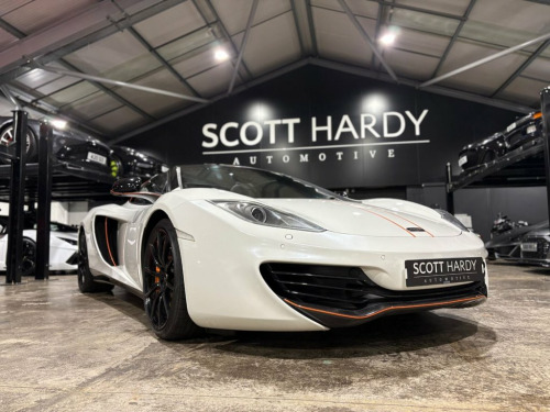 A stunning example of McLaren's open-top supercar, finished in the rare Elite Pearl White. This MP4-12C Spider combines breathtaking performance with everyday usability. Powered by a 3.8L Twin-Turbo V8 (625PS / 616bhp) and paired with a 7-speed SSG dual-clutch, it accelerates 0–60 mph in approx. 3.1s with a top speed of 204 mph. Key features include: Retractable hard-top roof Carbon fibre MonoCell chassis Adaptive handling (Normal/Sport/Track) Meridian premium audio & McLaren IRIS infotainment Navigation & Bluetooth connectivity Dual-zone climate control Forged alloy wheels & carbon ceramic brakes Presented in excellent condition with clean interior, pristine exterior, and a smooth, responsive drivetrain. Drives exactly as a McLaren should—fast, agile, and thrilling.