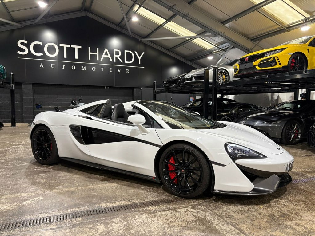Scott Hardy automotive are proud to present ths stunning MCLAREN 570s in Silica metallic white. Experience the thrill of open-air performance redefined. The McLaren 570S Spider, cloaked in pristine Silica White, is a masterclass in aerodynamic artistry and visceral engineering. MSO Carbon Fibre Rear Spoiler – Sculpted for downforce, styled for dominance. Carbon Fibre Interior Accents Precision-crafted for a cockpit that echoes motorsport DNA. Alcantara steering wheel where tactile luxury meets razor-sharp control. Titanium super sports exhaust a symphony of aggression with every throttle surge. Carbon ceramic brakes with red calipers fade-resistant stopping power, branded with the black McLaren insignia. Nose Lift System – Seamlessly navigate urban terrain without compromising stance. Front & rear parking Sensors + reverse camera – confidence in every maneuver. This isn't just a convertible. It's a statement. A fusion of elegance and ferocity, engineered to stir the soul and dominate the road. MSO Defined Carbon Fibre Rear Spoiler, 19in Front and 20in Rear Alloy Wheels - , Security Pack, Vehicle Lift, Rear View Camera, Front and Rear Parking Sensors, Brake Calipers - Red with Black McLaren , Carbon Black Alcantara Steering Wheel, Nappa Sport - Black with Jet Black, MSO Defined Titanium Super Sports Exhaus, Carbon Fibre Interior Upgrade, Carbon Fibre Interior Components, Silica White, 12V Accessory Socket, 19in Front and 20in Rear Alloy Wheels - , 3x Handling Modes - Normal - Sport - Tra, 7in Portrait Touch Screen Monitor, AM-FM Radio, Adaptive Damping S Tune, Alarm, Anti-Lock Braking System - ABS, Audio Media Player, Automatic LED Daytime Running Lights and, Automatic Lights and R