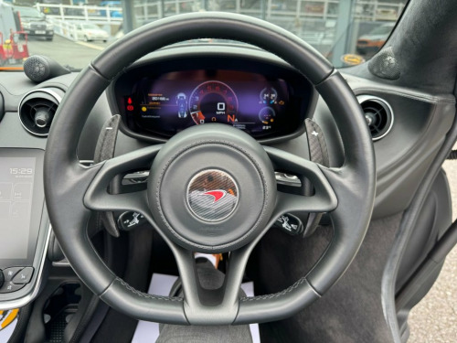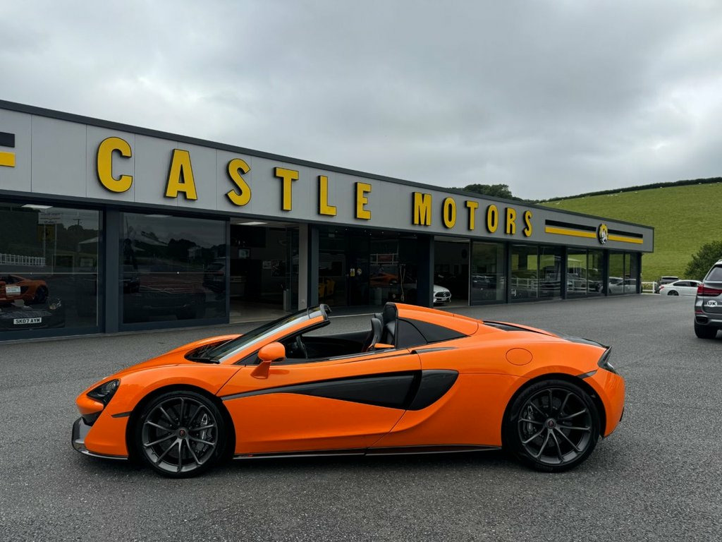 High spec Spider in Pearlescent Orange with Grey Accents, Black leather, 19/20 inch Stealth Grey wheels with matching McLaren calipers over Ceramic brakes, reversing camera, Orange seatbelts, Stealth Black finish exhaust, Bowers & Wilkins Premium Hi Fi, Navigation, front / nose lifting gear, ACTIVE Adjustable handling and powertrain modes, Cruise control, Carbon fibre paddles, Alcantara headlining Plus PPF Paint Protection Film to front & sides. Stunning 570S Spider previously supplied by ourselves & only covered 23,000 miles with McLaren Service history plus serviced by us previously including just before sale. Must be seen with this incredible colour & specification 12V Accessory Socket, 19in Front and 20in Rear Alloy Wheels - , 19in Front and 20in Rear Alloy Wheels - , 3x Handling Modes - Normal - Sport - Tra, 7in Portrait Touch Screen Monitor, Adaptive Damping S Tune, Alarm, AM-FM Radio, Anti-Lock Braking System - ABS, Audio Media Player, Automatic LED Daytime Running Lights and, Automatic Lights and Rain Sensor, Black Leather Steering Wheel, Black Seatbelts, Bluetooth Telephony, Body Colour Door Mirror Casings and Door, Body Colour Retractable Hard Top Roof, Brake Calipers - Black with Silver McLar, Carbon Ceramic Brakes with 6 Piston Cali, Carbon Fibre Interior Components, Central High Mounted Stop Lamp, Cruise Control, DAB Radio, Dark Palladium Aer