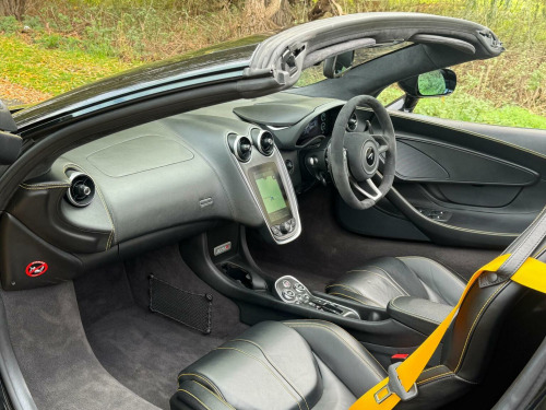 **FULL MCLAREN SERVICE HISTORY + INCREDIBLY WELL SPECD MCLAREN 570S SPYDER WITH 1 FORMER KEEPER FROM NEW, CURRENT SECOND OWNER HAS OWNED THIS SINCE SEPT 2020, SPEC INC. FRONT AXLE LIFT + MCLAREN CARBON CERAMIC BRAKES, MSO YELLOW SEATBELTS, CARBON FIBRE INTERIOR, CARBON FIBRE STEERING WHEEL WRAPPED IN ALCANTARA, REAR VIEW CAMERA, FRONT & REAR PARKING SENSORS, CRUISE CONTROL, SOFT CLOSING DOOR, KEYLESS START, FORGED TWIN SPOKE ALLOY WHEELS, MOBILE BLUETOOTH CONNECTIVITY & MORE**, Finished in the stunning Onyx Black Metallic Paint which is complimented by the Black Leather & Alcantara Interior with Yellow Contrast Stitching and the Lightweight Forged Alloy Wheels. The Spec List is as follows: (1) Carbon Ceramic Brakes with McLaren Yellow Calipers, (2) Carbon Fibre Racing Seats, (3) MSO Bright Yellow Seatbelts, (4) Carbon Fibre Paddle Shifters, (5) Carbon Fibre Centre Console, (6) Alcantara & Carbon Fibre Steering Wheel, (7) IRIS Touchscreen System, (8) Satellite Navigation, (9) Reverse Camera, (10) Active Dynamics Panel, (11) Launch Control, (12) Cruise Control, (13) Bluetooth Phone & Media, (14) Dual-Zone Climate Control, (15) Rain Sensor, (16) Automatic Headlights, (17) Digital Driver Display, (18) Keyless Start, (19) Pirelli P-Zero Tyres, (20) Forged Twin-Spoke Alloy Wheels. Full McLaren Service History with no expense spared, first registered in January 2019. This example has a total of 4 Main Dealer McLaren Services, with the most recent service carried out on 18/12/2024. Supplied with a full McLaren service print confirming all entries, demonstrating meticulous maintenance throughout its life. ANY PART EXCHANGE IS WELCOME. VIEWING IS STRICTLY APPOINTMENT ONLY. 3 MONTHS WARRANTY, EXTENDED WARRANTY AVAILABLE, HPI CLEAR AND VEHICLE TRACKING SOLUTIONS. ALL TRANSACTIONS SUBJECT TO A £199 ADMIN FEE. £100 OF EVERY SALE IS DONATED TO CHARITY. FINANCE AVAILABLE AT COMPETITIVE RATES. CM22 7AA