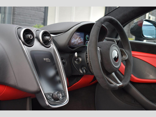 2020 20 McLaren 570S 3.8T V8 SSG finished in MSO Defined Zenith Black Metallic with Jet Black with Apex Red Sport By McLaren Designer Interior. Just 3800 miles covered and first service completed by Mclaren Leeds on 2776 miles. Mclaren manufacturer warranty in place until March 2023 and car supplied with two keys, book packs and all correct documentation etc. Presented in flawless showroom condition inside and out as you would expect including bodywork, alloys, interior and all mechanical elements. Furthermore, the front end of the car is fitted with a clear paint protection film protecting the factory paint from stone chips and other elements. This 570 is boasting an enormous spec with a long options list featuring some of the most sought after optional extras. This includes: Carbon Ceramic Brakes with 6 Piston Calipers Front and 4 Piston Calipers Rear, Vehicle Lift, 19in Front and 20in Rear Alloy Wheels - 5 Twin Spoke Lightweight Forged with Pirelli P ZERO Tyres, MSO Defined Titanium Super Sports Exhaust with Nano Clear Exhaust Finishers, MSO Defined Black Pack, Security Pack, McLaren 8 Speaker Audio System, Carbon Black Alcantara Steering Wheel, Carbon Fibre Interior Components, McLaren Branded Floor Mat Set, Front and Rear Parking Sensors and Rear View Camera. Other features include: 3x Handling Modes - Normal - Sport - Track, 7in Portrait Touch Screen Monitor, Automatic Lights and Rain Sensor, Bluetooth Telephony, Cruise Control, Dynamic Electronic Stability Control - DESC, Electrochromatic Dipping Rear View Interior Mirror, Full LED Headlights with Automatic Headlight Levelling, IRIS Navigation, Launch Control, On-Board Memory, TPMS - Tyre Pressure Monitoring System and Tyre Temperature Gauge and more.