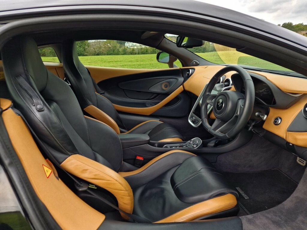 This 2015 McLaren 570S T V8 presents an exceptional opportunity with remarkably low mileage for its age, having covered just 19,988 miles. Powered by a potent 3.8 litre petrol engine, this Euro 6 compliant supercar delivers exhilarating performance.  Experience the thrill of rapid acceleration, achieving 0 to 60 miles per hour in a mere 3.1 seconds. This impressive figure demonstrates the 570S T V8's superior engineering and capability when compared to other vehicles in its class, offering a truly dynamic driving experience.  Black Paintwork, Carbon Black Leather, Natural Tan Leather Inserts, McLaren Orange Stitching, Black Carpets, Black Leather Headlining, Heated Memory Sports Seats, Dark Palladium Exterior Detailing, Bowers & Wilkins 12 Speaker Audio System, Rear View Camera, Front & Rear Parking Sensors, McLaren Branded Floor Mats, Soft Close Doors, Vehicle Lift, Silver Calipers, Stealth 5 Twin Spoke Lightweight Forged Wheels Features: Reversing camera, Heated seats, Parking assist, Carbon Fibre Accents.