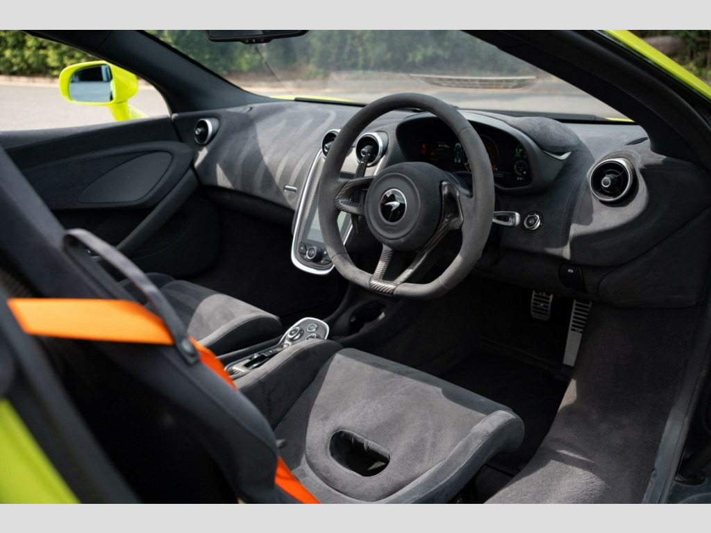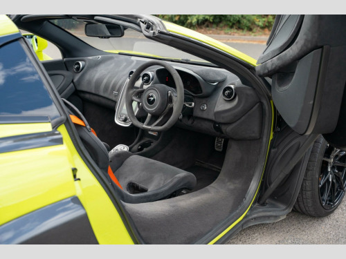 The 2020 McLaren 600LT T V8 offers a thrilling combination of performance and style. This model features a potent 3.8L petrol engine and meets Euro 6 emission standards.Equipped with full LED headlights that include automatic headlight levelling, keyless entry and start, dual-zone climate control, and automatic lights and rain sensors, this McLaren offers a blend of convenience and advanced technology. The acceleration is a standout feature; this car can go from 0 to 60mph in just 2.8 seconds, demonstrating its superior performance capabilities compared to similar vehicles. in front and 20in rear alloy wheels - 10 spoke ultra-lightweight forged, 3x handling modes - normal - sport - track, 7in portrait touch screen monitor, adaptive damping lt tune with lowered ride height, alarm, anti-lock braking system - abs, automatic led daytime running lights and rear lights, automatic lights and rain sensor, black seatbelts, black sparkle metallic interior components, body colour door mirror casings and door mirror arms, brake calipers - black with printed mclaren logo, carbon black alcantara steering wheel, carbon ceramic brakes with 6 piston calipers front and 4 piston calipers rear, carbon fibre extended side intakes - dark palladium, carbon fibre extended side skirts with aero winglets - dark palladium, carbon fibre fixed rear wing - dark palladium with matte black heat shield, carbon fibre front splitter with integrated twin endplates - dark palladium, carbon fibre rear bumper aero fins - dark palladium, carbon fibre rear bumper with integrated full width diffuser - dark palladium, carbon fibre rear deck with integrated exhaust outlets - dark palladium, central high mounted stop lamp, cruise control, dark palladium belt moulding - rear fender closures, dark palladium exterior door inserts, dark palladium rear spoiler, dark palladium service cover, dark palladium tonneau cover, dihedral doors, dual function led rear fog - reverse light, dual zone climate control, dynamic electronic stability control - desc, electrically folding heated door mirrors with dip in reverse functionality, electronic parking brake, exposed engine bay, follow me home headlights, full led headlights with automatic headlight levelling, hill hold assist, keyless entry and lock - keyless start, lt anti-roll bars, lt exhaust bezel - dark silver, launch control with burnout mode, lockable centre console bin, manual adjust steering column - reach and rake, mclaren brake steer, mclaren track telemetry (mtt), natural finish wheel arches, on-board memory, open differential, open door stowage bins - net stowage protector, pirelli p zero trofeo r tyres, plenum cover - natural finish, regular fit carbon fibre racing seats with fixed passenger seat, retractable hard top roof, satin chrome brightwork, silver wheel finish, stealth exhaust finisher, stiffened engine and transmission mounts, stowage in driver-side seat front pocket, tpms - tyre pressure monitoring system and tyre temperature gauge, textile headlining, tonal carbon black stitch, top-exit stainless steel exhaust system, traction control - tc, usb connectivity