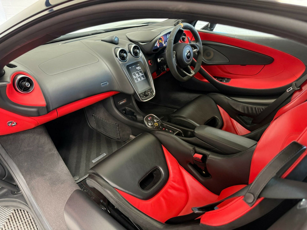 This 2019 McLaren 600LT T V8 represents a rare find finished in MSO borealis black, having been cherished by only two owners with PPF installed and boasting a remarkably low mileage of just 10,000 miles for its age. Under the bonnet, a potent 3.8 litre petrol engine, compliant with Euro 6 emissions standards, delivers exhilarating performance. This exceptional example is equipped with a suite of desirable features, including Dual Zone Climate Control for personalised comfort, and Automatic Lights and Rain Sensor for effortless driving. Convenience is further enhanced by Keyless Entry and Start, allowing seamless access and ignition, while Full LED Headlights with Automatic Headlight Levelling ensure optimal visibility in all conditions.The McLaren 600LT T V8 truly excels in its performance capabilities, highlighted by its astonishing 0-60mph acceleration time of just 2.8 seconds. This impressive figure demonstrates its superior engineering and dynamic prowess when compared to other vehicles in its class. The combination of its low mileage, limited ownership, and advanced features makes this 2019 McLaren 600LT T V8 a standout choice for discerning drivers seeking an extraordinary driving experience. v accessory socket, 19in front and 20in rear alloy wheels - 10 spoke ultra-lightweight forged, 3x handling modes - normal - sport - track, 7in portrait touch screen monitor, adaptive damping lt tune with lowered ride height, alarm, anti-lock braking system - abs, automatic led daytime running lights and rear lights, automatic lights and rain sensor, black seatbelts, body colour door mirror casings and door mirror arms, body colour roof and cantrails, brake assist technology, brake calipers - black with white mclaren logo, brake disc wipe technology, brake pad wear sensors - front and rear, brake pre-fill technology, carbon ceramic brakes with 6 piston calipers front and 4 piston calipers rear, carbon fibre extended side intakes - dark palladium, carbon fibre extended side skirts with aero winglets - dark palladium, carbon fibre fixed rear wing - dark palladium with matte black heat shield, carbon fibre front splitter with integrated twin endplates - dark palladium, carbon fibre rear bumper aero fins - dark palladium, carbon fibre rear bumper with integrated full width diffuser - dark palladium, carbon fibre rear deck with integrated exhaust outlets - dark palladium, central high mounted stop lamp, cruise control, dark palladium belt moulding - rear fender closures, dark palladium rear spoiler, dark palladium service cover, darkened finish headlamp bezel with 600lt branding, dihedral doors, driver and passenger airbag, dual function led rear fog - reverse light, dual zone climate control, dynamic electronic stability control - desc, electrically folding heated door mirrors with dip in reverse functionality, electrochromatic dipping rear view interior mirror, electronic external door release buttons - both sides, electronic immobiliser, electronic parking brake, engine start-stop ignition button, exposed engine bay, exterior and interior secondary mechanical door releases, follow me home headlights, front side airbags, full led headlights with automatic headlight levelling, hill hold assist, keyless entry and lock - keyless start, lt exhaust bezel - dark silver, launch control with burnout mode, locking wheel nuts, manual adjust steering column - reach and rake, mclaren brake steer, mclaren track telemetry (mtt), on-board memory, one touch electric windows, pirelli p zero trofeo r tyres, plenum cover - natural finish, power steering, satin chrome brightwork, stealth exhaust finisher, tpms - tyre pressure monitoring system and tyre temperature gauge, textile headlining, tilt sensors, traction control - tc, trip computer, usb connectivity