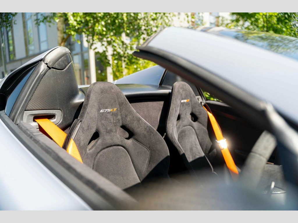 SOLD Full McLaren Main Dealer History, will be freshly serviced with 1 yr McLaren Warranty added. 1 of just 500 in the world and one of the most critically acclaimed Supercars of the past decade. Originally specified and owned by ex F1 and Indy Kart Driver Max Chilton. £40,000 of options including; , -P1 Carbon Racing Seats (Touring Size) with Embroidered 675LT Head rests, -Nose Lift, -MSO Paint - Ceramic Grey, -Full Black Alcantara Interior, -Extended Carbon Fibre Interior Upgrade Package, -Carbon Fibre Sill Finishers with McLaren Branding, -Alcantara Steering Wheel with MSO Extended Shifting Paddles, -Orange Seat Belts, Meridian Hi Fi, -Door Mirror Casings in Visual Carbon Fibre, -Side Intakes in Visual Carbon Fibre, -Carbon Fibre Exterior Upgrade Package, -Super Lightweight Forged Wheels with Titanium Wheel Bolts, -Carbon Fibre Engine Bay, -Titanium Oil and Coolant Filler Caps, -Soft Close Doors, -Surround Parking Sensors with Reversing Camera, -Alarm Upgrade with CAT 5 Tracker, -675 LT Branded Cover and Floor Mats, List price new was £325,125. Complete X-Pel PPF fitted including Windscreen. Upgraded P1 Accumulators fitted by V Engineering, so that they can simply be re gassed instead of replaced. Currently fitted with Michelin Pilot 4S Tyres. Serviced by;, -McLaren Birmingham at 2mls Jun 2016 (PDI), -McLaren Birmingham at 250mls Feb 2018 (10k Service), -McLaren Birmingham at 780mls Nov 2019 (20k Service), -McLaren Birmingham at 780mls Nov 2019 (30k Service), -McLaren Guildford at 2,768mls Dec 2020 (40k Service), -McLaren Guildford at 3,714mls Jqn 2022 (50k Service), -McLaren Guildford at 5,057mls Apr 2023 (60k Service), -McLaren Guildford at 5,480mls May 2024 (80k Service), No track days. Condition is as close to perfect as you could possibly hope to find. A car Ive known for 5 years and no expense has been spared. Always garaged and all original panels. No corrosion. The most perfectly specified and beautiful 675LT Spider currently available. Finance avail subject to status, Part exchange poss. Information given to the best of our knowledge, errors and omissions can occur.
