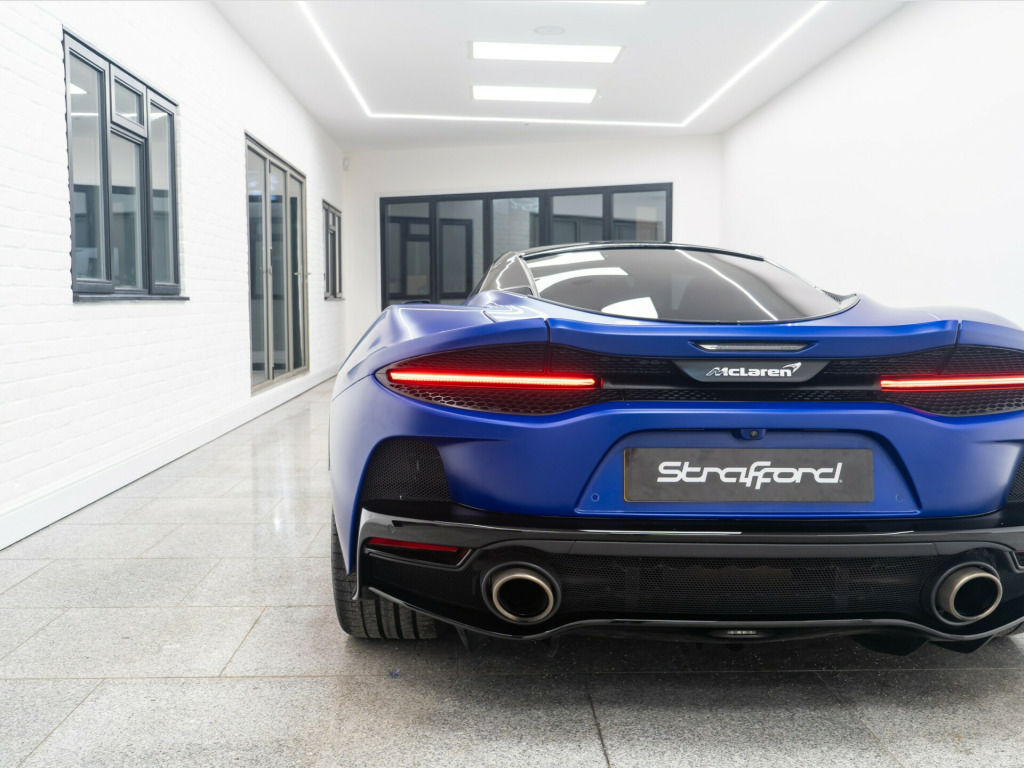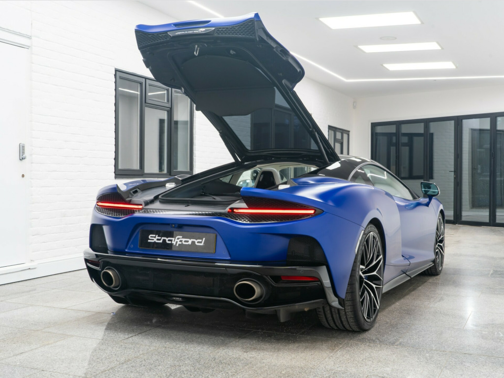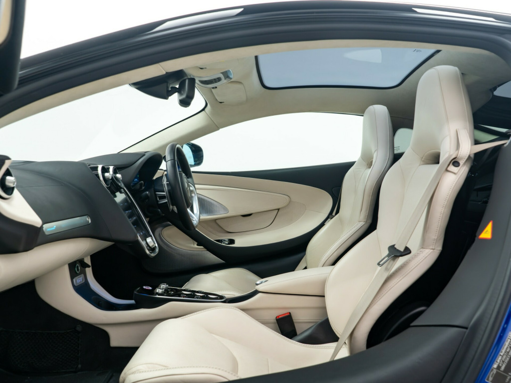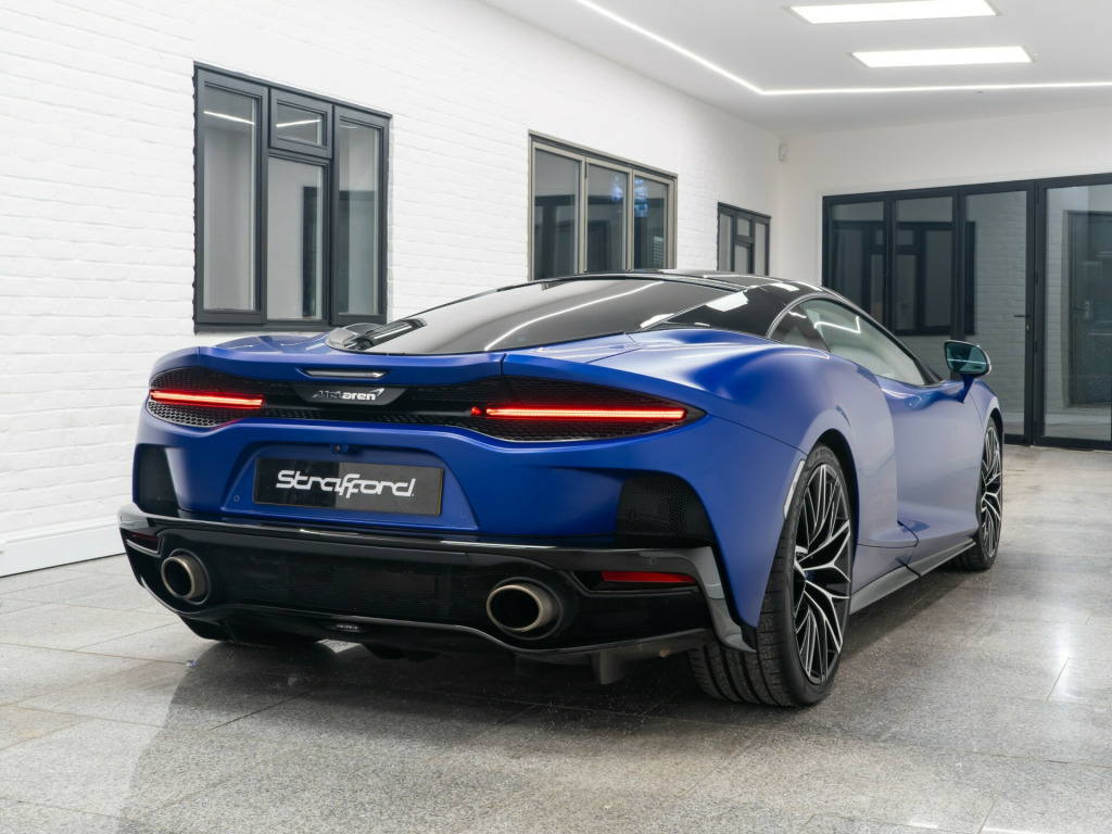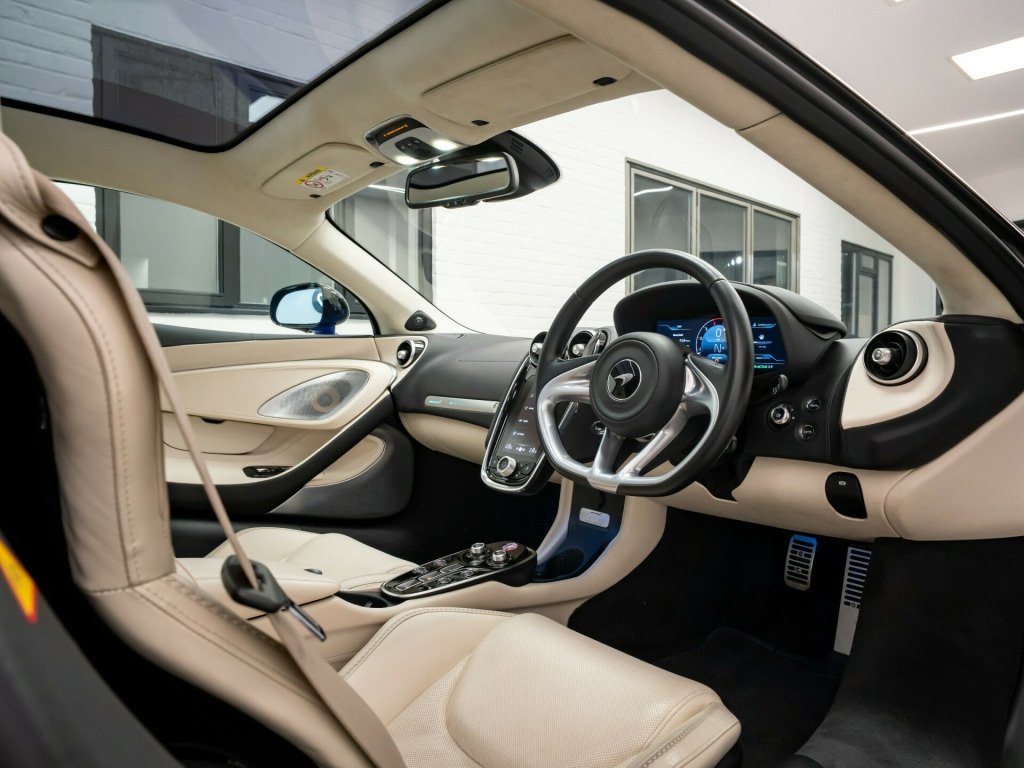 Now available is this beautifully specified 2022 McLaren GT, presented in the stunning Aurora Blue over a Luxe Porcelain and Black interior, having covered just 10,730 miles from new. Supplied in UK RHD specification and supported by full McLaren main-dealer service history.With its full Satin PPF, panoramic privacy glass roof, lightweight forged wheels, carbon ceramic brakes and the desirable Premium and Practicality Packs, this is a superbly equipped and tastefully configured GT.Standard McLaren GT features include:- 4.0L twin-turbocharged V8 producing 612bhp- 7 speed Seamless Shift Gearbox (SSG) dual clutch transmission- Proactive Damping Control II suspension system- Comfort / Sport / Track drive modes- Electro hydraulic steering- LED headlight system- Adaptive damping and hydraulic cross linked suspension-Carbon fibre MonoCell II-T chassis- Panoramic glass roof- Active rear spoiler- 150L rear luggage bay plus 420L upper boot capacity- TFT digital driver displayOptional specification and packs include:- P22 Luxe Interior Theme (Porcelain and Black)- Premium Pack including Bowers & Wilkins audio, soft close doors and adaptive headlights- Practicality Pack including vehicle lift, parking sensors, reverse camera and luggage retention strap. - Sports Exhaust with Natural Titanium Finishers- Panoramic Privacy Glass Roof- 10-Spoke Lightweight Forged Wheels in Gloss Black Diamond Cut- Carbon Ceramic Brakes with Black Calipers- Jet Black extended floor mats- Lithium-ion battery chargerService history:14/10/2022 - 3,836 miles - McLaren Birmingham01/02/2024 - 6,743 miles - McLaren New Forest15/05/2025 - 9,150 miles - McLaren GuildfordThe vehicle will be supplied freshly inspected, including full mechanical and cosmetic assessment. Complete with two keys, book packs, McLaren service record, HPI Clear certificate and V5 logbook showing 4 former keepers.Dealer finance is available from 8.9% APR subject to underwriting, and part exchanges are welcome. v accessory socket, 7in portrait touch screen monitor, am-fm radio, audio media player, bluetooth telephony, dab radio, iris navigation, mis - mclaren infotainment system ii, mclaren 4-speaker audio system, on-board memory, usb connectivity and aux in, ipod-iphone integration, 19in front and 20in rear alloy wheels - gt 15-spoke, black satin belt moulding - rear fender closures, body colour door mirror casings and door mirror arms, body colour rear spoiler, body coloured exterior door inserts, brake calipers - black with silver mclaren logo, carbon fibre monocell ii-t, carbon fibre rear upper structure, dark palladium aero blades, dark palladium side intakes, dark palladium side skirts, dihedral doors with soft close function, electrochromatic dipping rear view interior mirror, glazed rear tailgate with soft close function, gloss black cantrails, gloss black diffuser, gloss black fixed roof, gloss black front splitter, gloss black rear bumper lower, gloss black side sills, heated door mirrors with dip in reverse functionality, iron brakes with 4-piston aluminium calipers front and rear, locking wheel nuts, low twin exit stainless steel exhaust system, one touch electric windows, pirelli p zero tyres, satin black exterior upper window surrounds, sequential led indicators, silver badge set, silver exhaust finisher, 4x handling modes - non-active - comfort - sport - track, adaptive damping gt tune, adaptive damping with proactive damping control, anti-roll bars, brake disc wipe technology, brake pre-fill technology, cruise control, launch control, mclaren brake steer, open differential, power steering, tpms - tyre pressure monitoring system and tyre temperature gauge, trip computer, alarm, anti-lock braking system - abs, brake pad wear sensors - front and rear, driver and passenger airbag, dynamic electronic stability control - desc, electronic immobiliser, electronic parking brake, front side airbags, hill hold assist, keyless entry and lock - keyless start, tilt sensors, traction control - tc, automatic led daytime running lights and rear lights, automatic lights and rain sensor, central high mounted stop lamp, dual function led rear fog - reverse light, follow me home headlights, full led headlights with automatic headlight levelling, carbon black carpet, carbon black leather steering wheel, carbon black leatherette headlining, carbon black leatherette luggage bay floor, carbon black leatherette rear quarter trim, carbon black nappa leather interior door inserts, carbon black seatbelts, carbon black stitching, centre console bin, covered door storage bins - lined, dual zone climate control, electronic external door release buttons - both sides, engine start-stop ignition button, exposed engine bay, lockable glovebox with illumination, manual adjust comfort seats, manual adjust steering column - reach and rake, natural finish satin silver - satin black and natural finish brightwork, rear window heating element on glass-rear window, satin black interior surrounds, satin silver interior bezels, steering wheel mounted gearshift paddles, stowage in driver-side seat front pocket