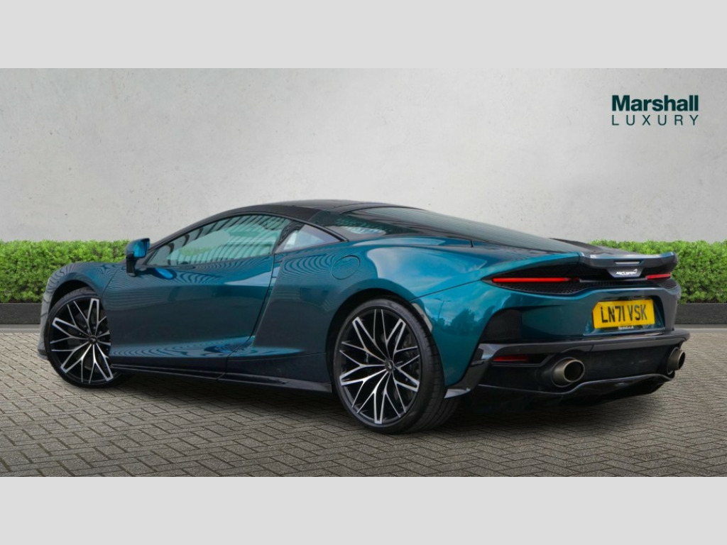 Mclaren Gt V8 2dr SSG Auto 10" driver display with 7" infotainment display, 4 handling modes (Non-active, Comfort, Sport and Track), Bluetooth telephone connection, Brake pad wear sensors front and rear, Cruise control with speed limiter, E-call, Eco start/Stop system with deactivation switch, McLaren Infotainment System II (MIS II), Navigation system, On board memory, PAS, Range calculation, Voice control for infotainment, Adaptive damping with proactive damping control, Anti roll bar, Launch control, Lithium-ion battery, Twin multi plate clutches, AM/FM and DAB radio, Audio media player, Auxiliary input socket, iPod connection, USB connection, 3rd brake light, Active exhaust valves, Auto headlights, Automatic LED daytime running lights, Automatic LED rear lights, Automatic lights (in conjunction with rain- light sensor), Bonnet, fenders and doors in aluminium, Central high mounted stop light (CHMSL), Dihedral doors, Dual front wipers with separate washer jets, Dual function LED rear fog / reverse light, Electrochromatic dimming rear view mirror, Follow me home headlights, Front Towing eye, Gloss black cantrails, Low twin exit stainless steel exhaust system, Radio antenna integrated with windscreen, Rear window heating element on tailgate glass, Sequential LED indicators, Silver McLaren badge set (front, rear, steering wheel and wheel centre caps), Vehicle branding badges, 2 cupholders, 4 face vents, Centre console bin, Covered door storage bins, Driver and passenger foot rest, Dual zone climate control, Front headrests, Front luggage compartment, Front luggage retention nets, Illuminated luggage areas, Interior courtesy lights with two buttons, Interior footwell lighting and door lighting, Lockable glovebox with illumination, Model specific dedication plaque, Piano black finish to surround and bezels (air vents, centre console, centre screen, door switches), Rear luggage floor with tie down loops, Single passenger seat, Soft close doors, Stowage in driver side seat front pocket, Sunvisors with driver and passenger vanity mirrors, Anti-lock braking system (ABS), Brake assist technology, Brake disc wipe technology, Brake pre-fill technology, Driver and passenger airbags, Driver and passenger side airbags, Dynamic Electronic Stability Control (DESC), Electronic parking brake, Hill hold assist, McLaren brake steer, Traction control system (TCS), Tyre pressure monitoring system (TPMS), Tyre temperature gauge, Electronic external door release with driver side lock sensor, keyless entry and lock, Keyless Start, Pirelli P-Zero tyres, Tyre repair kit