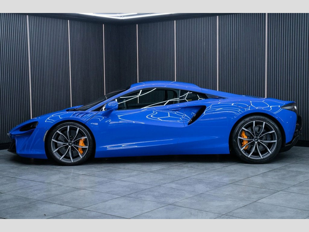 FOR SALE: 2023 McLaren Artura – 3.0T V6 Plug-In Hybrid – 680ps (700ps Upgrade) – SSG Reg: SR23MCL Mileage: 8,852 miles Price: £134,990.00 Petrol Plug-In Hybrid | Euro 6 (s/s) | SSG Auto | Coupe MSO Paris Blue – Fully Loaded – McLaren Warranty to May 2028 This stunning McLaren Artura represents the next-generation of hybrid supercar engineering — combining a twin-turbo V6, lightweight electrification, and a carbon architecture that delivers breathtaking response, agility and performance. Finished in the ultra-desirable MSO Paris Blue, protected with Front-End PPF, and backed by McLaren Warranty until May 2028, this is one of the best-specced and best-protected Arturas on the market. Key Selling Highlights # McLaren Warranty until May 2028 # 3-Year Service Plan — 1 Free Service Remaining (Due Sept 2026) # 2025 McLaren Power Upgrade to 700 PS # Front-End PPF Protection # Bowers & Wilkins Premium Audio # Vehicle Lift System # Soft Close Doors # 360° Surround View Cameras # Apple CarPlay Integration # Club Sport Seats # Vehicle Tracking System # Front & Rear Parking Sensors # Practicality & Technology Packs # HomeLink Garage Integration Why This Artura Is Exceptional One of the highest-spec examples available in the UK # Huge cost options list & desirable MSO colour # The 700ps factory upgrade transforms performance # Long manufacturer warranty = total peace of mind # PPF protection help 3x Handling Modes - Comfort - Sport - Tr, 4x Powertrain Modes E-Mode-Comfort-Sport, 8in HD Touch Screen, Alcantara Cabin Surfaces, Alcantara Headlining - Carbon Black, Alloy Wheels - 20in 10-Spoke Super-Light, Aluminium Superformed Roof - Rear Clamsh, Anti-Lock Braking System - ABS, Anti-Roll Bars, Audio Media Player, Automatic LED Rear - Brake Lights, Automatic Lights and Rain Sensor, Automatic Signature LED Daytime Running , Automatic Speed Limiter - AtS, Black Satin Gearshift Paddles, Black Satin Interior Finish, Black Sparkle Metallic Interior Componen, Bluetooth Telephony, Body Colour Door Mirror Casings and Door, Body Colour Roof and Cantrails, Boot Lining - Front Luggage. Flock Lined,