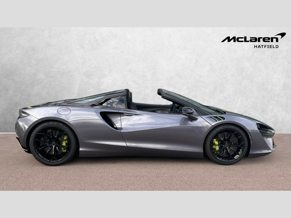 This 2025 McLaren ARTURA 3.0T V6 7.4kWh Spider SSG 700P Convertible is currently available for £184,900 in Hatfield Hertfordshire with Petrol engine and Automatic gearbox. For more information or to arrange a viewing, click here to send us an email using form below.