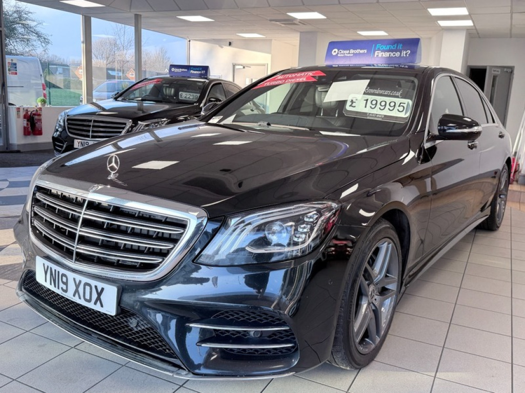 FINANCE AND DELIVERY AVAILABLE ,,,,Step into effortless luxury with this 2019 Mercedes-Benz S 350d L AMG Line Executive. Finished in sleek Black, this long-wheelbase S-Class delivers first-class comfort and commanding presence. The AMG Line styling enhances its sporty elegance, while the panoramic glass roof floods the cabin with natural light for every journey. Inside, premium leather seats and advanced driver technology create a refined, relaxing drive?perfect for long motorway cruising or executive travel. The smooth automatic transmission paired with the powerful yet efficient 2.9L diesel engine offers outstanding performance with excellent economy. This car comes with full service history, is HPI clear, freshly serviced, includes a 12-month MOT, 3-month warranty, and 1-year breakdown cover. Finance, part exchange, and nationwide delivery available?buy with confidence. 19in Alloy Wheels, ABS, Adjustable Steering, Air Conditioning, Alarm, Alloy Wheels, Bluetooth, Body Coloured Bumpers, Central Locking, Climate Control, Cruise Control, Cup Holders, Daytime Running Lights, ESP, Electric Adjustable Seats, Electric Heated Seats, Electric Mirrors, Electric Windows, Engine Immobiliser, Front Airbags, Front Fog Lights, Heated Door Mirrors, ISOFix Anchor Point, LED Lights, Lane Assist, Leather Seats, MOT, Metallic Paint, Panoramic Sunoof, Parking Assistance, Parking Camera, Parking Sensors, Power Assisted Steering, Privacy/Tinted Glass, Radio, Safety Belts, Satellite Navigation, Service History, Speakers, Start Stop System, Steering Wheel Controls, V5 Registration Document, Voice Control