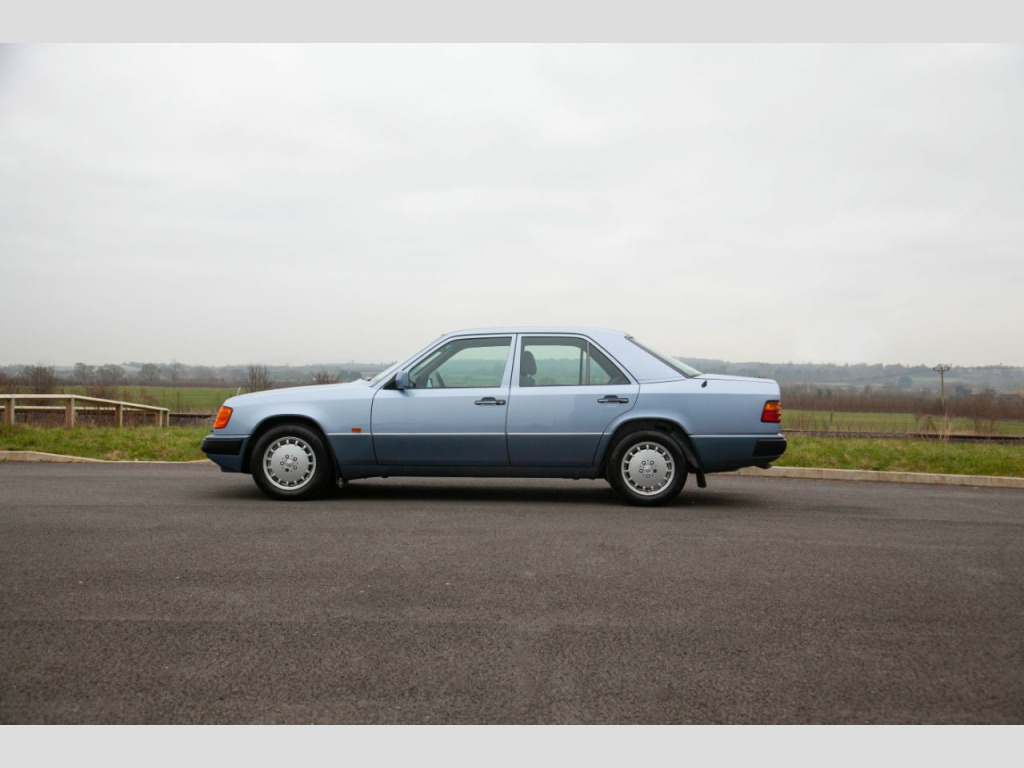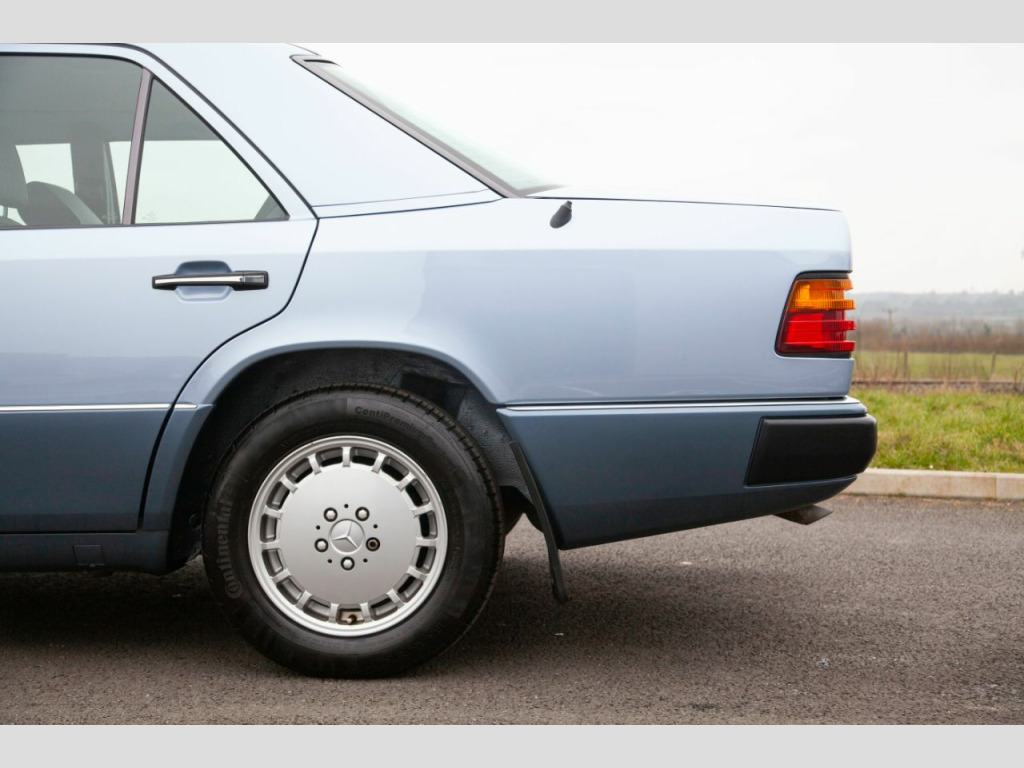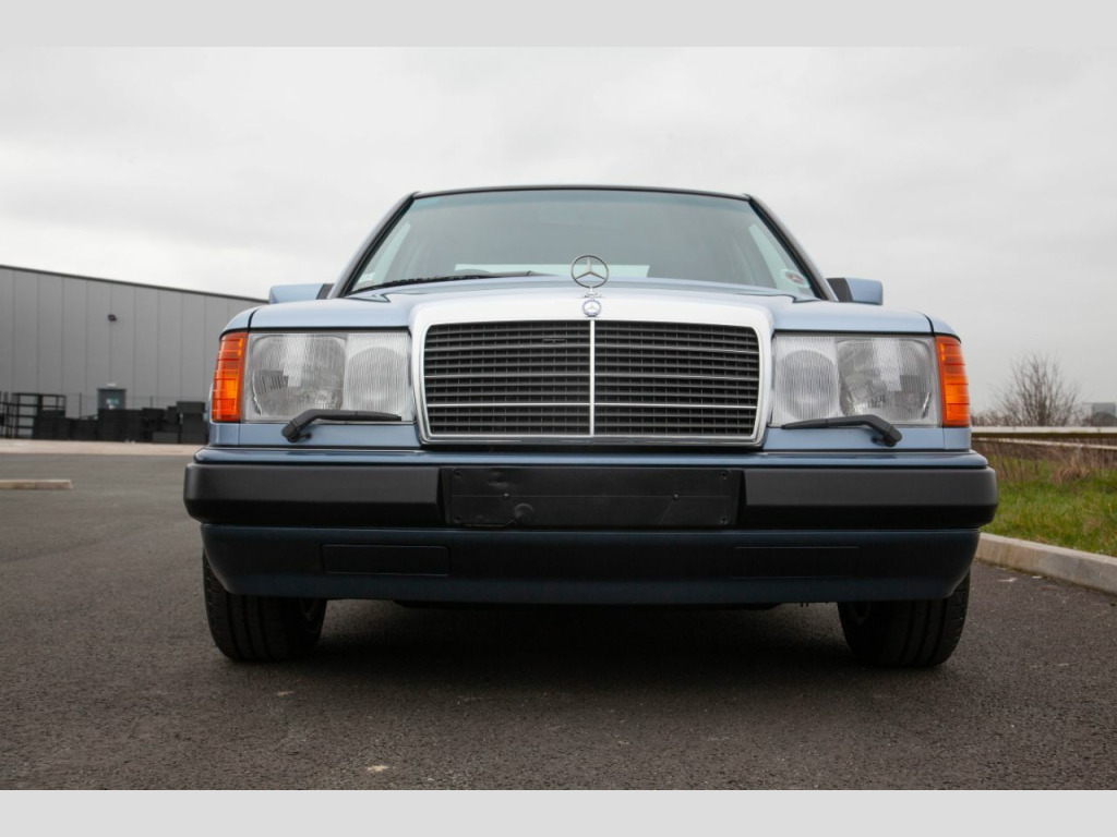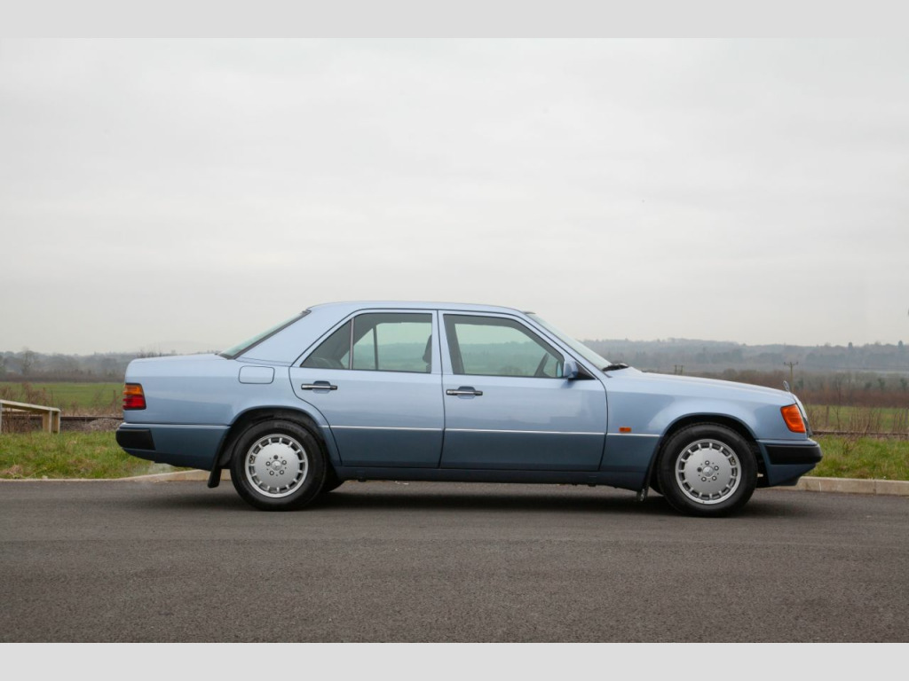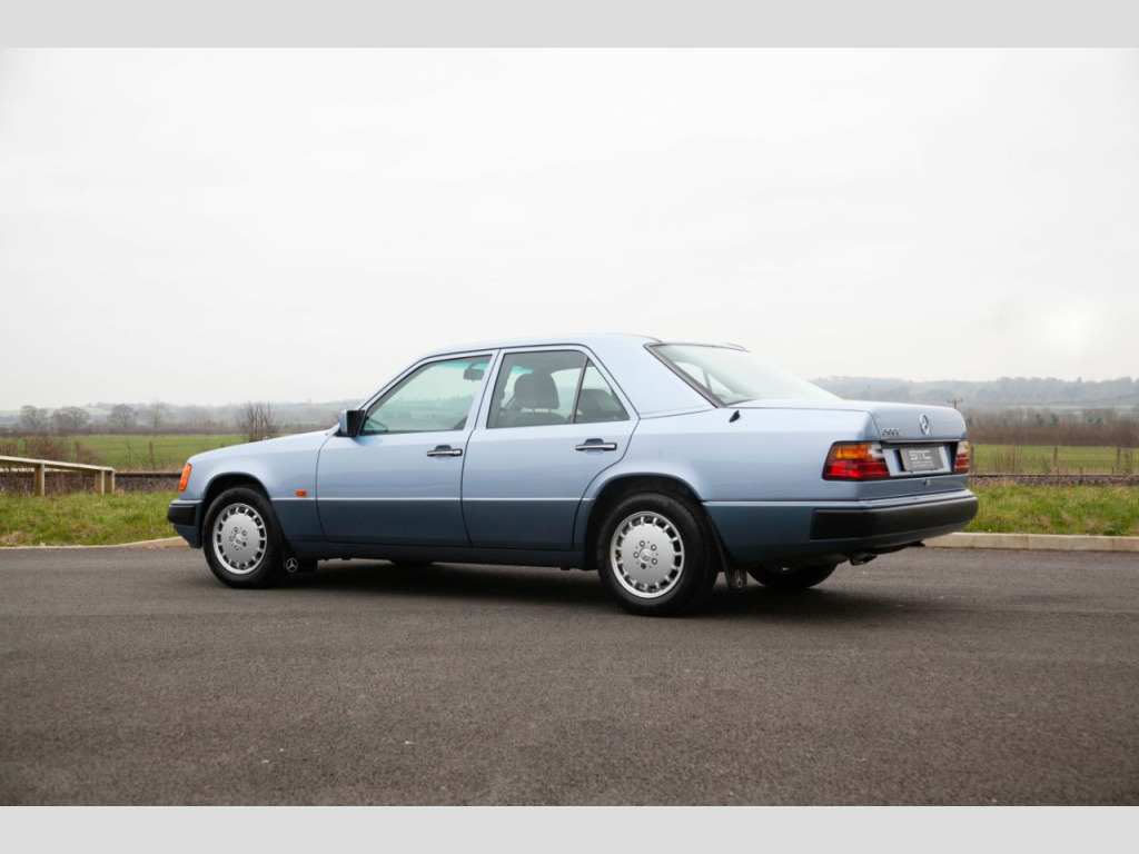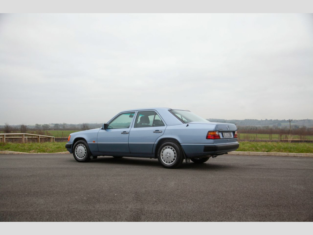 SMC Heritage are proud to present this incredibly special 1990 Mercedes 300E W124 saloon that has covered just 8,000 miles from new with just two previous keepers. Built in August 1990 to UK Specification it was supplied new on Nov 28th 1990 by Country Services Ltd Mercedes of Haverfordwest to Mr Thomas. His new 300E automatic was finished in Pearl Blue metallic (348u) with contrasting Andorra blue (301) Sacco panels and Grey Cloth (068). Initially the vehicle was registered as H78GDE but he added the registration H2 JWT that pleasingly it still wears to this day on the original dealer supplied plates. In addition to the factory specification, he added Genuine Mercedes Over Mats, Mud Flaps and a Blaupunkt Cambridge Radio from the Dealer fit accessories catalogue. All of which are still present along with the original Mercedes care kit. Provenance:In impeccable condition and with the original keepers’ tenure spanning 25 years and just 8000 miles covered this really is as good as it gets. The car is supplied with all booklets and instructions in the original leather folder. One of the keys still resides in the leather cover and there is even an unused Mercedes service 24h service sticker in the pack. The number plates are from the original supplying dealer and all the tools are in original roll. The Jack is unused and still bares its original warning label. Exterior:Evidently having always been garaged the Pearl blue paint is in fantastic order throughout with no signs of rust on the arches or the jacking points. The panel gaps and shut lines are perfect and the body is free from dents and the shine is deep and glossy. The stunning Pearl blue over Andorra blue Sacco panel finish is both elegant and timeless and really emphasis the lines of the w124. The factory correct 15 Hole Light Alloy wheels are in superb condition with matching continental tyres all roundThe bumpers, lights, and badges are all correct and free from any damage or discoloration. The glass is all factory with the correct markings including the windscreen. All factory stickers are also present and undamaged as is the supplying dealer sticker in the rear window. This really is a cosseted time warp car and could easily be used for period TV or Film production. Interior:The interior is a fabulous place to reside with factory electric sliding sunroof and leather wheel. The factory grey cloth interior (068) is in superb order and appointed with both centre armrest and rear headrests. The seats are in incredible condition. Totally free from any damage or wear to the bolsters, the fabric remains factory fresh and the springs taught and supple throughout. It would not be unreasonable to surmise that the rear seats may have never been sat in, their condition would certainly suggest so. The switchgear is all in superb order with no scratches or marking to the trim. Fitting with the incredible mileage the often tired, high contact areas of the cabin such as the leather steering wheel and gear knob show almost no signs of any use. The dash is unmarked and unfaded whilst the dials maintain their vibrant orange lume and the Blaupunkt audio is both present and fully functional. The carpets are perfect throughout having been protected from new by an original set of genuine Mercedes corded overmats. The boot area is effectively unused with absolutely no signs of loading damage or wear whatsoever and houses the unused emergency tool roll and jack. Underneath and under the bonnet:Perhaps even more remarkable than the incredible condition of the paint work and trim is the underside of the vehicle. It could easily have just rolled straight off the factory floor, with factory wax and markings still in place. The engine bay is equally impressive, totally standard and spotlessly clean it is an incredible testament to the care and gentle use this W124 has receivedOverview:With just 8,000 miles on a vehicle renowned for its longevity its condition is best described as time warp. The exterior and interior are quite simply superb. Even the wheels are free from scratches and wear a matching set of continental tyres. On the road this W124 drives with all the smoothness and fluidity you that you only find with low mileage perfectly maintained examples. If you are looking for the best, most attractive and original example of the legendary W124 you need to see this car. The vehicle will be MOT’d and fully service by SMC Heritage prior to collection for complete peace if mind£18,994 Open by appointment only please call us on 01244 539760 or 07890 000145 or 07710 096345 We are always looking for high quality, low mileage classic and modern classic cars and bikes with good service history from the early 60s to the mid 00’s. If you are looking to take the hassle out of selling your pride and joy privately please don't hesitate to get in touchOptional Equipment (Decoded from VIN )240 OUTSIDE TEMPERATURE INDICATOR280 LEATHER STEERING WHEEL AND LEATHER GEAR SHIFT KNOB341 ADDITIONAL BLINKER LAMPS362 RHD VEHICLES AS PER EC REGULATIONS (CONTROL CODE)412 ELECTRIC SLIDING ROOF WITH TILTING DEVICE 420 AUTOMATIC TRANSMISSION 4-GEAR 430 HEADREST IN THE REAR, LEFT AND RIGHT461 INSTRUMENT WITH MILES IND. AND ENGLISH LEGEND524 PAINTWORK – PRESERVATION570 FOLDING ARMREST, FRONT584 ELECTRIC WINDOW LIFTERS (FRONT AND REAR DOORS)593 HEAT-INSULATING GLASS, ALL-AROUND, HEATED REAR WINDOW PANE (SINGLE-SHEET SAFETY GLASS), BAND FILTER 600 HEADLAMP WIPER/WASHER 613 HEADLAMP LEFT-HAND TRAFFIC 640 15-HOLE LIGHT ALLOY RIMS