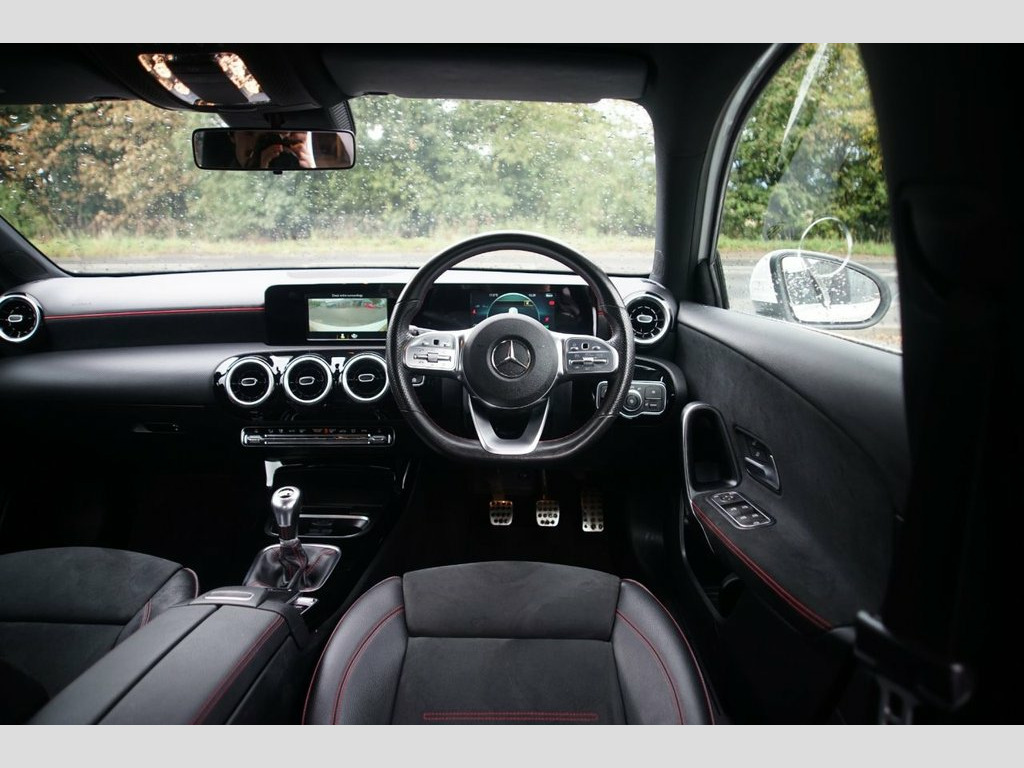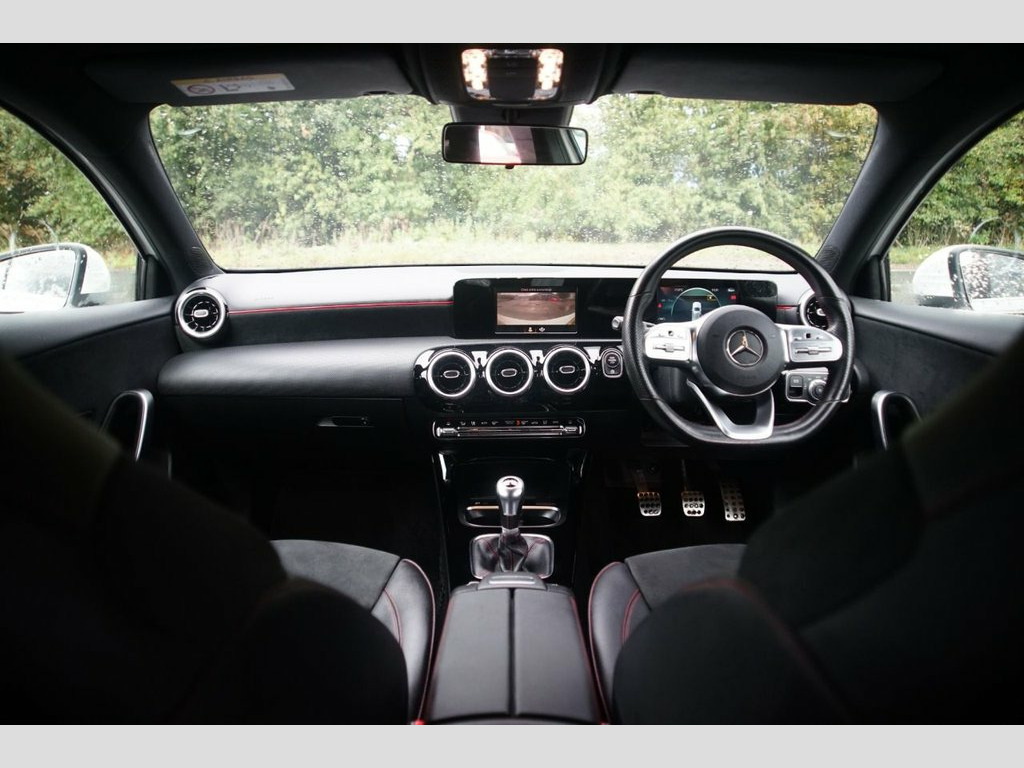 Prestige Car Supermarket in York presents this sporty and luxurious 2019 Mercedes-Benz A180 AMG Line Hatchback. Finished in solid Polar White and featuring a luxurious Black Artico Leather-Dinamica Microfibre interior with Red Contrast Stitching, this manual petrol hatchback offers a dynamic and premium driving experience. It rides on 18-inch AMG 5-Twin-Spoke Design alloy wheels and features AMG Bodystyling, a Diamond Radiator Grille, and Twin Trapezoidal Exhaust Tailpipes. Illumination is provided by LED High Performance Headlamps and LED Tail Lights. Step inside the opulent cabin to find a 3-Spoke Multi-Function Steering Wheel, Sports Seats with Integrated Head Restraints, and THERMOTRONIC Luxury Automatic Climate Control. Technology is comprehensive with a 7in Media Display with Touch Screen, Hard-Disk Navigation, and an MBUX Multimedia System. Convenience is a priority with a Reversing Camera with a 180-Degree View, KEYLESS-GO Starting Function, and a Seat Comfort Package. This model also includes Privacy Glass. Safety and driver assistance systems are extensive, including Active Lane Keeping Assist, Active Brake Assist, and a Tyre Pressure Monitoring System (TPMS), ensuring a secure and confident drive. Artico Leather-Dinamica Microfibre - Bla, Polar White, 18in Alloy Wheels - AMG 5-Twin-Spoke Des, ABS - Anti-Lock Braking System with BAS , AMG Bodystyling - Front and Rear Apron, ATTENTION Assist, Active Bonnet - Pedestrian Safety Measur, Active Brake ASSIST, Active Lane Keeping Assist, Adaptive Brake Assist with Hold Function, Adaptive Brake Lights, Air Conditioning - THERMOTRONIC Luxury A, Air Vents with Surround and Cruciform No, Airbag - Kneebag for Driver, Airbags - Dual Stage - Driver and Front , Airbags - Windowbags for Driver and Fron, Alarm System with Immobiliser and Interi, Automatic Child Seat Recognition Sensor, Beltline Strips - Chrome, Bodystyling - Side Skirts - Body-Coloure,
