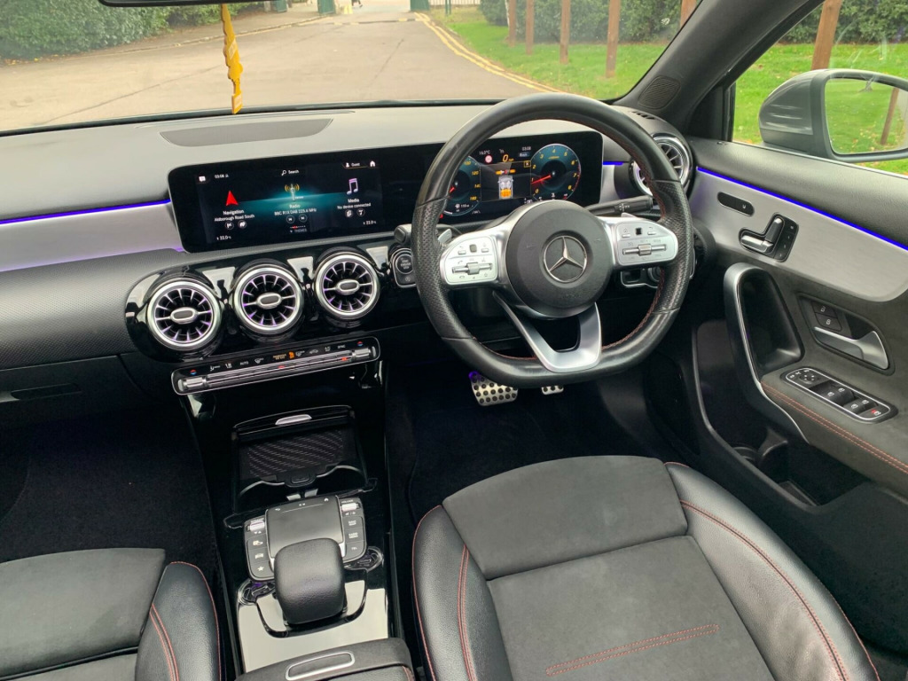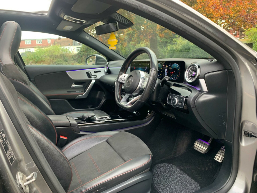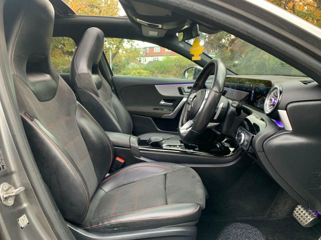 This 2020 Mercedes Benz A Class A180 AMG Line (Premium Plus 2) has had only one owner from new, offering a superb example of this popular hatchback. Powered by a 1.3 litre petrol engine and meeting Euro 6 emissions standards, this AMG Line trim vehicle combines style with efficiency. Notable features include a panoramic glass sunroof that opens up the cabin, electrically adjustable front memory seats with lumbar support for ultimate comfort, and advanced MULTIBEAM LED headlights with adaptive highbeam assist for superior visibility. Smartphone integration with Android Auto and Apple CarPlay ensures seamless connectivity, while Traffic Sign Assist adds an extra layer of safety.The generous boot space provides ample room for all your needs, making it a practical choice for everyday life. Experience impressive performance with an acceleration of 0-62mph in just 8.8 seconds, demonstrating its responsive nature. These highlights, such as the advanced lighting system, the convenience of memory seats, and the expansive sunroof, clearly set this Mercedes Benz A Class apart from other vehicles in its class, offering a more refined and enjoyable driving experience., in alloy wheels - amg 5-twin-spoke design - painted in titanium grey with a high sheen finish, abs - anti-lock braking system with bas - brake assist, amg bodystyling - front and rear apron, attention assist, active bonnet - pedestrian safety measure which detects an impact and raises bonnet by 65mm, active brake assist, active lane keeping assist, adaptive brake assist with hold function and hill start assist, adaptive brake lights, air conditioning - thermotronic luxury automatic climate control - two-zone with display, air vents - black with silver chrome elements, airbag - kneebag for driver, airbags - dual stage - driver and front passenger, airbags - windowbags for driver and front passenger, alarm system with immobiliser and interior protection - thatcham category 1, automatic child seat recognition sensor, beltline strips - chrome, bodystyling - side skirts - body-coloured, brake calipers - mercedes-benz lettering on front, brake-pad wear warning indicator, brushed stainless steel sports pedals with rubber studs, bumpers - body coloured, centre armrest - front with stowage, childproof locks - manually operated for rear doors and electrically operated for rear power windows, chrome weather strip, crash-responsive emergency lighting, cruise control with limiter, dab digital radio tuner, diamond radiator grille with pins in chrome - silver-painted louvre and insert in chrome, direct steer speed-sensitive power steering, door handles - body coloured, door mirrors - electrically adjustable and heated with integrated led indicators, dual bluetooth interfaces, dynamic select with a choice of driving modes - eco-comfort-sport and individual, esp - electronic stability programme with asr - acceleration skid control, esp curve dynamic assist, electric parking brake, electric windows - 4, exhaust system - twin trapezoidal tailpipes in polished stainless steel, first aid kit and warning triangle, floor mats with stitched edging and amg lettering, front door sills with mercedes-benz lettering, glass - rear windscreen - heated with timer control, hard-disk navigation, headlamp assist - automatic headlamp activation, heated front seats, hey mercedes - voice activation, high level third brake light - led, isofix and top-tether child seat fixing points in rear - two outer seats, instrument cluster - outside temperature display, instrument cluster - service indicator assyst, instrument cluster - trip computer in multi-function display with current fuel consumption indicator, instrument display - 10.25in display, integrated radio aerial, interior 64-colour ambient lighting, keyless-go - keyless locking-unlocking, keyless-go starting function, led tail lights, light failure indicator, light and sight package, live traffic information, luggage compartment cover, luggage nets on driver and front passengers backrests, mbux multimedia system, multibeam led headlights with adaptive highbeam assist plus, media display - 10.25-inch with touchscreen, mercedes me connect - standard services, mercedes-benz sound system - 225 w, mirror package, panoramic glass sunroof, parking package, pre-installation for mercedes-benz link, pre-installation for private car share, privacy glass, rain-sensing windscreen wipers with two sensitivity settings, rear armrest with two cup holders, rear axle - multi-link, rear fog light, rear windscreen wiper, remote central locking and crash sensor with emergency opening function, reversing camera with parking guidelines - 180 degree view, roof lining - black, seat belts - black, seat belts - rear three-point - 3, seat belts reminder - front and rear, seat comfort package, seat occupancy sensor - front passenger seat, seats - electrically adjustable front memory seats with lumbar support, seats - rear seat backrests - split folding 40-20-40, smartphone integration, spectacles compartment for driver, speed limit assist, sports seats with integrated head restraints, steering column - manually adjustable for height and reach, steering wheel - 3-spoke multi-function - trimmed in leather with flattened bottom section and perforated leather in grip area with galvanised shift paddles, summer tyres, sun visors with illuminated vanity mirrors, suspension - lowered comfort suspension, tirefit tyre-sealant kit, touchpad on centre console, traffic sign assist, trim - light longitudinal-grain aluminium, tyre pressure monitoring system, usb - type c - 2 ports in rear of stowage compartment and 1 in front centre console, window line - chrome, wireless charging