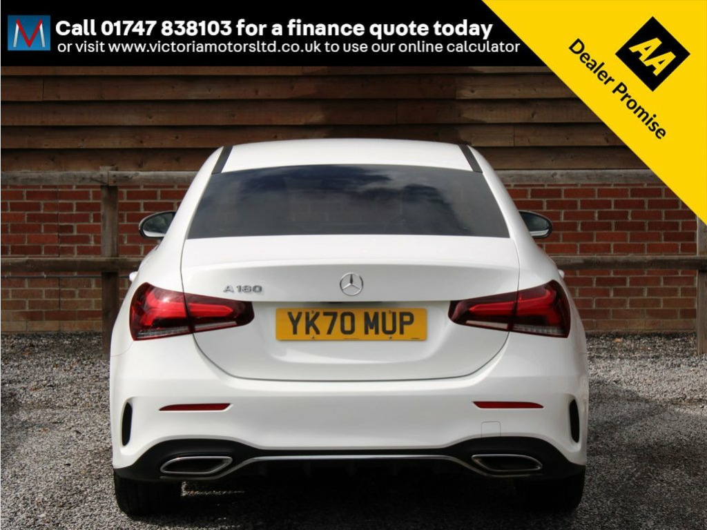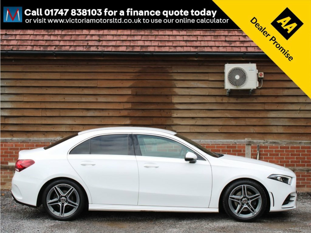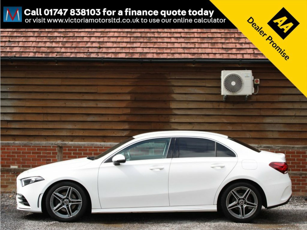 ***FOR VIEWINGS AND TEST DRIVES CALL US ON 01747 838103 TO BOOK AN APPOINTMENT***Great looking A-Class Saloon fitted with Mercedes' 1.3 litre turbo petrol ULEZ compliant engine producing impressive power and great fuel economy finished in white with equipment including half leather interior, media unit with satellite navigation, rear parking camera and sensors, DAB radio and apple car play resulting in the ability to mirror the apps from your Iphone onto the car media screen including Google maps and Spotifiy, media connections, bluetooth, auto air conditioning, auto lights and more, 1 owner, 43800 miles, service history***PART EXCHANGE AVAILABLE***USE THE FINANCE CALCULATOR ON OUR WEBSITE www.victoriamotorsltd.co.uk AND QUOTE YOURSELF A MONTHLY PAYMENT FIGURE TODAY WITH ZERO DEPOSITS AVAILABLE*** 18in Alloy Wheels - AMG 5-Twin-Spoke Des, ABS - Anti-Lock Braking System with BAS , AMG Bodystyling - Front and Rear Apron, ATTENTION Assist, Active Bonnet - Pedestrian Safety Measur, Active Brake ASSIST, Active Lane Keeping Assist, Adaptive Brake Assist with Hold Function, Adaptive Brake Lights, Air Conditioning - THERMOTRONIC Luxury A, Air Vents - Black with Silver Chrome Ele, Airbag - Kneebag for Driver, Airbags - Dual Stage - Driver and Front , Airbags - Windowbags for Driver and Fron, Alarm System with Immobiliser and Interi, Automatic Child Seat Recognition Sensor, Beltline Strips - Chrome, Bodystyling - Side Skirts - Body-Coloure, Brake Calipers - Mercedes-Benz Lettering, Brake-Pad We